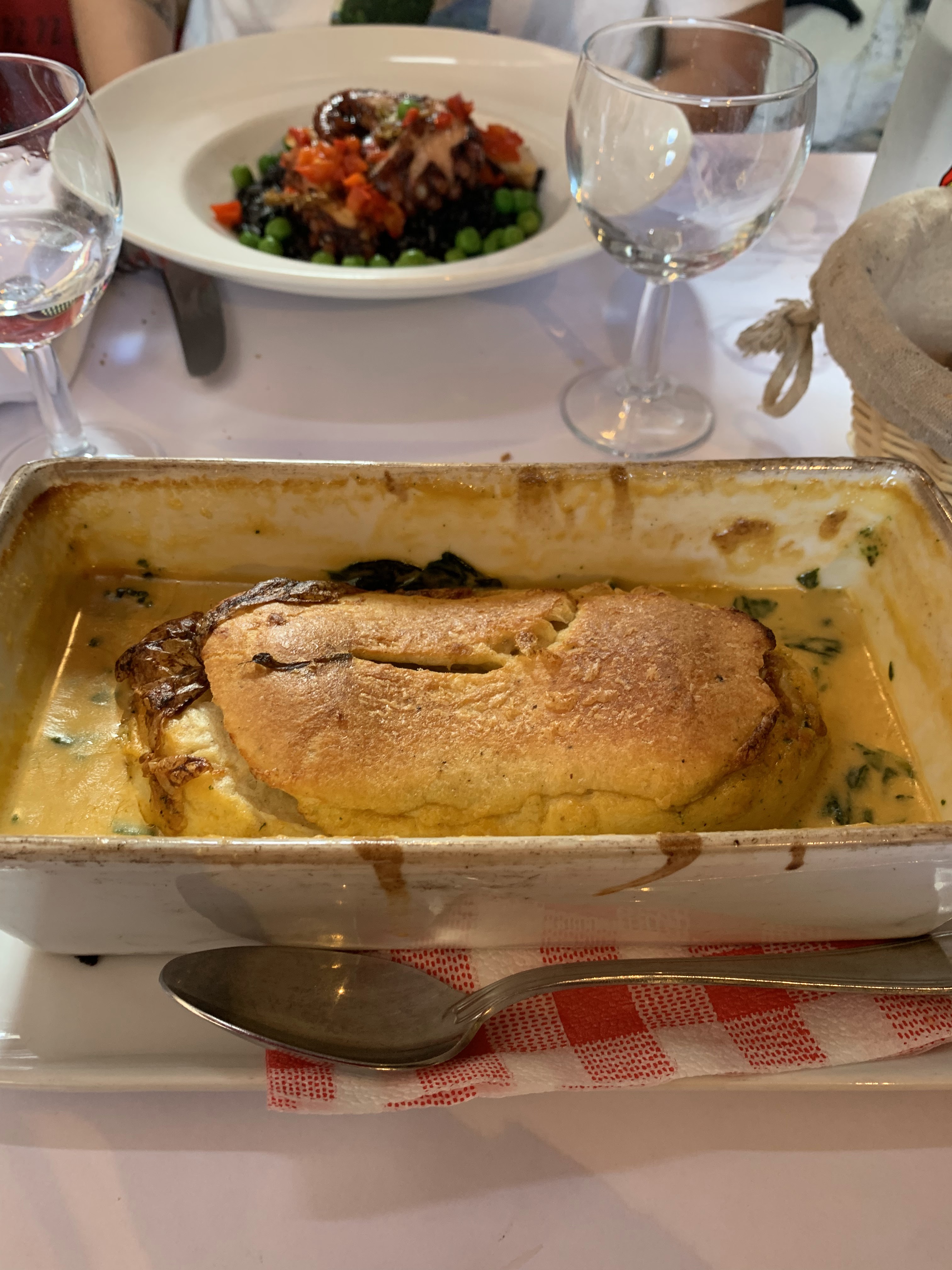 Délai d'attente un peu long, mais vu le monde, rien d'anormal. Suprême de volaille pour moi et poulpe snacké pour madame. Pour faire court c'était PARFAIT!!!!!!!!! Je recommande le poulpe et son risotto à l'encre de seiche une tuerie............... Bravo à toute l'équipe de ce restaurant et à très bientôt