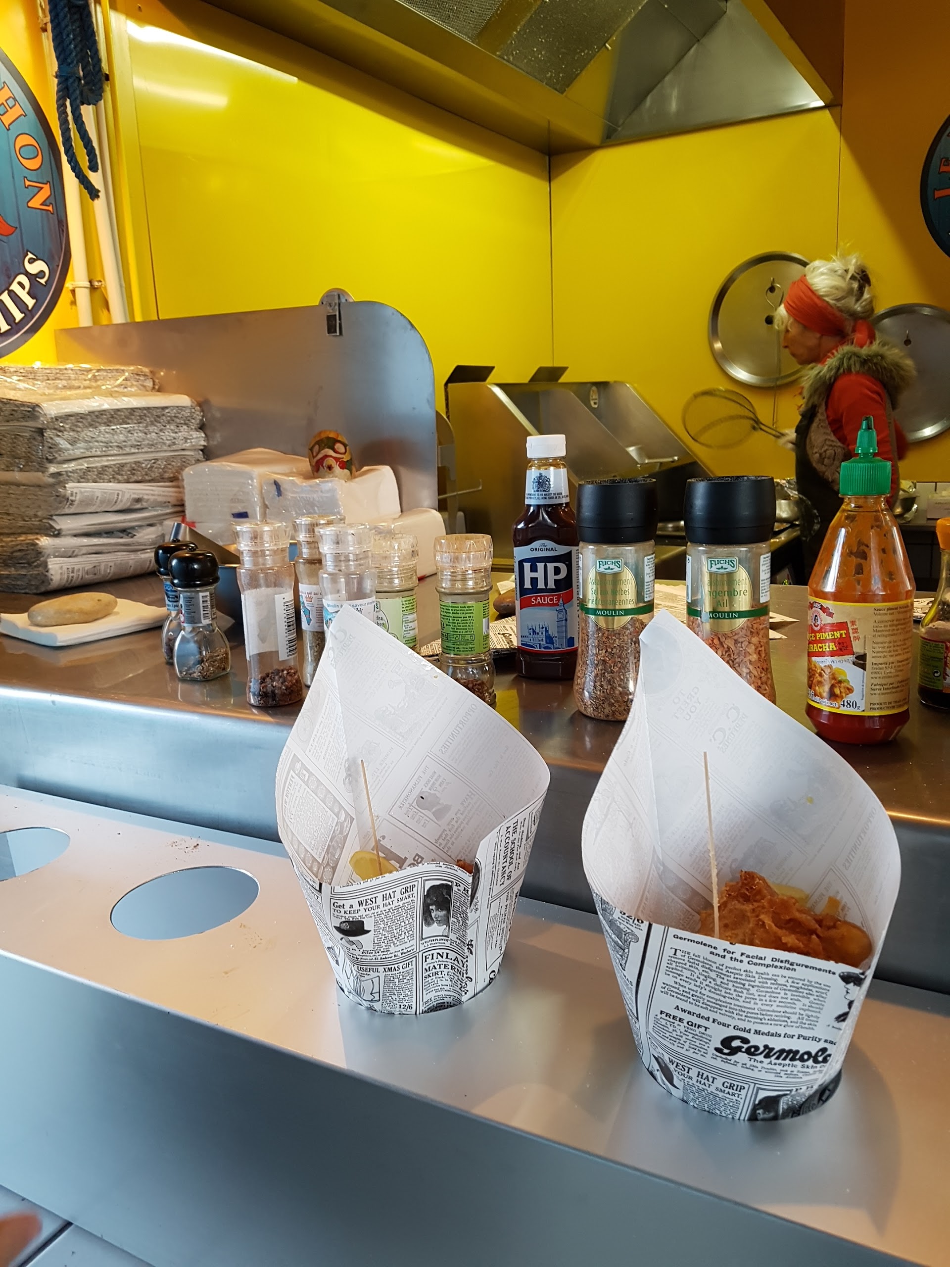 Fish and chips sympa, généreux et frais. On y va les yeux fermés et on savoure son cornet sur un banc devant le port, en regardant les mouettes.