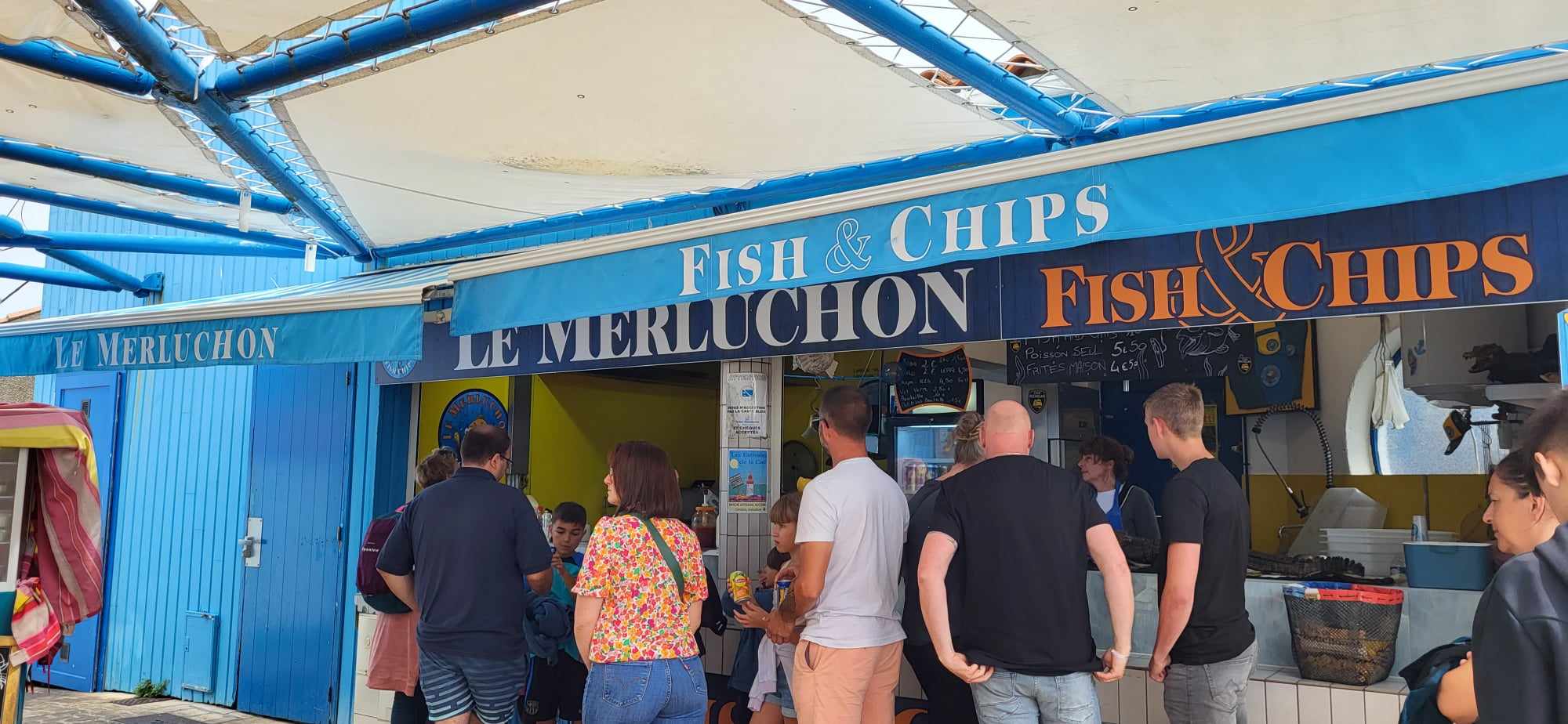 L'incontournable Fish and Chips du Merluchon! Nous ne pouvons pas aller à l'Ile d'Oléron sans nous y rendre! Du merlut péché frais du matin, des frites fraîches faites maison, le tout servi par la famille qui gère cet établissement, bref une belle réussite qui suscite beaucoup d'intérêt. Pensez à prendre du liquide car les CB ne sont pas acceptées