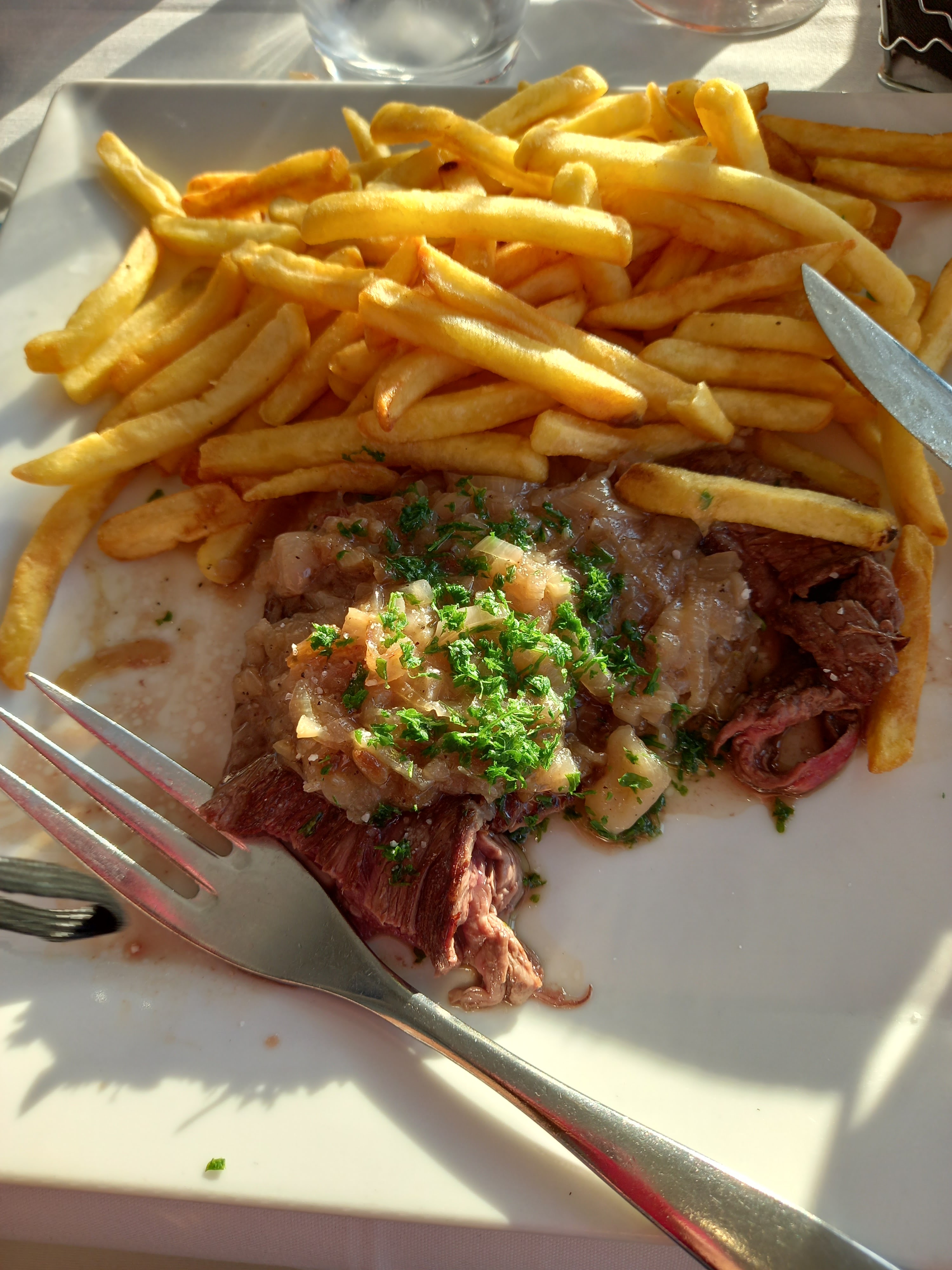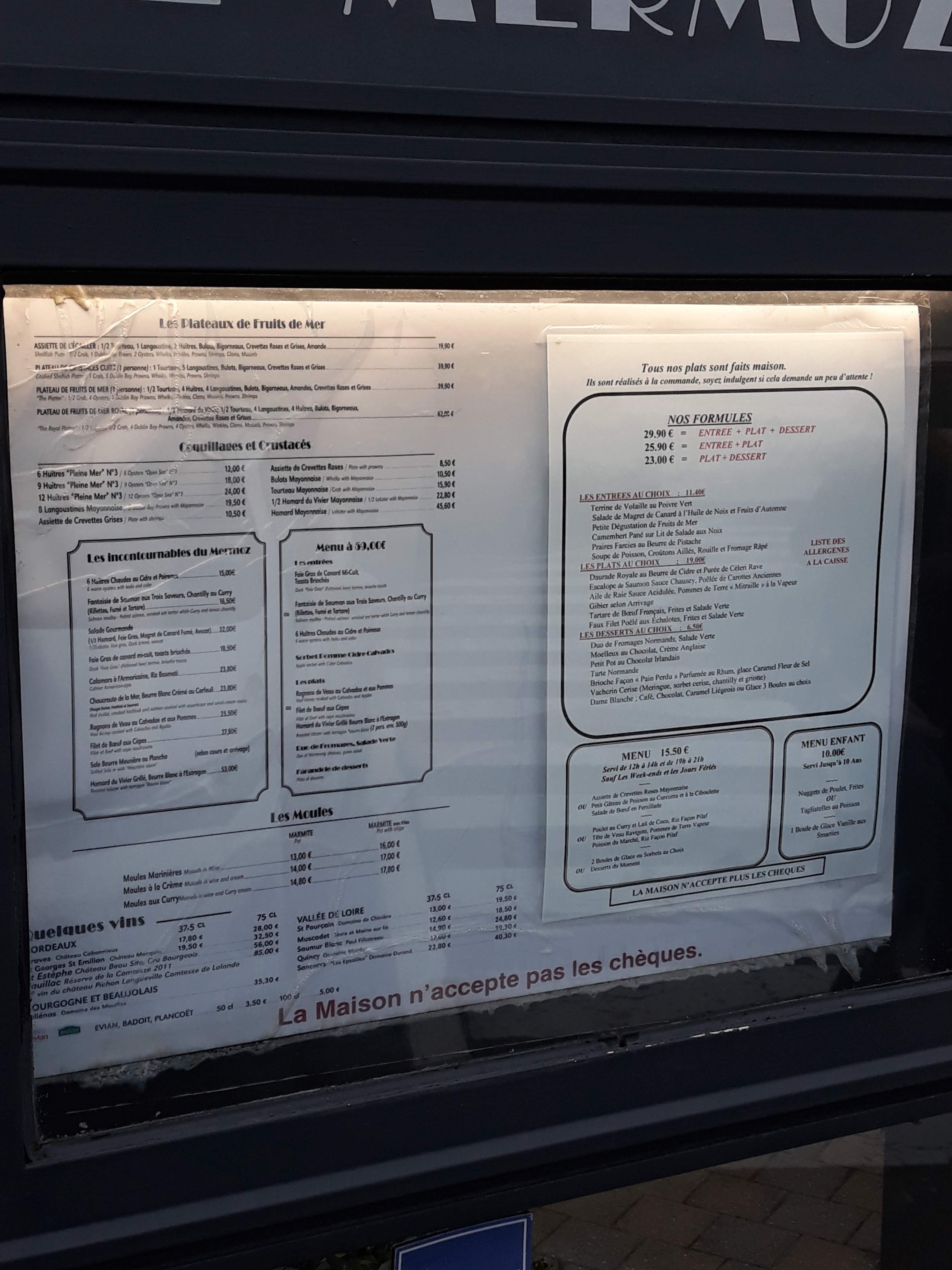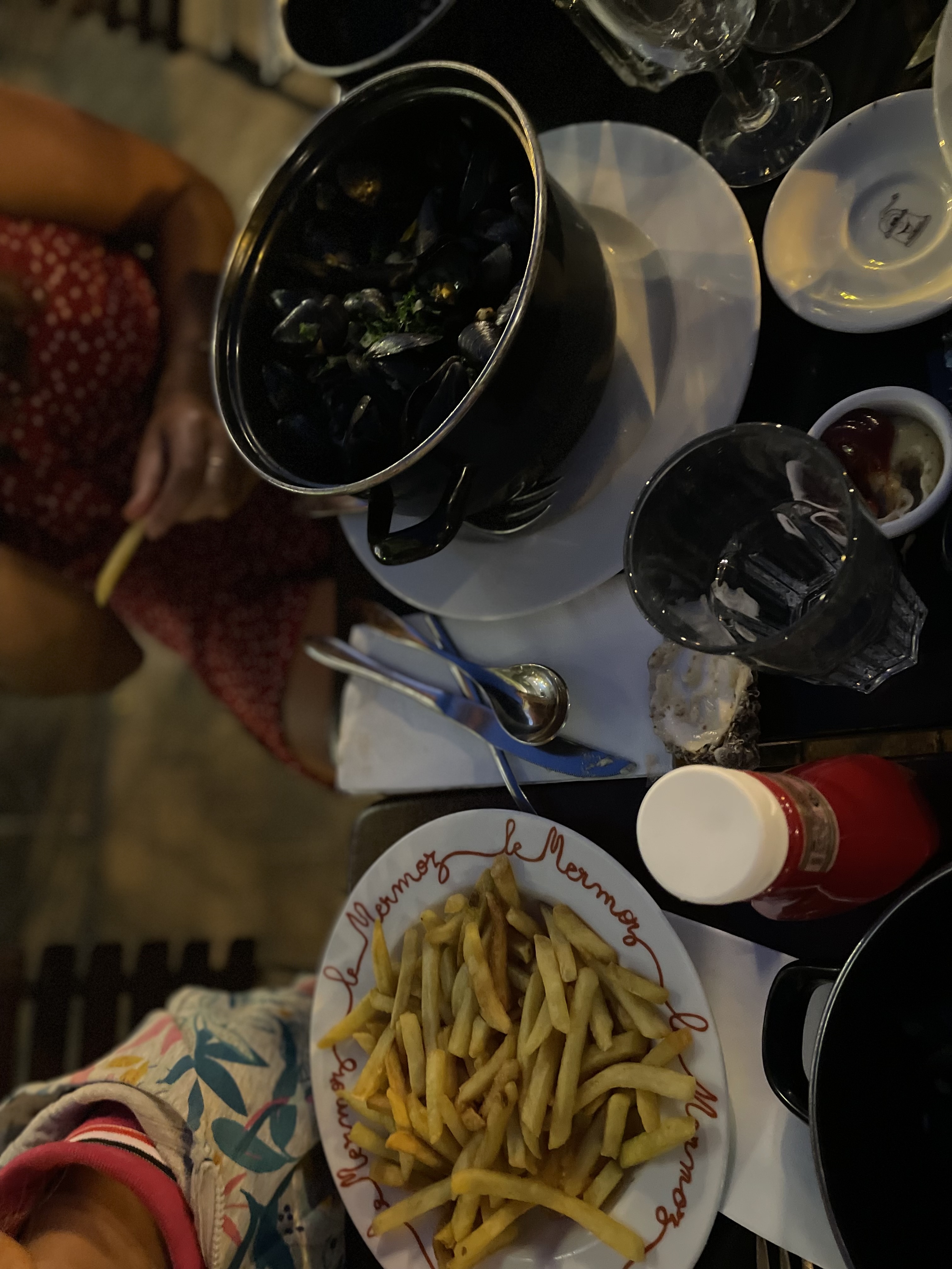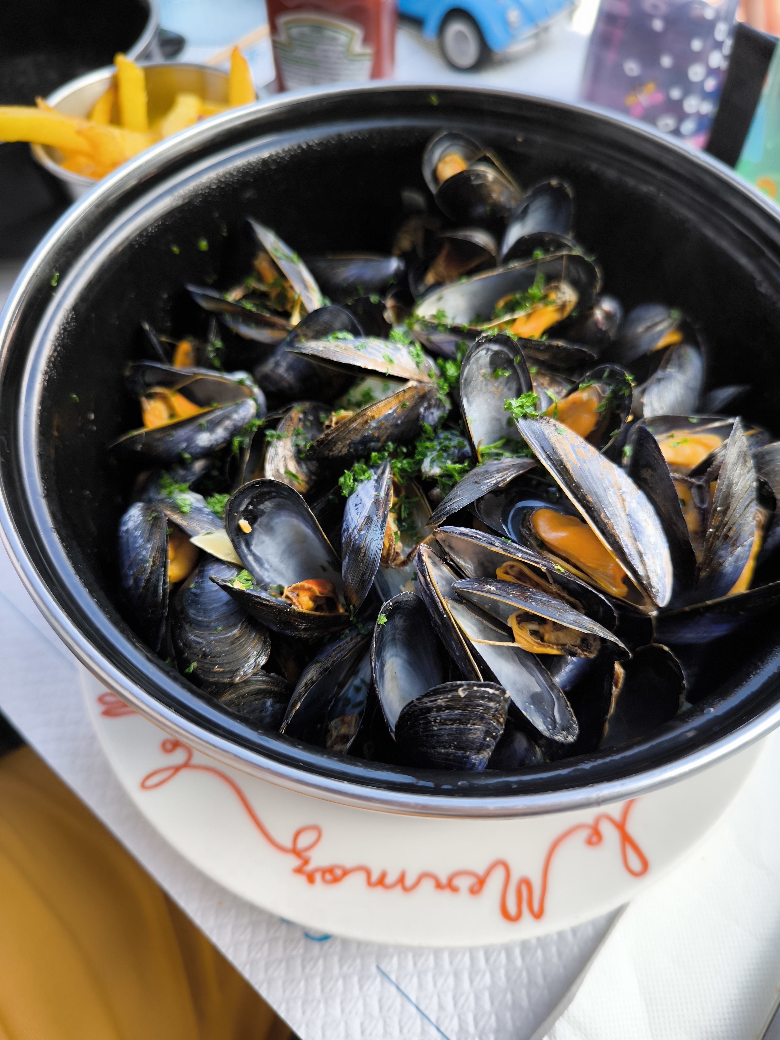 Plus jamais!!! apéro en même temps que le plat, 20€ les moules frites pour avoir des toutes petites moules et très peu de frites nous avons dû prendre un supplément de frite, vu sur les voitures 👎
