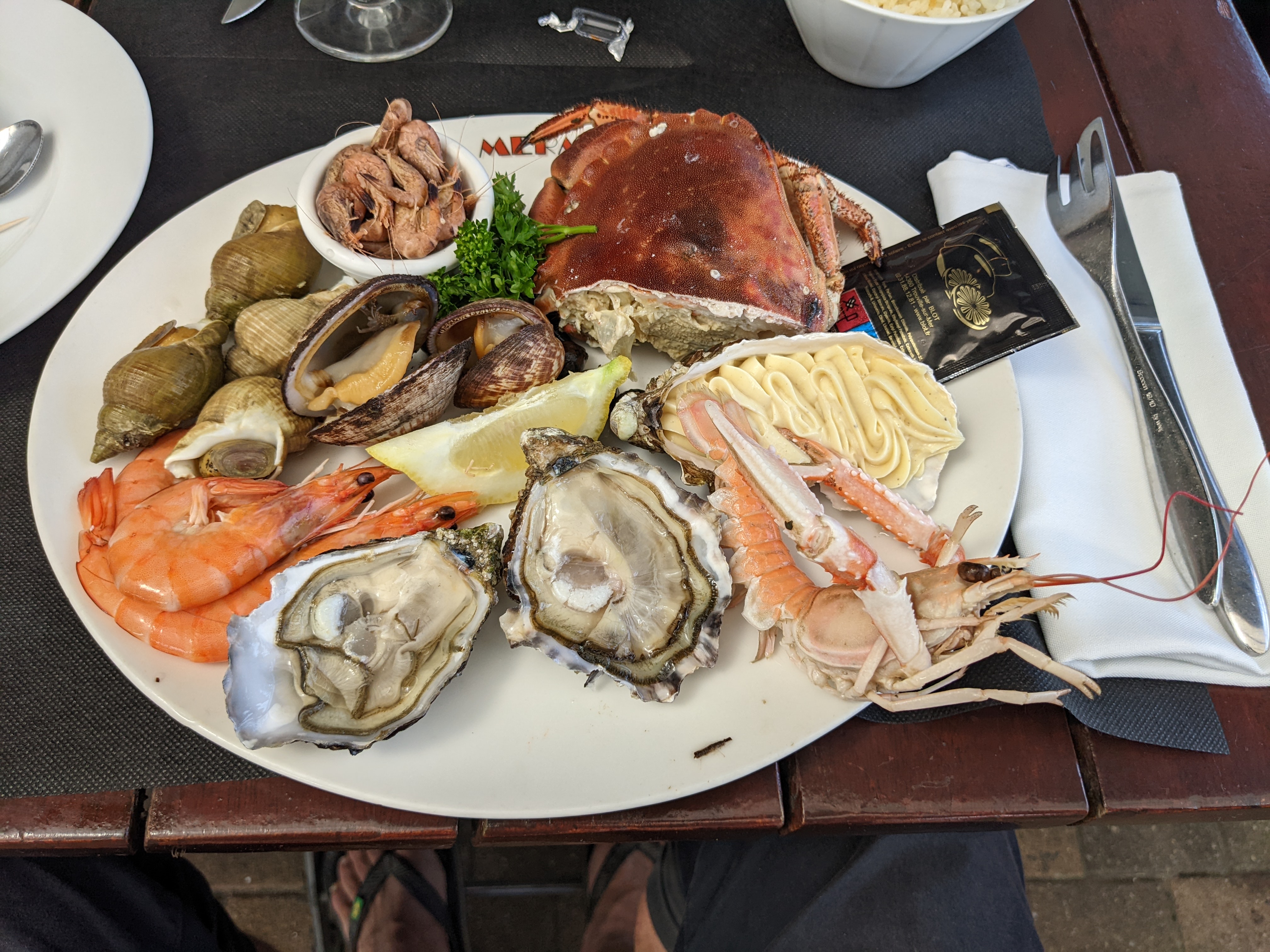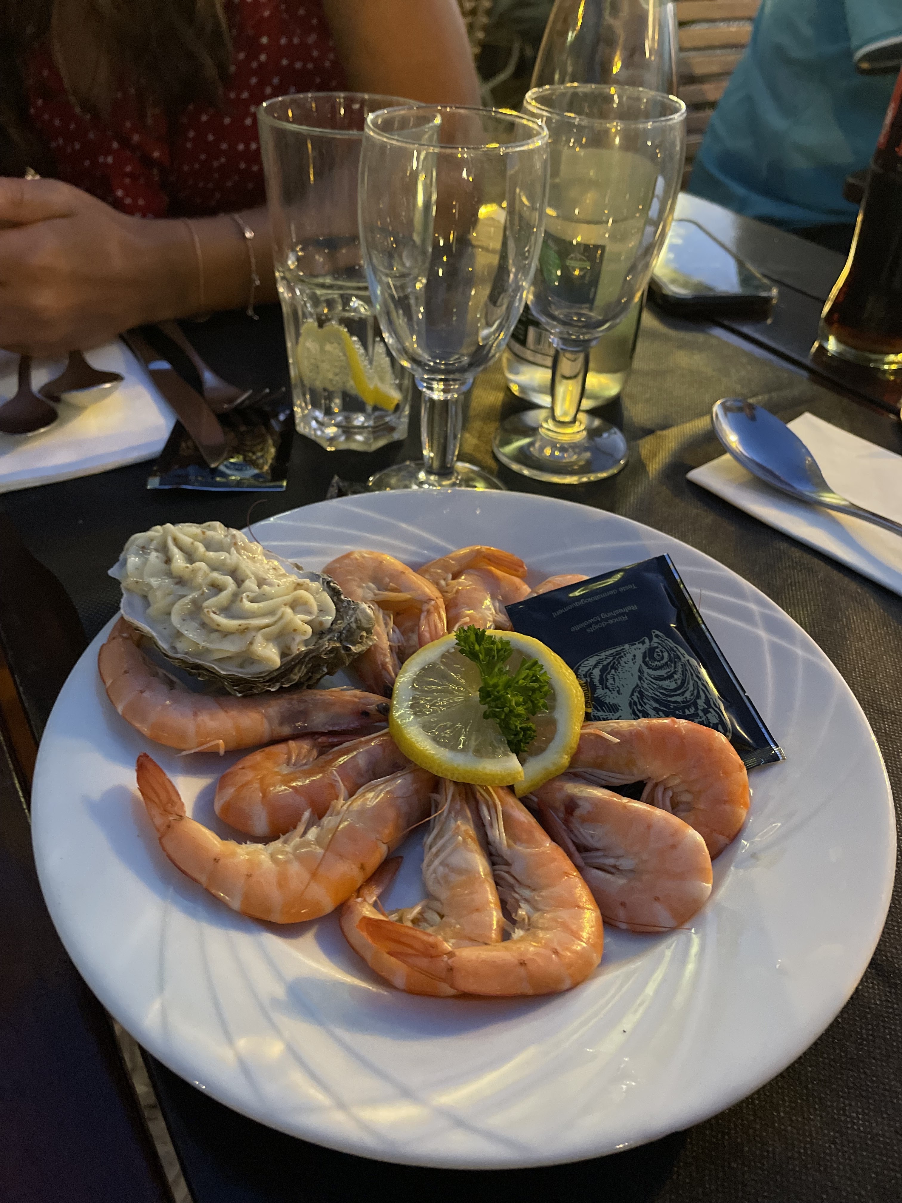 Arrivés sur le tard nous avons quand même pu déguster un plateau composé d'un homard, d'huîtres et de langoustines en toute tranquillité. Les crustacés et huîtres étaient excellents frais, goutus, un vrai bonheur ! Le dessert (coupe glacée) était également excellent.le cadre est très sympa, nous avons pu profiter du coucher de soleil. Service souriant et agréable. Je recommande !