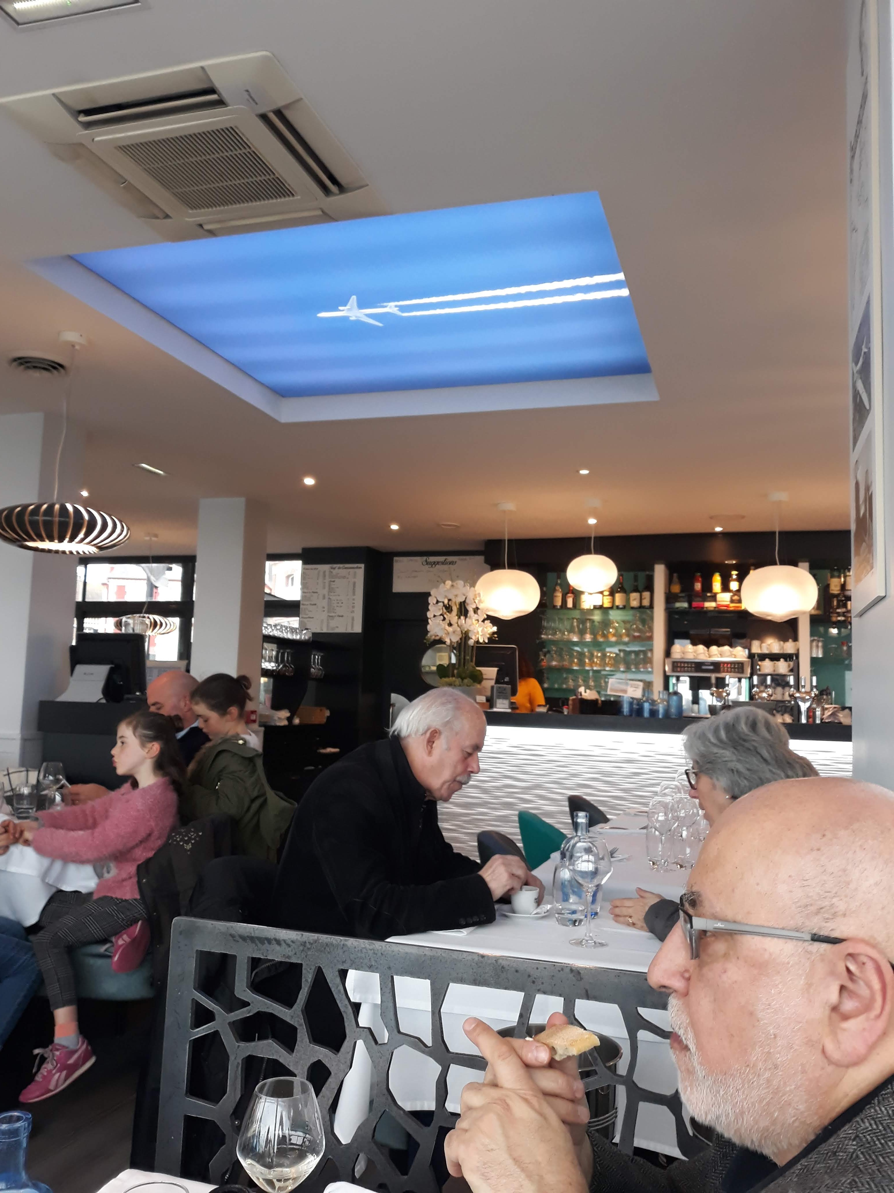 Un déjeuner agréable avec de bons produits . Le petit chauffage au dessus de nous ,en terrasse était bien agréable . Je recommande les moules à la crème ,un vrai régal.Une invitée surprise bien coquine notre amie la mouette .Voir photo .