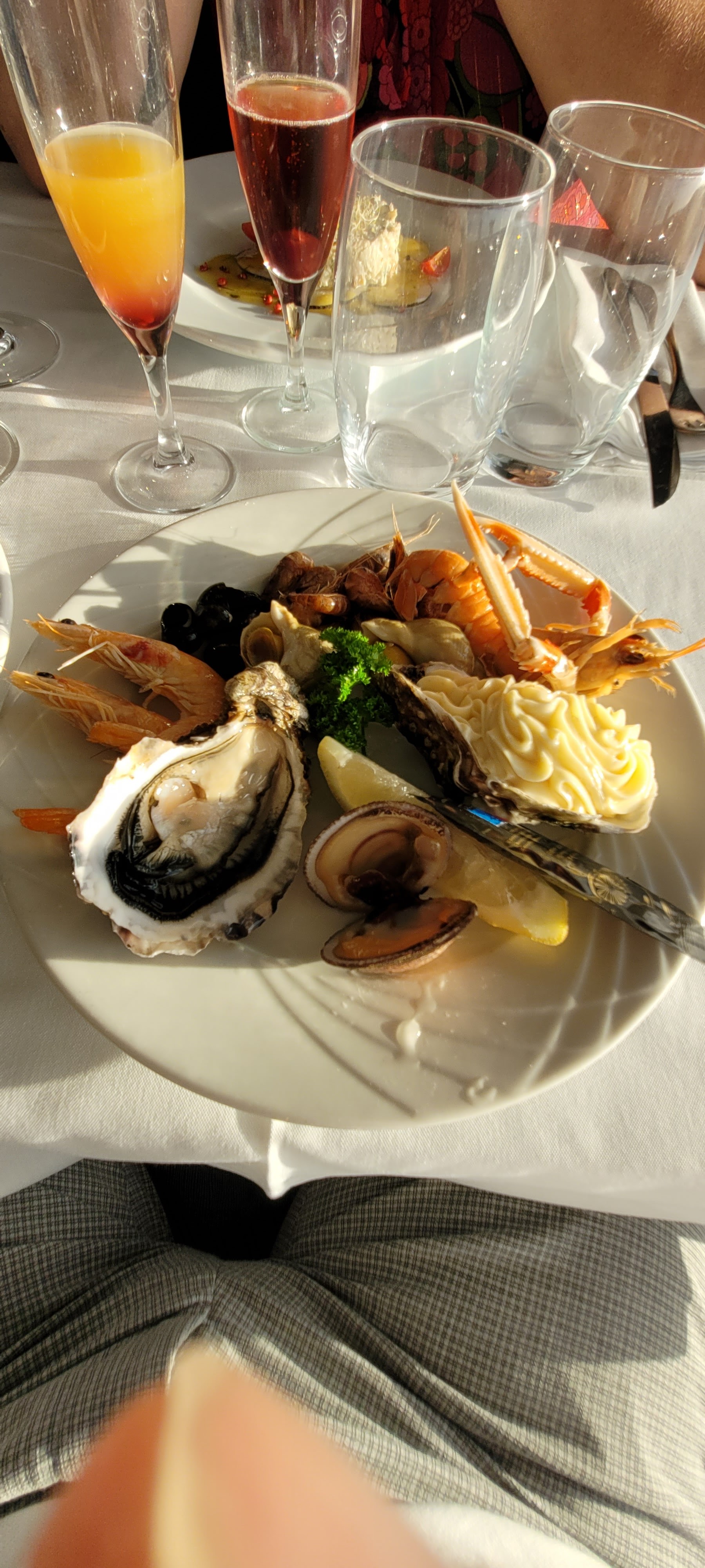 Fidèle à ce restaurant depuis 2016... soirée d anniversaire décevante... accueil peu chaleureux, carte incomplète ( pas d info sur le champagne...), plateau de fruits de mer royal..... 15 minutes plus tard.. .. pas de tourteau... ensuite homard oublié.. .bulots pas tous bons... tourteau finalement remplacé par une assiette de saumon fumé.. et des langoustines..... elles aussi oubliées.. ..glaces en dessert bof.... nous ne reviendront pas.... pas un geste commercial, pas d excuse de la patronne.... dommage. Serveur néanmoins sympathique