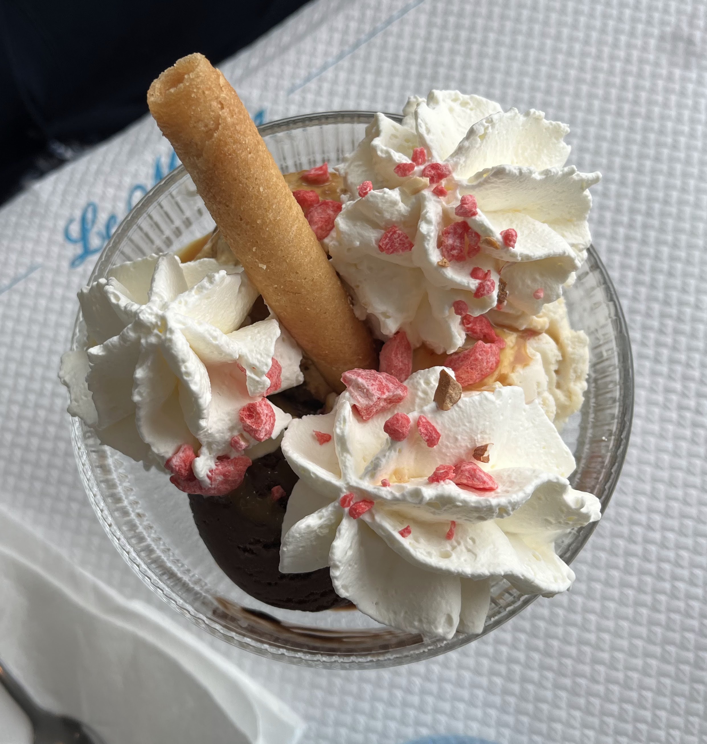 Excellent déjeuner dans ce restaurant avec une salade comprenant homard, foie gras, salade, avocat... et une glace. À refaire !