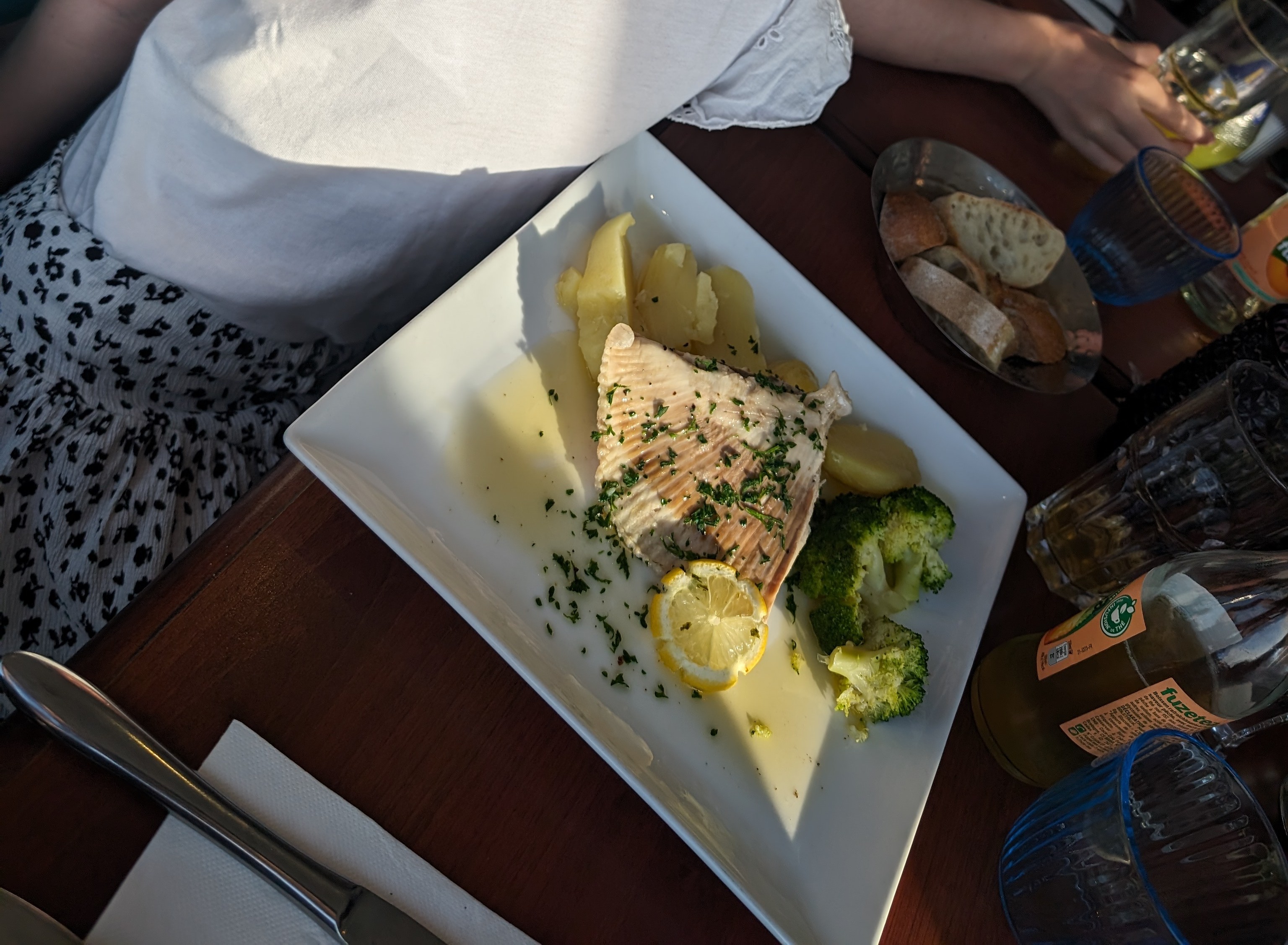 J'y ai mangé en terrasse. Les plats étaient très bons, les sauces comme les poissons et fruits de mer, même des convives qui n'aiment pas toujours manger en restaurant se sont régalés. Par contre, la quantité laisse sur sa faim, surtout au regard du prix.