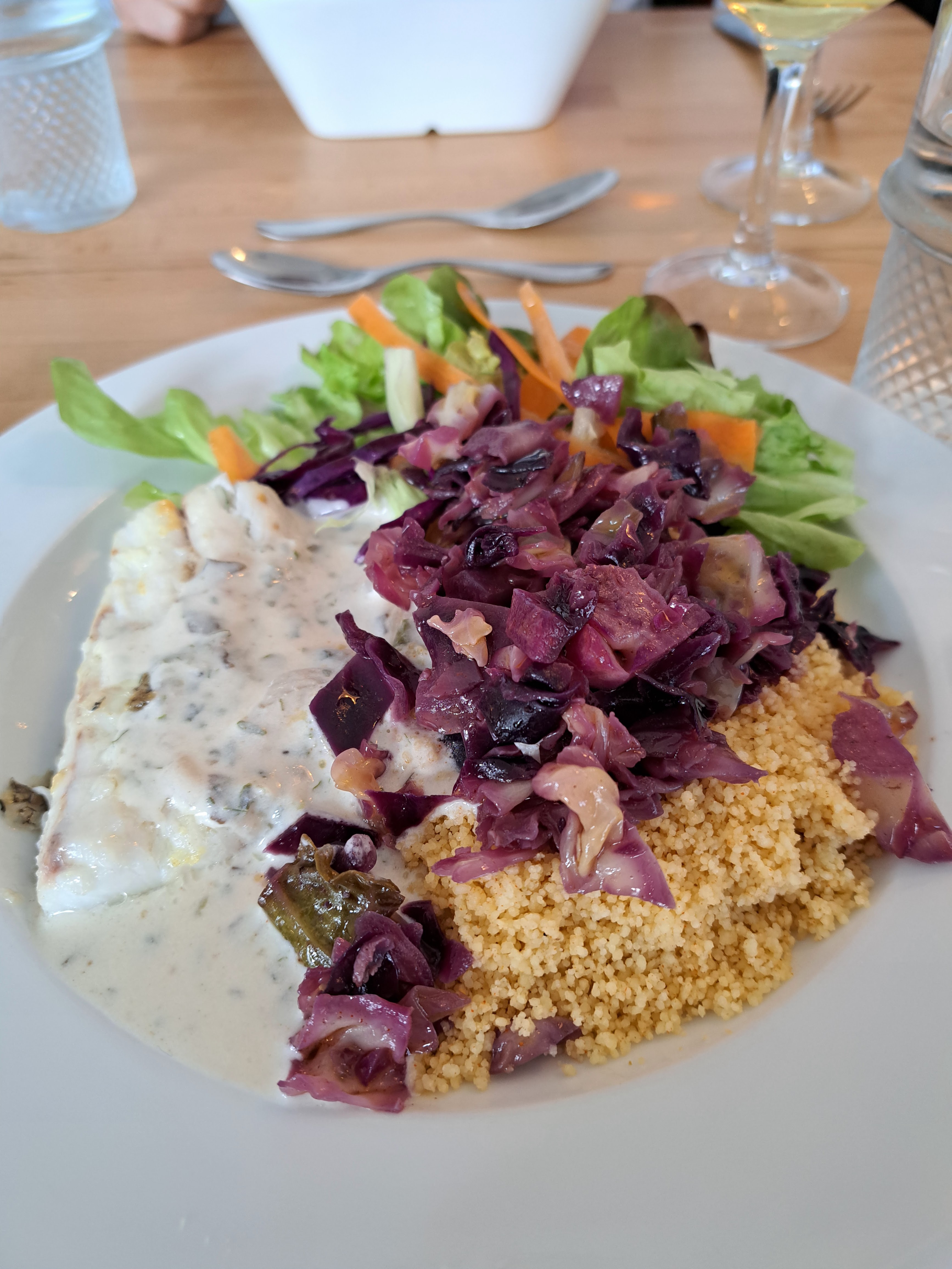 Le plat était bon mais parcontre le dessert était très moyen (tarte au 🍋)le personnel était très bien