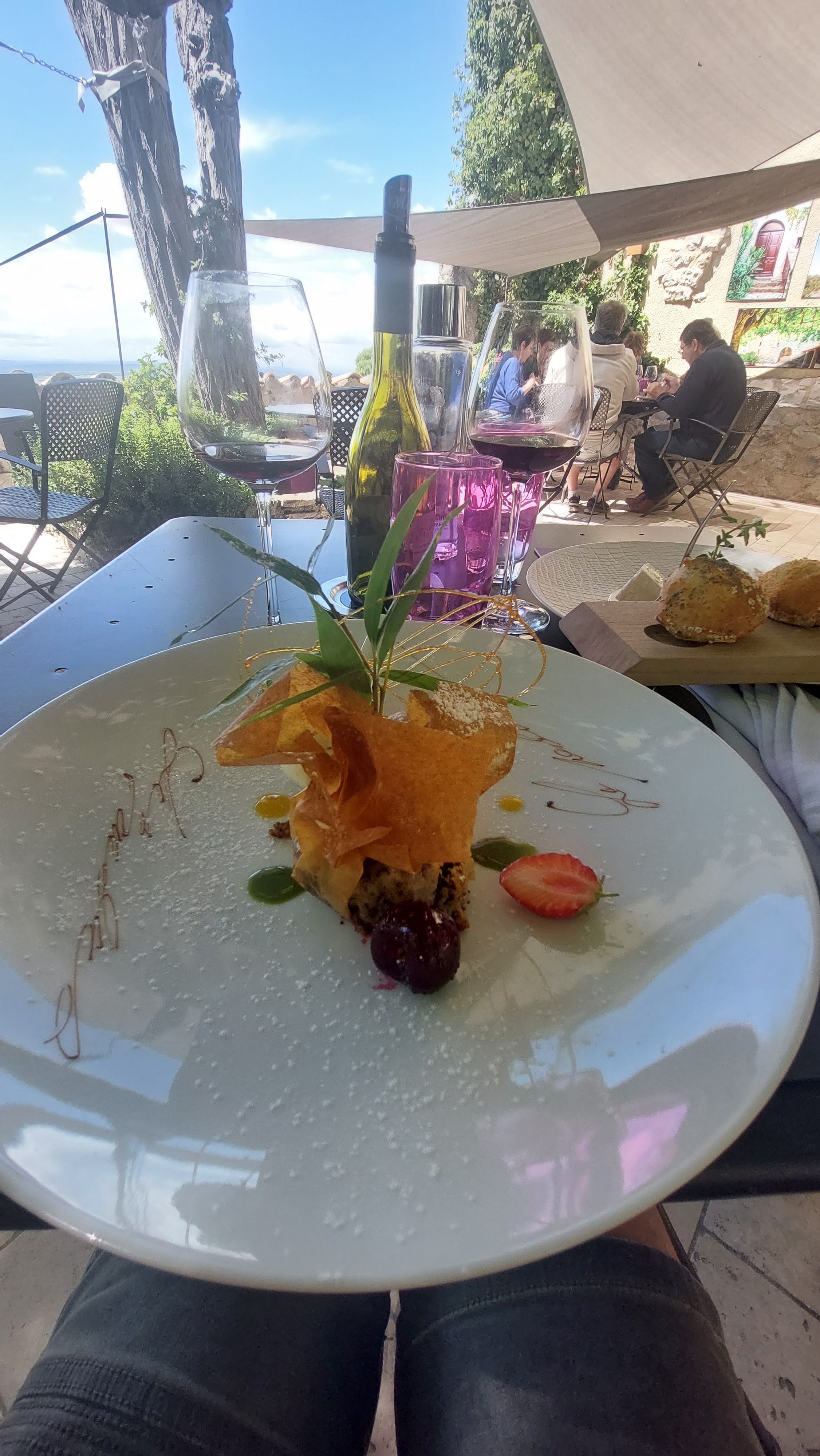 Repas sur la terrasse avec une superbe vue. Tous le service est impeccable et gentil. Superbe repas dans un des plus beau village de France.