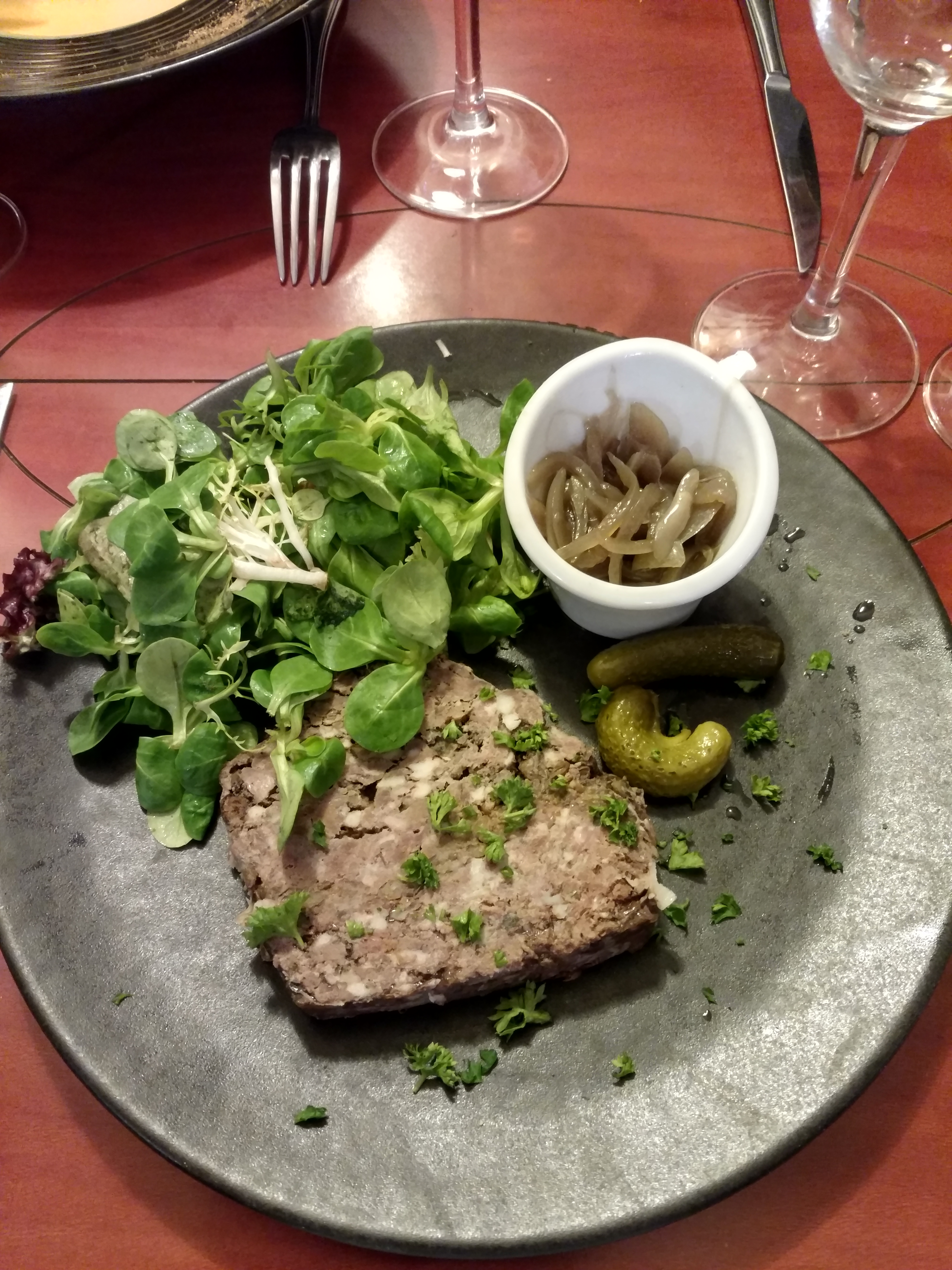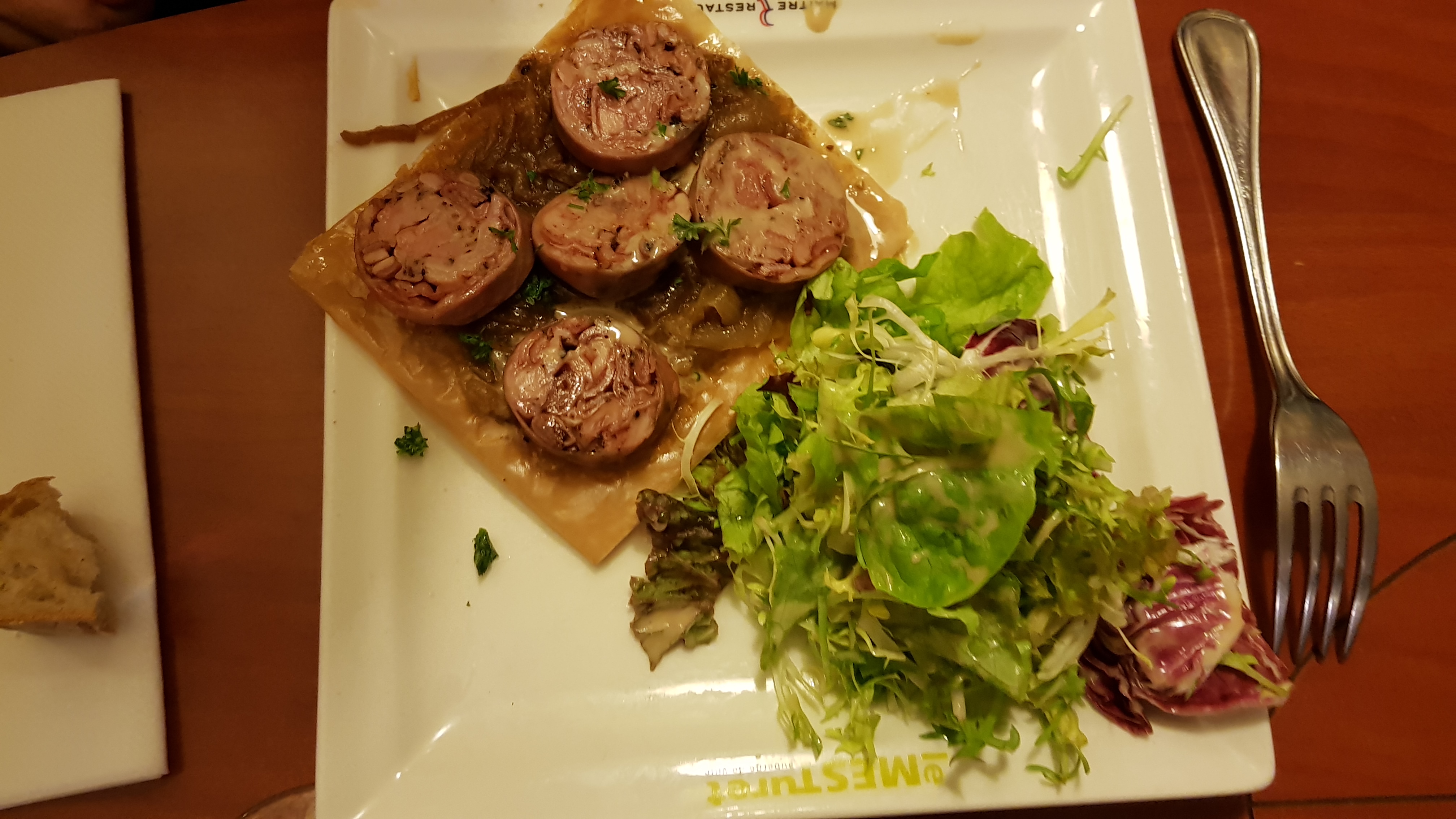 J'ai pris des plats originaux et c'était une bonne expérience. D'origine chinoise, on a la réputation de manger tous se qui bouge La pastilla au escargots et aux cèpes avait un goût terreux, qui rappelle mes promeynade en forêt, 🐌🌳 Quant à la tête de veau, langue et cervelle, quesque c'était tendres... En revanche c'est gras Les légumes avaient du goûts