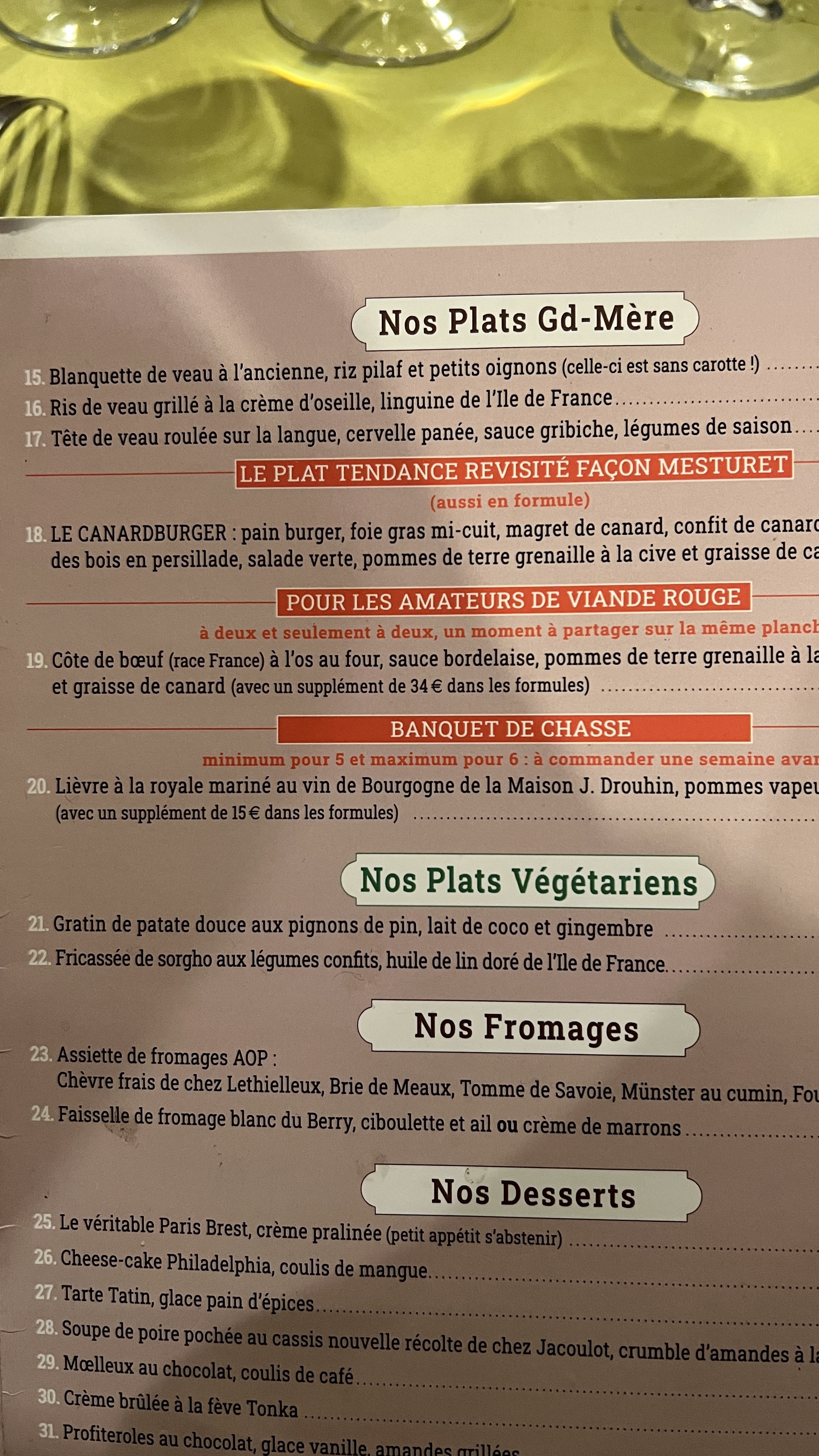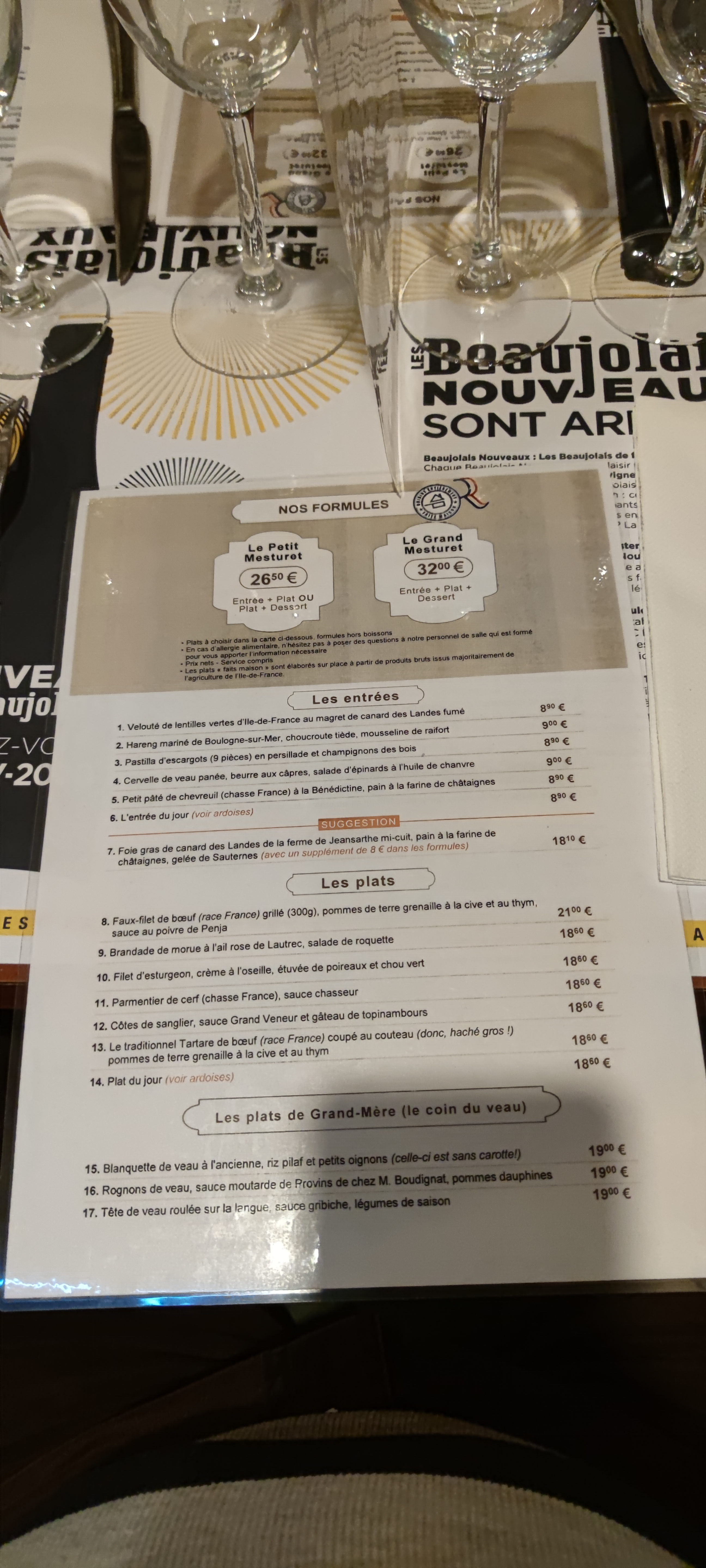 Alors pour ma part j’ai été déçu car de ce que j’ai entendu , j’en attendais beaucoup et cela ne m’a pas convaincu, au vu du prix surtout . Je ne critique pas la qualité des plats qui sont bien cuits et bien présentés , ainsi que l’accueil au top et l’ambiance du restaurant qui nous rappelle notre belle France comme nous l’aimons . Mais pour ma part je trouvais que de l’entrée jusqu’au dessert était assez basique et qu’il n’y avait rien d’exceptionnel . Seule La blanquette de veau valait le coup dans ce que nous avions pris . Les plats de grand mère sont ce qui valent le coup car les plats façon Mesturet manquaient de saveur et de sauce pour ma part .