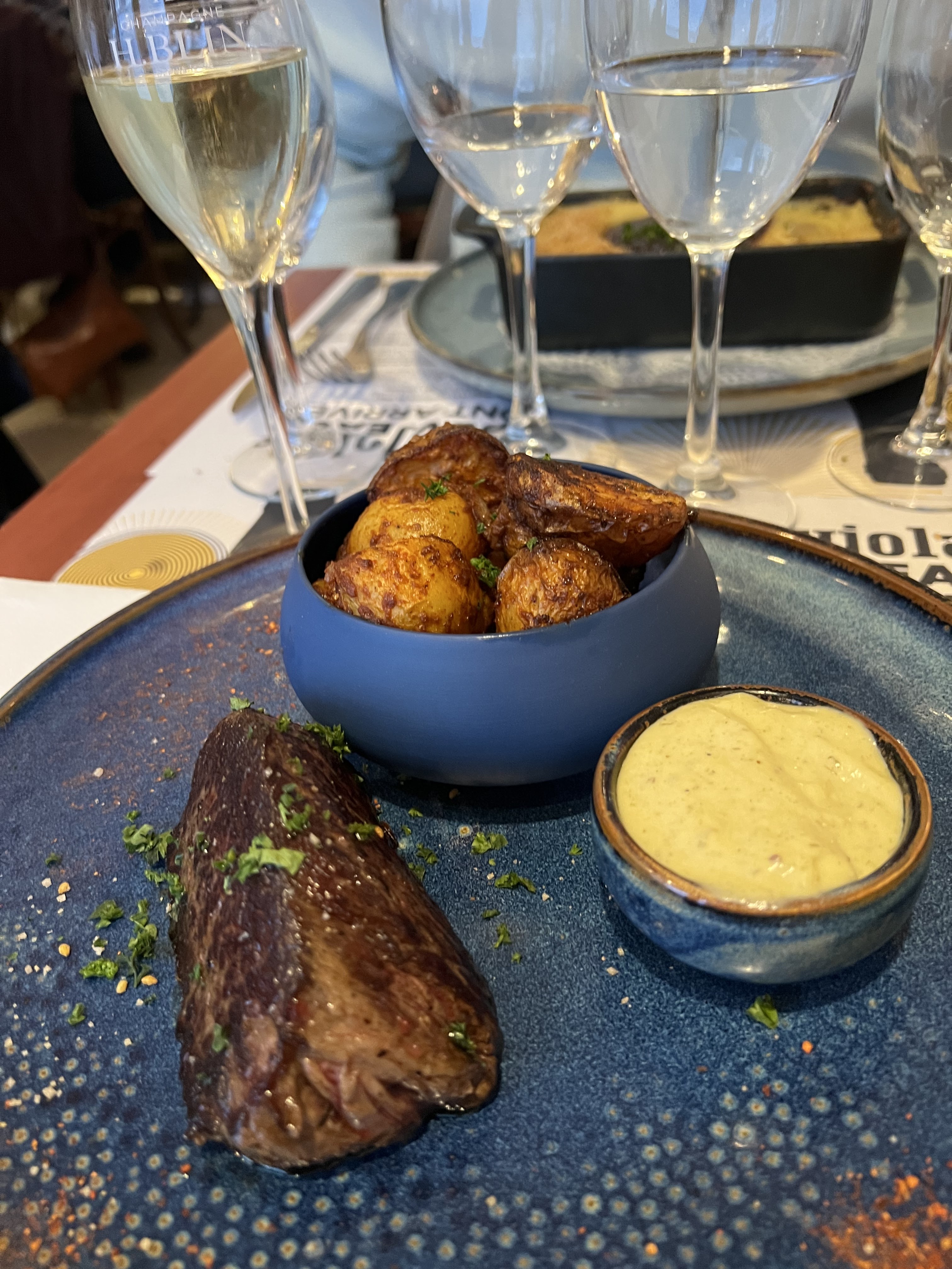 Correct mais sans plus par rapport à ce qu'était le restaurant il y a quelques années. Plus d'olives pour patienter, le faux filet appoint renvoyé car trop cuit qui plus est beaucoup plus petit qu'à l'époque où il était généreux. Plus de moutarde à l'ancienne pour accompagner également, bons desserts mais café vraiment moyen. Service franchement bon. Des choses à revoir pour regagner son standing d'avant.