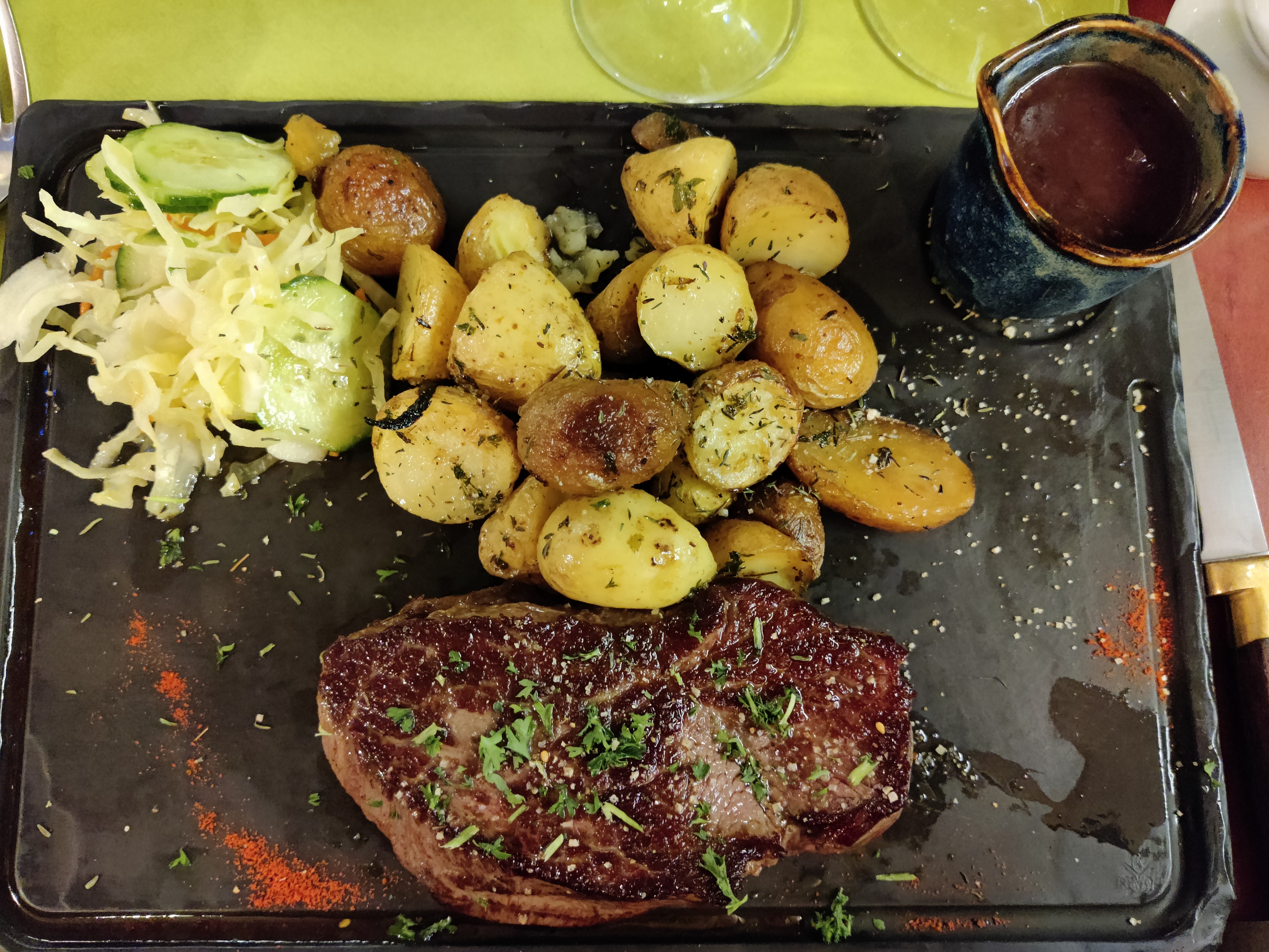 Très bon accueil, serveur de bonne humeur. C'était plutôt bon, et un prix raisonnable pour un dîner. Deux petits soucis cependant, le restaurant était très occupé, il faut compter 2heures pour dîner. Enfin la viande (entrecôte 300grs) est un peu décevante et la cuisson n'est pas vraiment respectée. Dans l'ensemble c'est quand même positif.