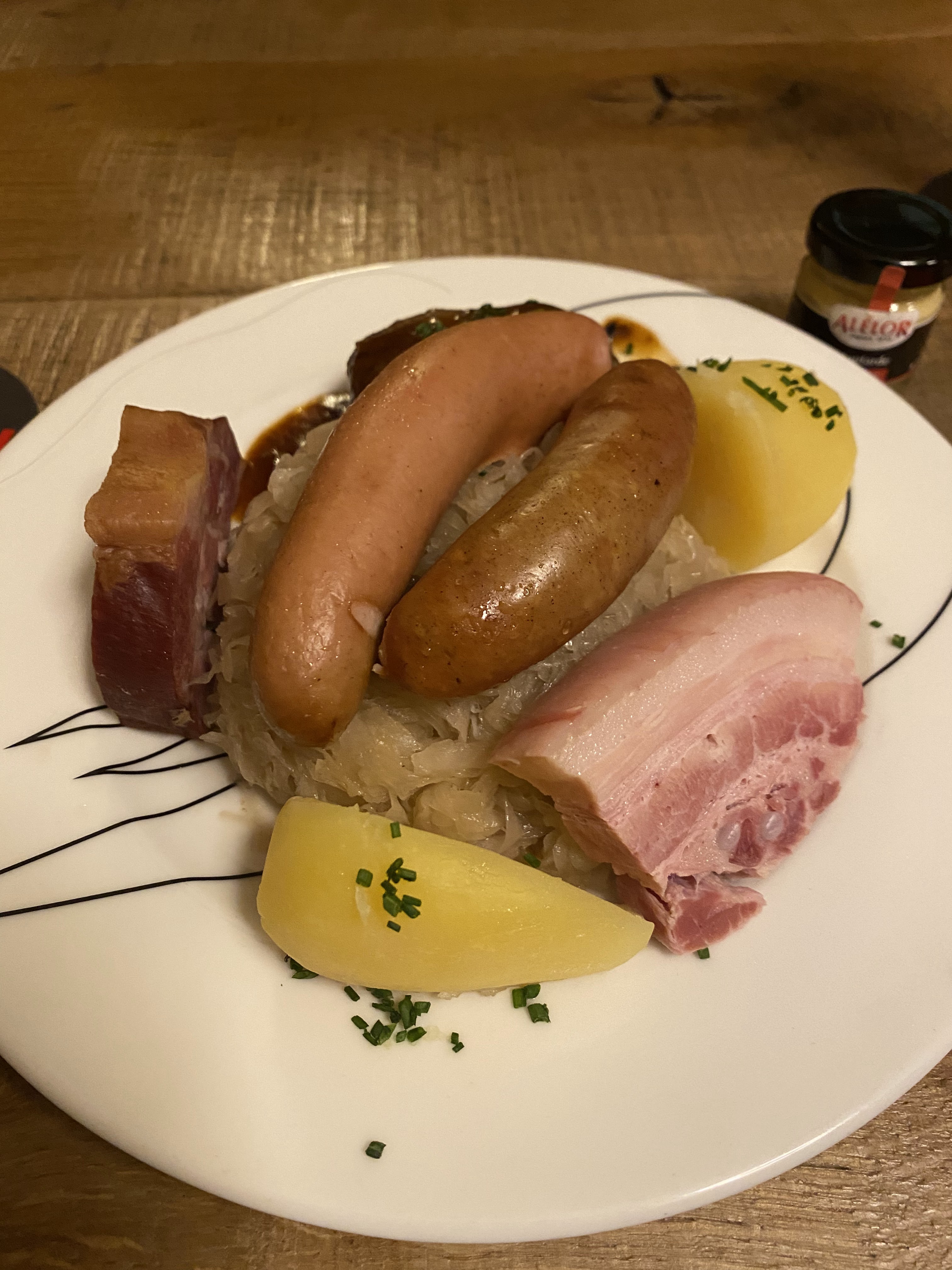 Très bon. Beaucoup de choix en plat. Très bien servi. Excellente ambiance. En photo la choucroute et le jarret. Rien à redire sur le rapport qualite/prix