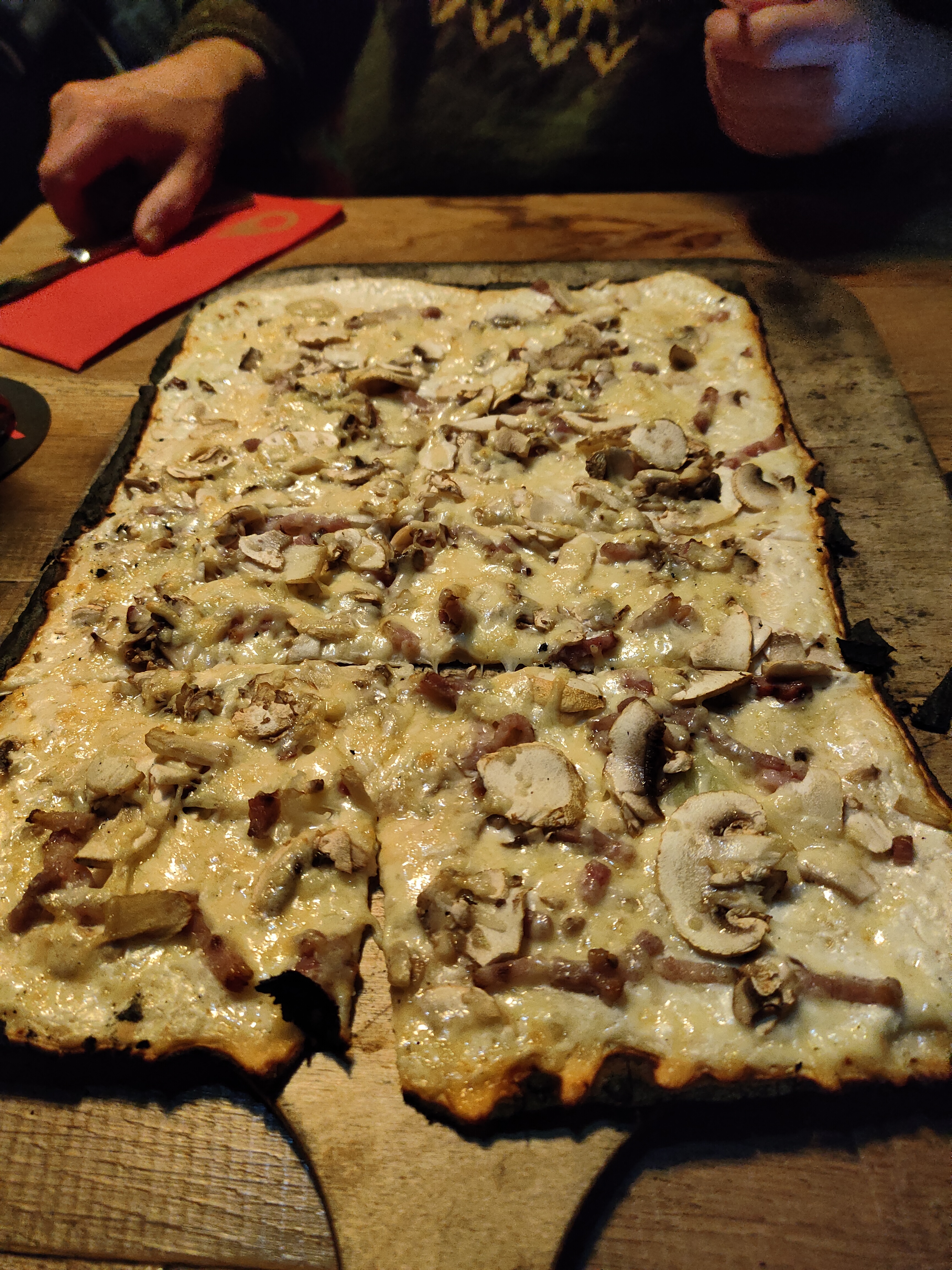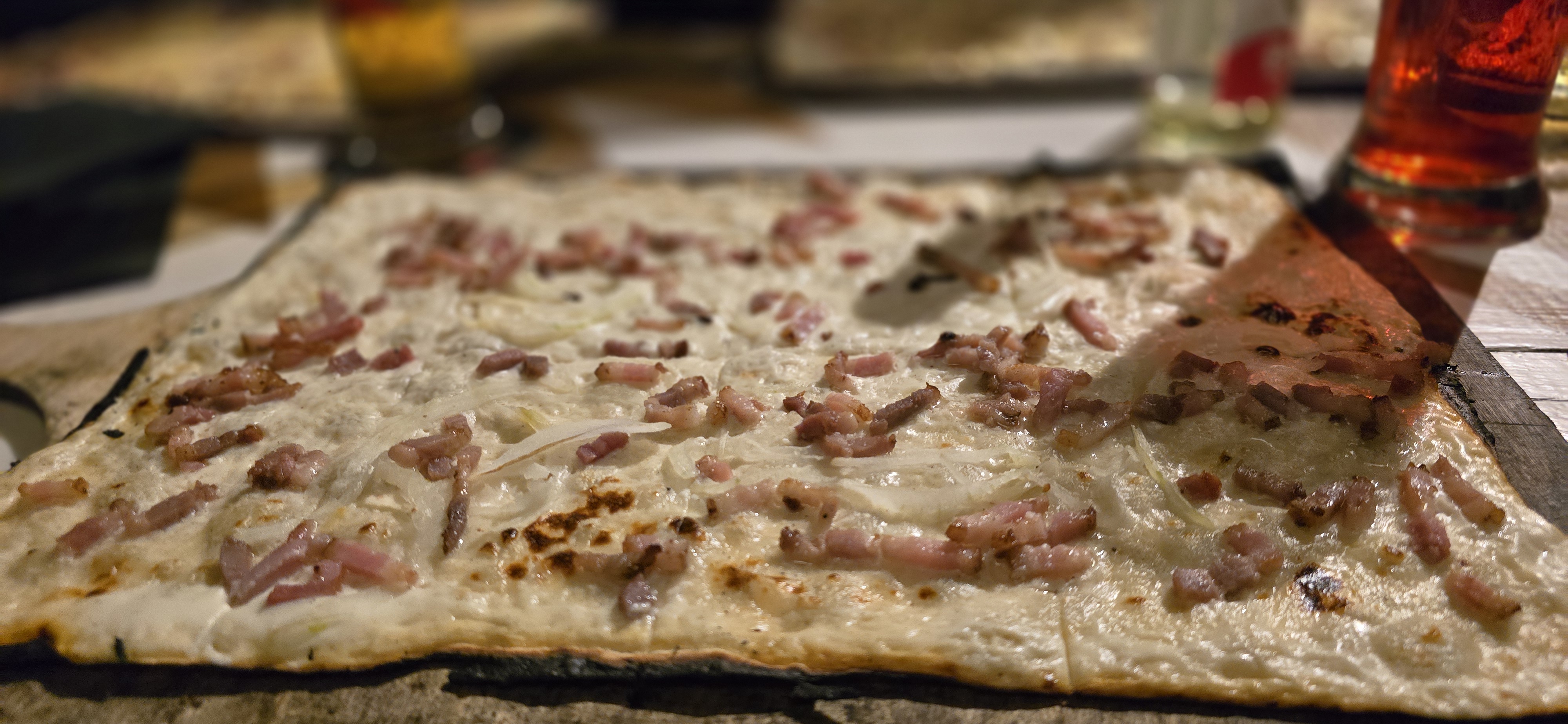 Belle surprise. Nous y sommes rentrés par hasard en nous promenant dans le marché de Noël. Les tartes flambées sont très bonnes, je recommande.