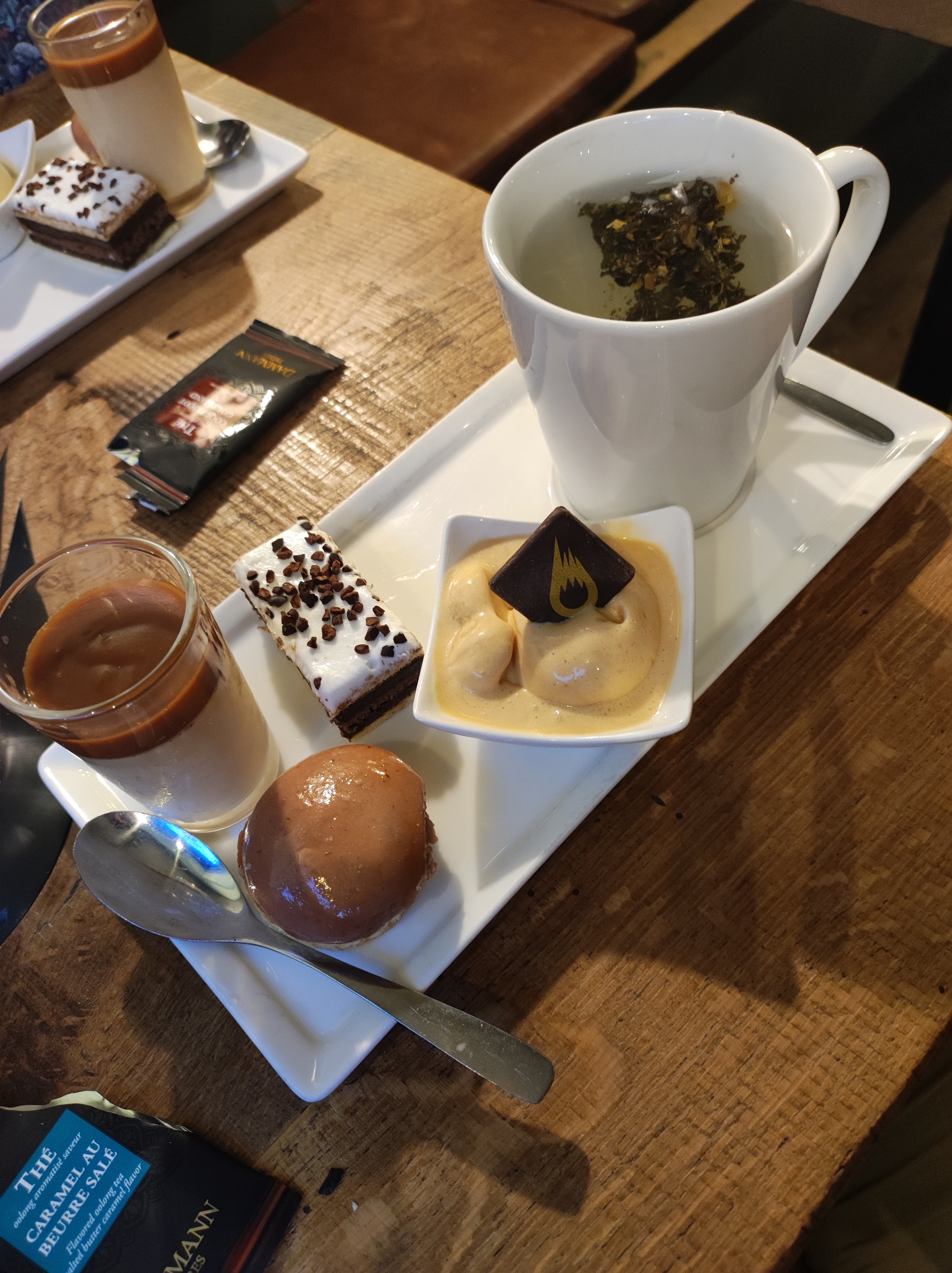 Je suis venu prendre un verre. J'ai bu une bière Meteor en Angleterre et je voulais goûter à leur bière de mars, Printemps. Le personnel parle au moins trois langues. Très utile. Grand endroit. Beaucoup de sièges. Accessible depuis la rue Novembre 22 ou Le Grand Rue. J'essaierai la nourriture la prochaine fois. Belle expérience de toilettes ! Je suis maintenant de retour pour manger. Il y avait une Tarte Flambée entre nous. J'aurais voulu plus, mais nous avons dû prendre l'espresso gourmand pour le dessert car c'est quelque chose que nous avons un peu pour mission de goûter. Celui-ci était très bon. Il y avait beaucoup de textures et de goûts différents. Le café était bon aussi. Très chanceux d'être juste en face !