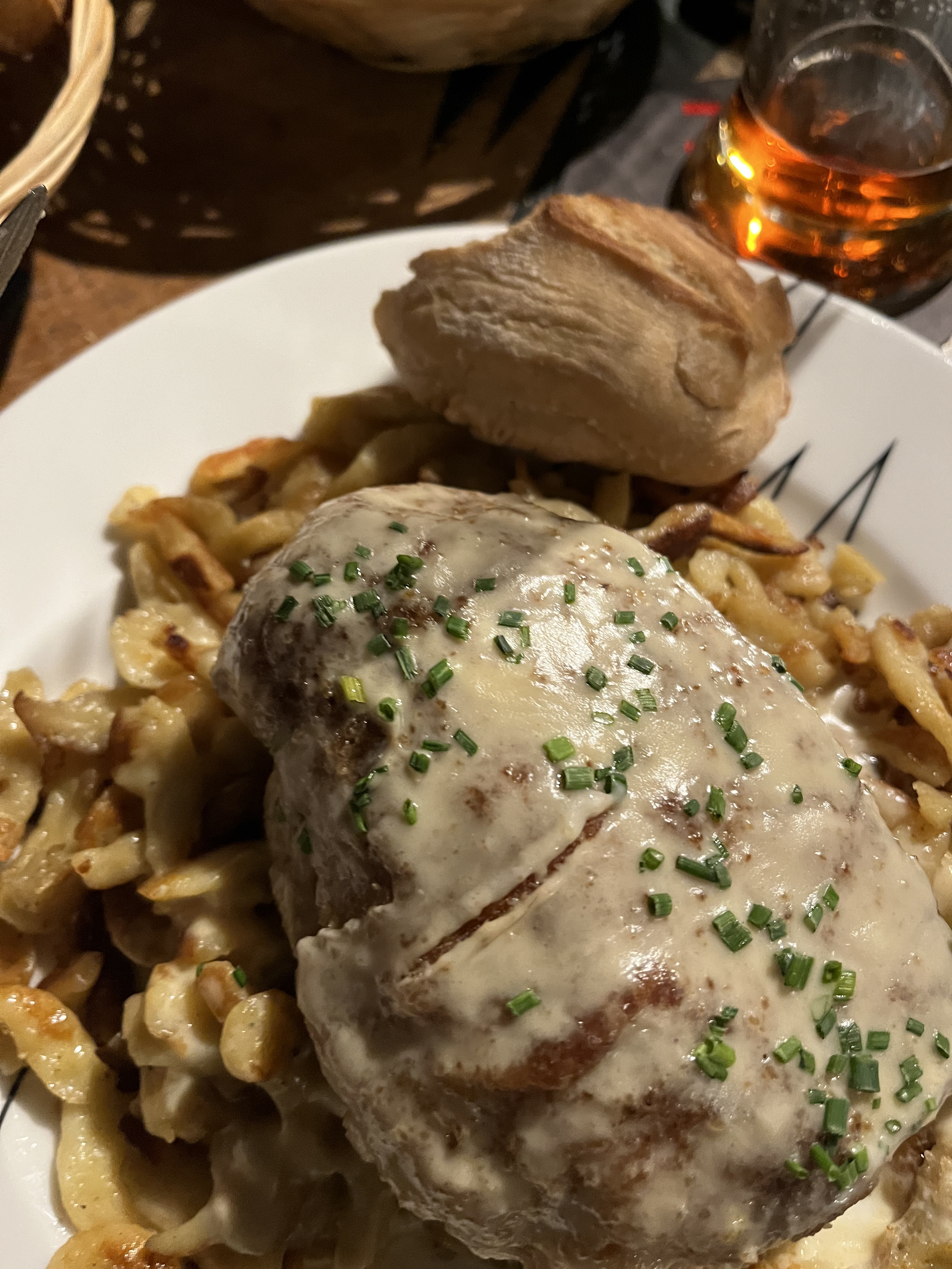 Lieu agréable... Nous avons reservé sur le site mais ce n etait apparemment pas necessaire... pas trop bruyant pour un déjeuner un samedi... Excellent vol au vent de volaille avec spaetzles.... Prix correct Bon appétit :-)
