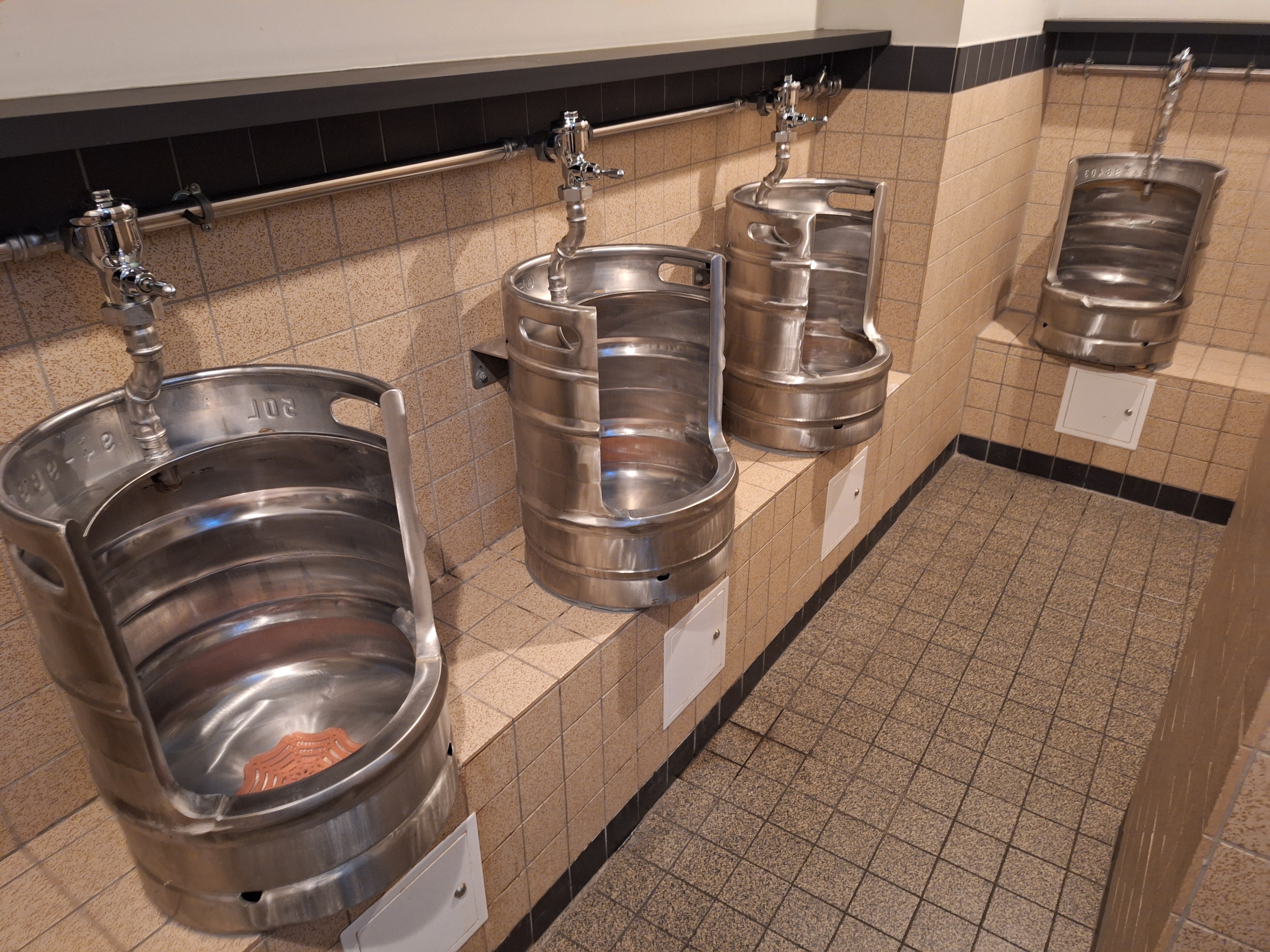 Très beau lieu. Belle pièce et ambiance. Service très sympathique. Les bierres Meteor exceptionnelles a découvrir ici. Très bonnes tartes flambées. Toilettes pour hommes très originales