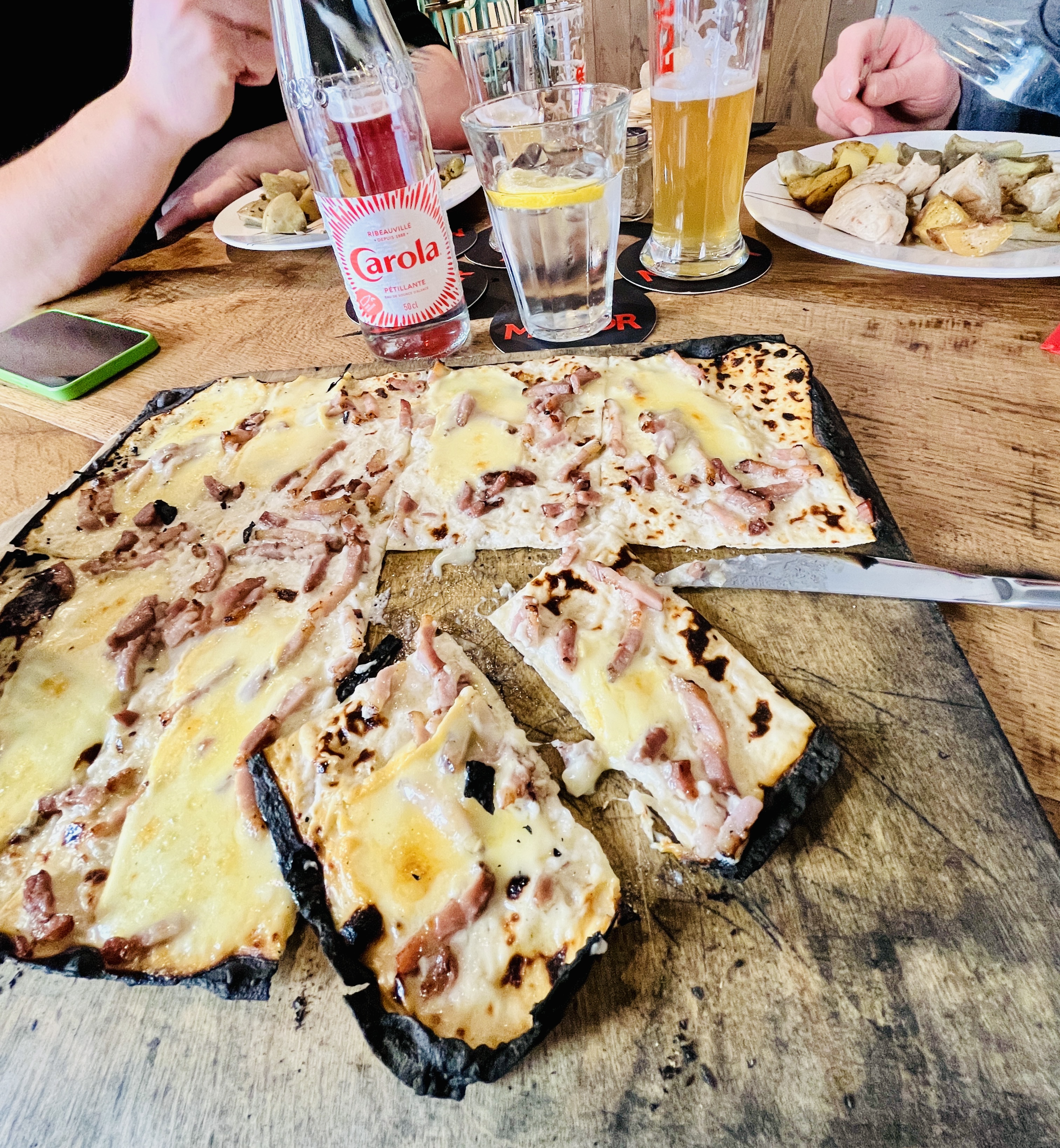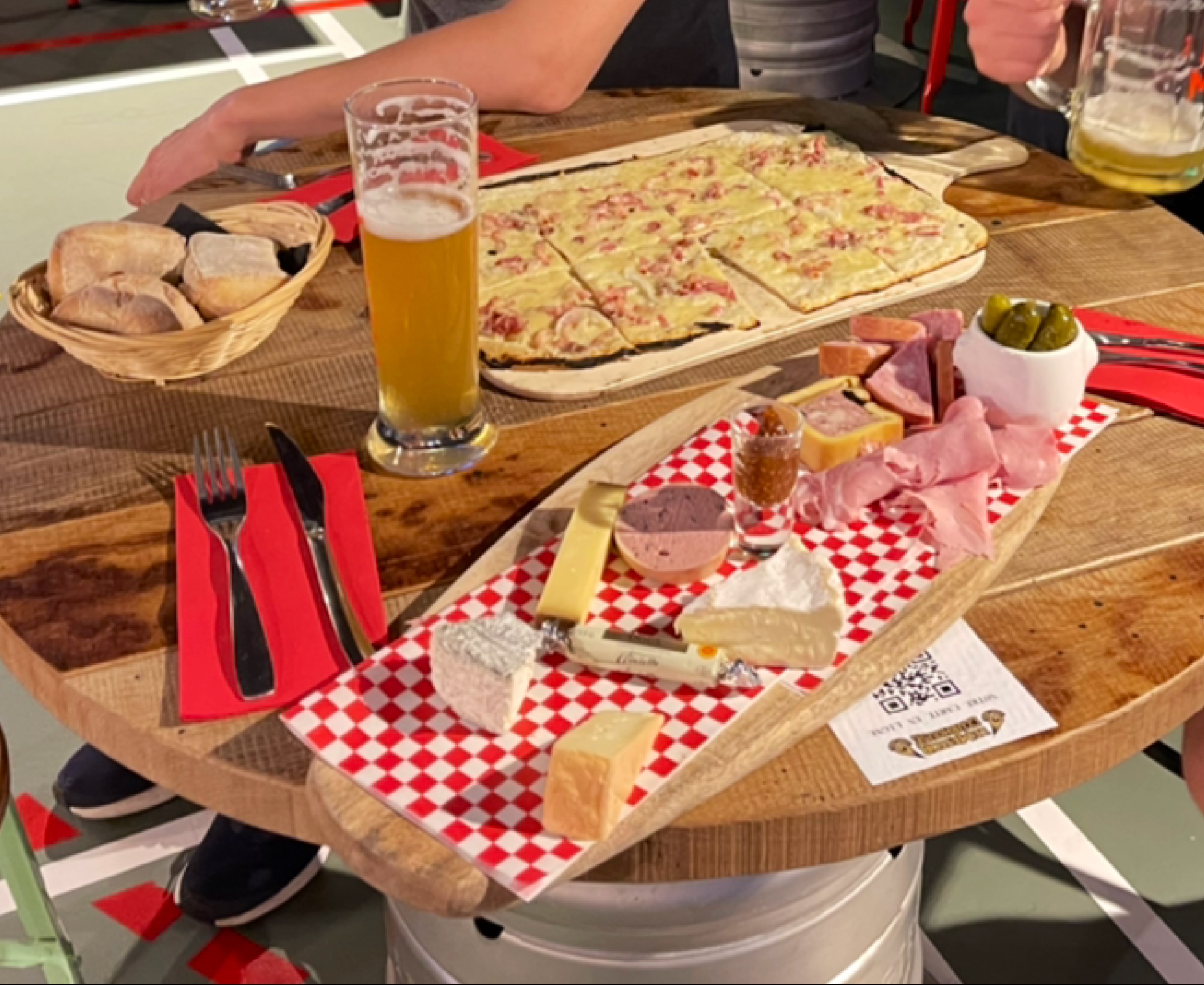 Le meilleur endroit de Strasbourg ! Bonne bière, tarte flambée parfaite et très bonne salade César. Nous avons tout terminé avant que j'aie eu la chance de prendre une photo !