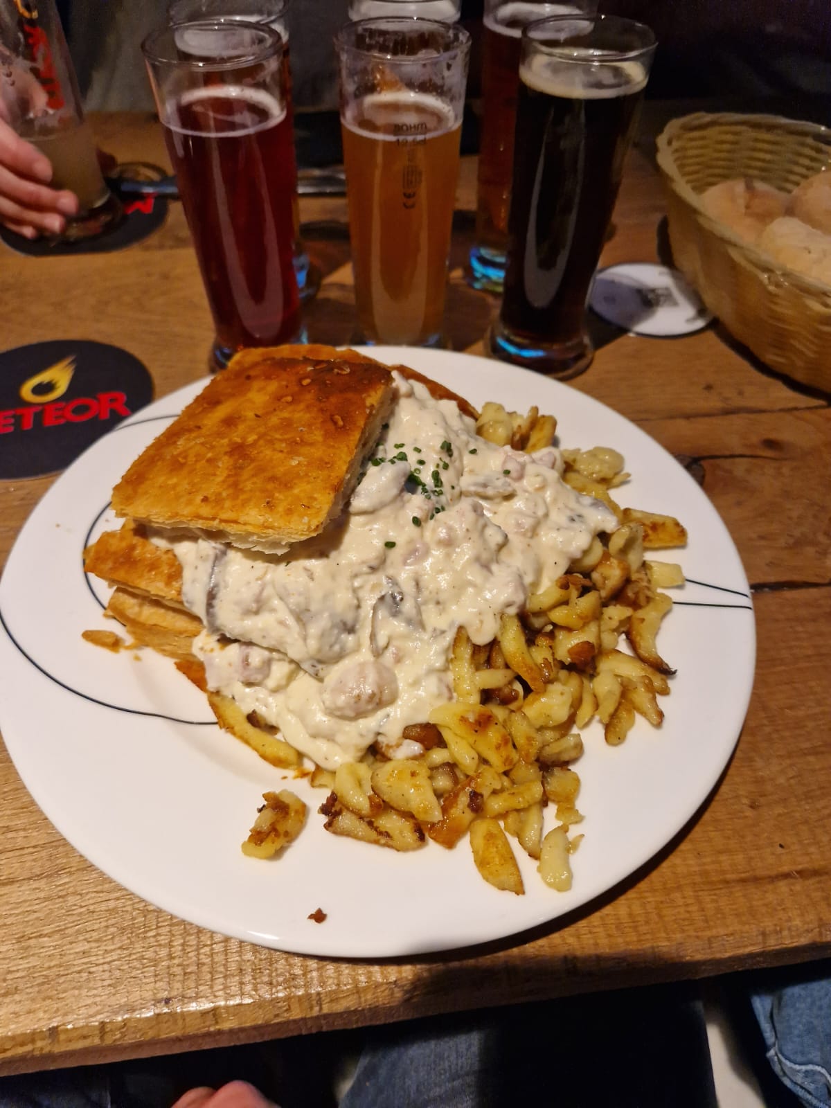 La bière Météor j'adore. La déco est top ! Je trouve les tartes flambées très bonnes mais pourrait faire mieux sur la quantité de lardons. 5 étoile tout de même car la qualité est là.
