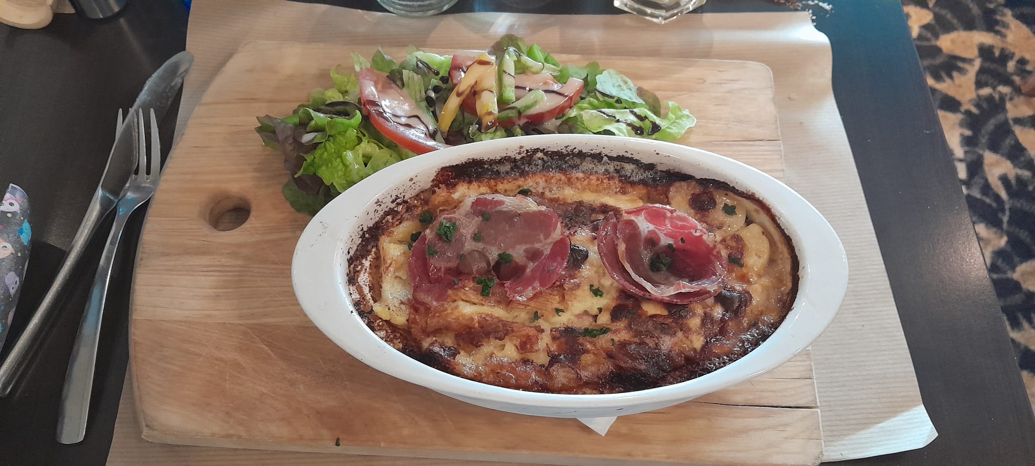 Une belle surprise. Merci aux deux jeunes personnes qui assurent le service. Tous les deux très sympathiques. On a très bien mangé. La tartiflette était top. Le camembert au four aussi. Même le plat enfant était bon. Le pain perdu en dessert est très bon. On s'est régalé mais je retiens surtout la gentillesse de la jeune demoiselle qui s'occupait de nous. Merci.