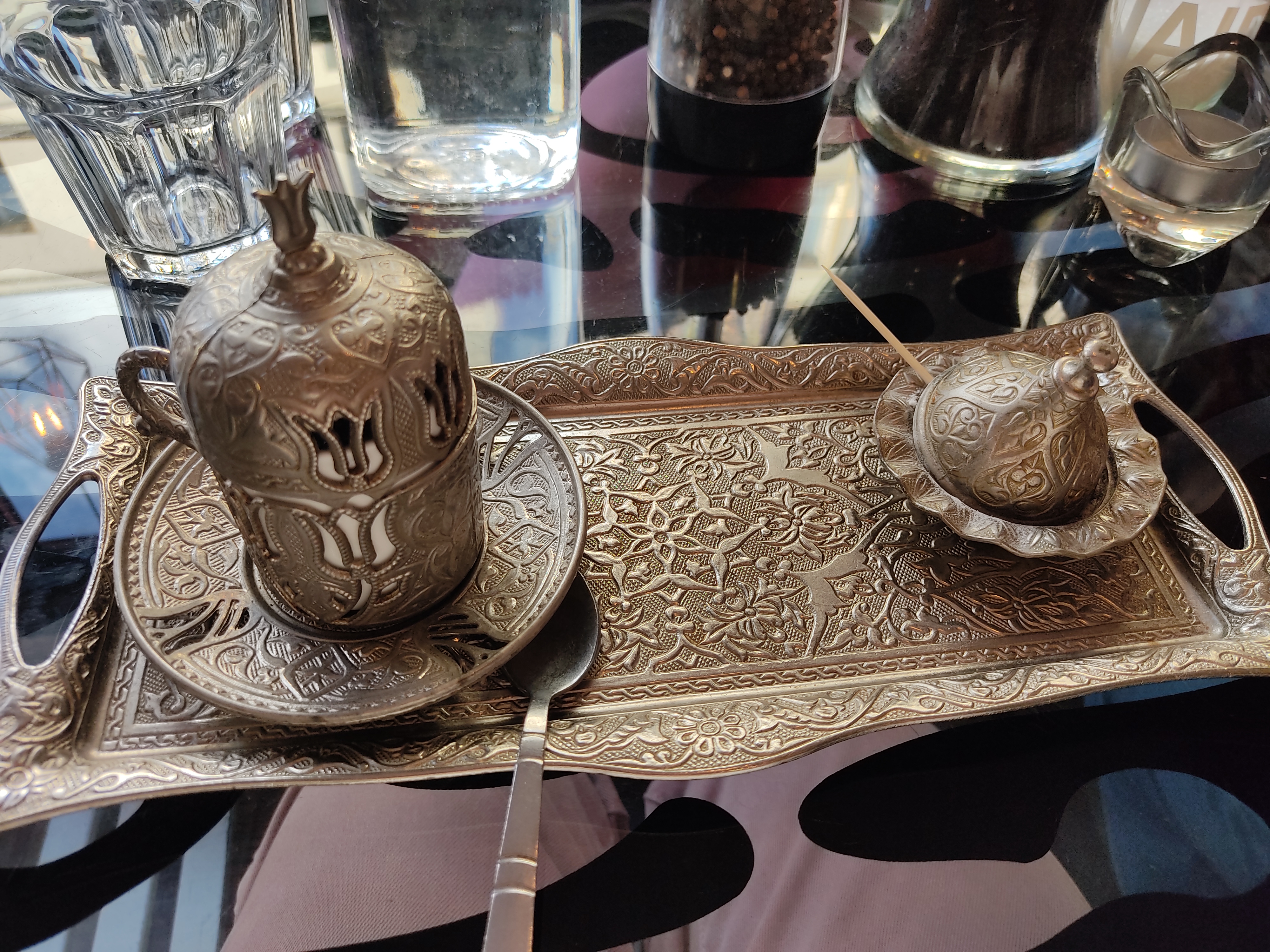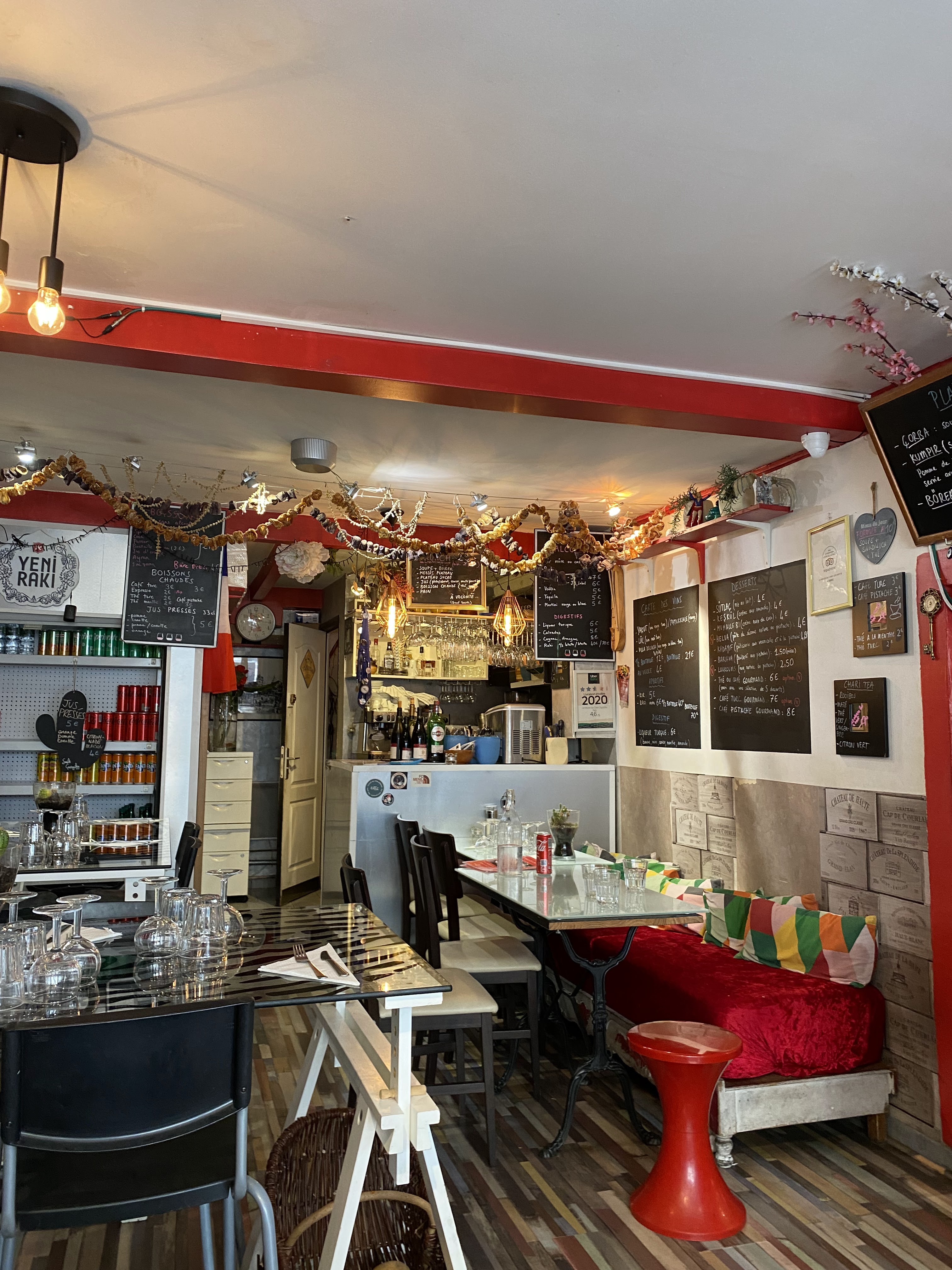 3/5 pour la cuisine mais juste parce que c'est pas à mon goût (mais j'y connais rien à la cuisine turque) objectivement c'était très bien, pas trop cher et sympa à partager, on mange bien et on se sent pas comme un gros tas 👍 Ambiance cosy et conviviale avec pleins de décorations chaleureuses 🍵