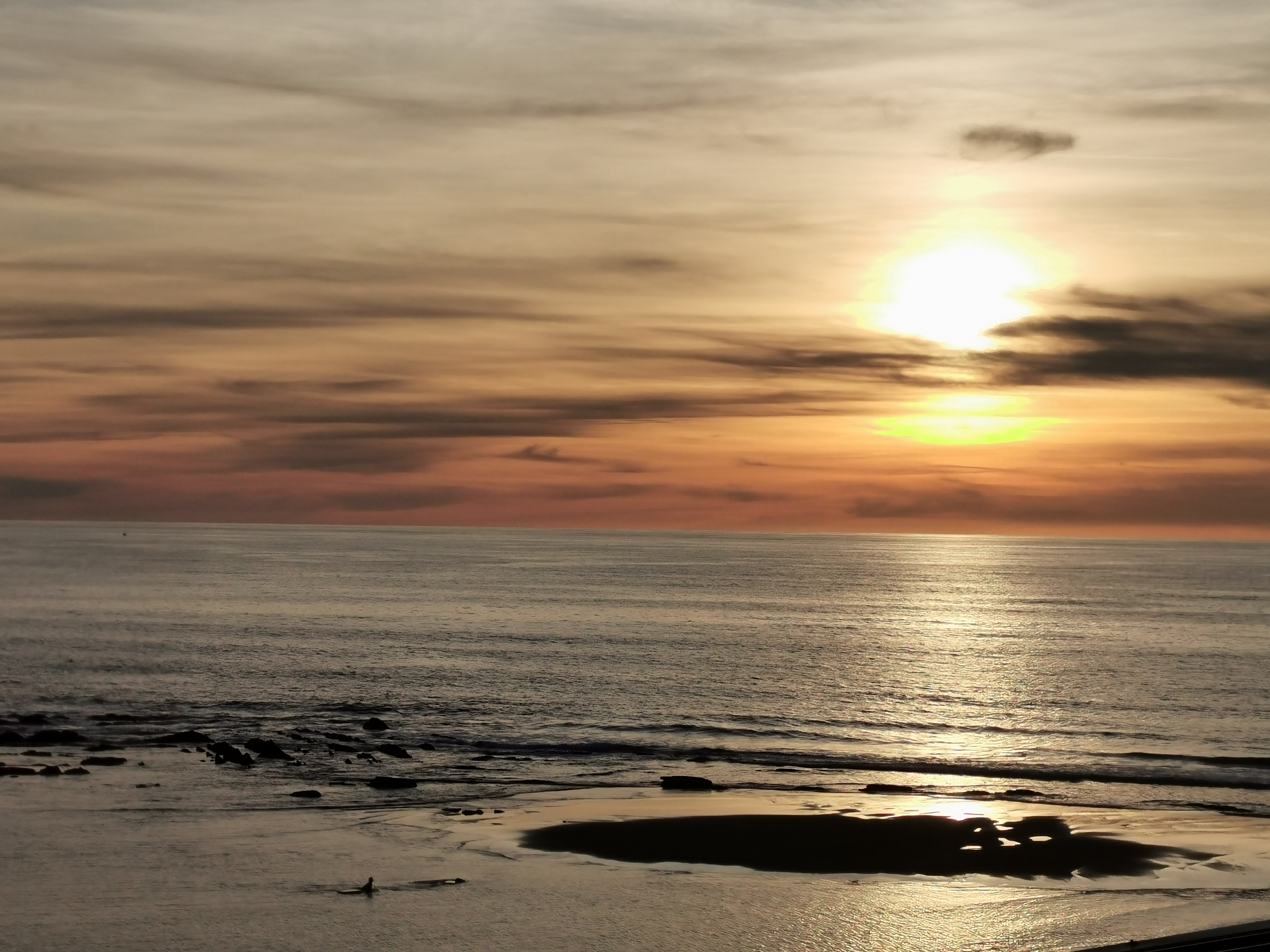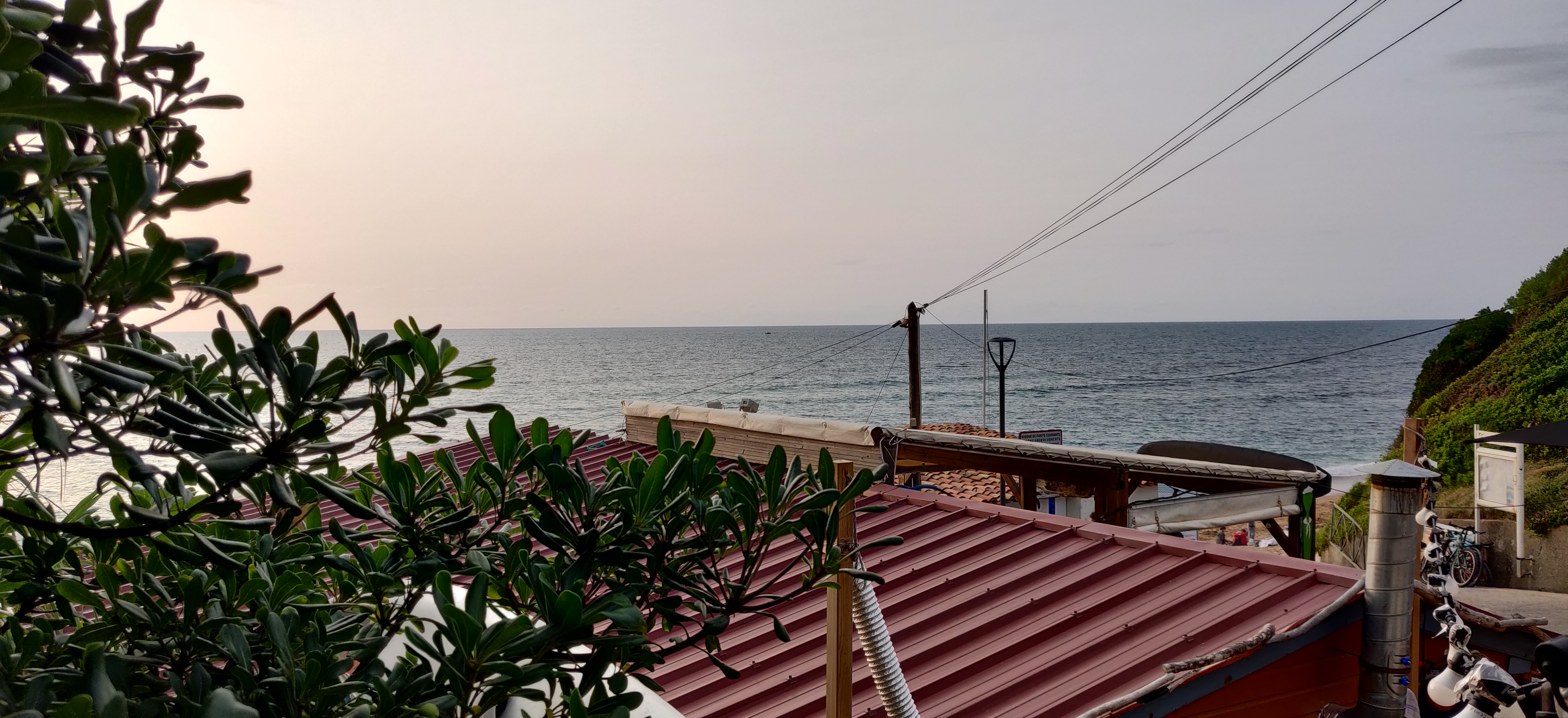 très bon repas version basque, le mojito basque est une tuerie, très belle vue sur cette petite plage au soleil couchant, pas de chance pour nous, c'était nuageux...