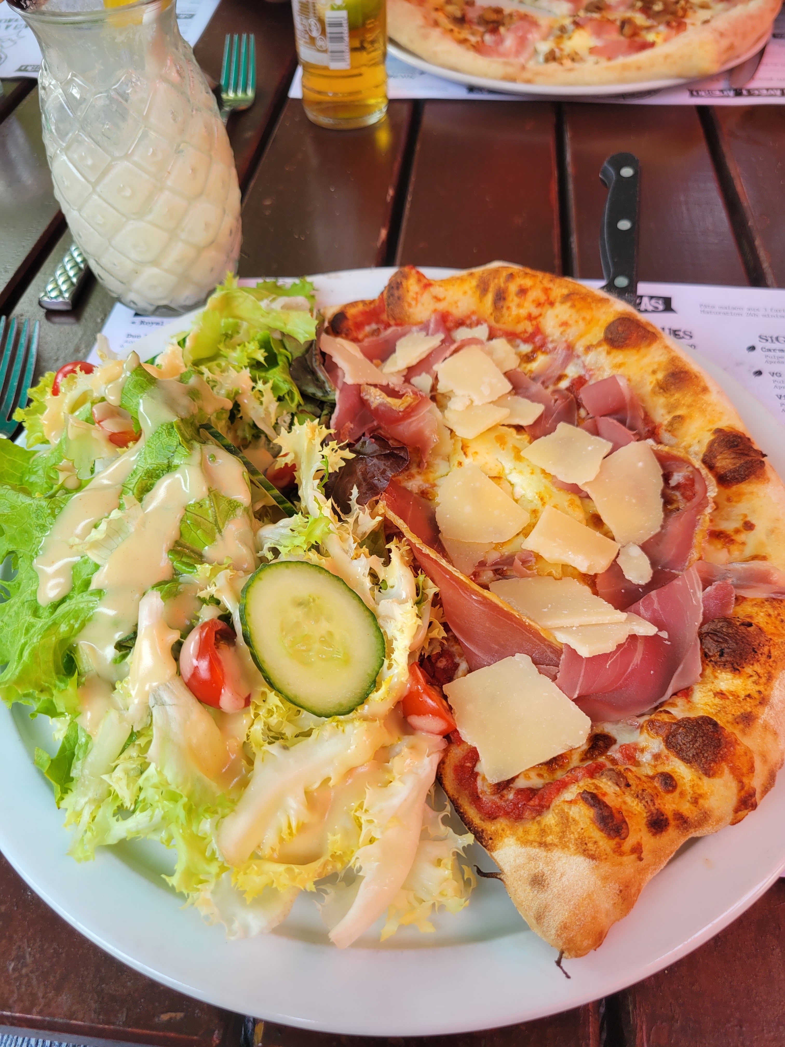 Plats et service sympas mais sans plus. Nous avons constaté la qualité baisser cette dernière année, malgré les prix qui ont augmenté. L'avant-dernière fois où nous y sommes allés, les pizzas avaient l'air d'être des décongelées, car la sauce et le topping glissaient en laissant la pâte vide, et n'avaient pas trop de goût. Stratégie commerciale à revoir, nous pensons...