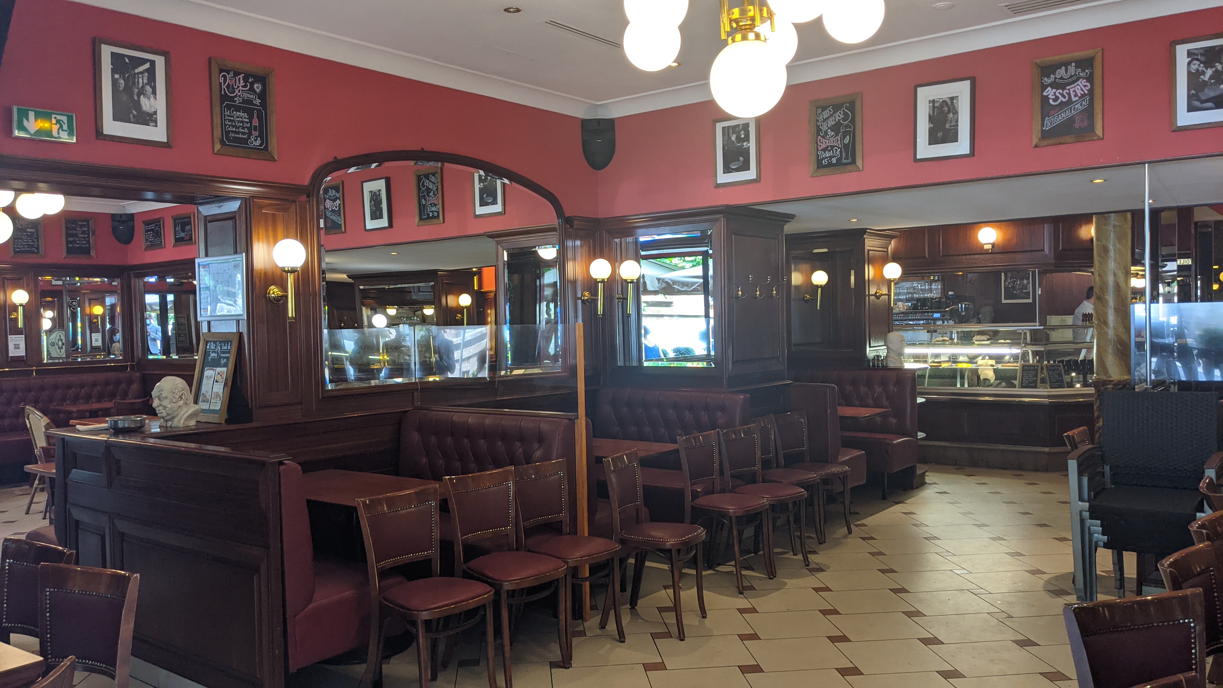 Ambiance brasserie comme à Paris, avec le décor, le densité des tables, l'affluence des clients, le bruit et les plats. La cuisine est bonne et plus copieuse qu'à Paris ; l'attente est parfois assez longue, mais on le comprend, étant donné le nombre des clients.
