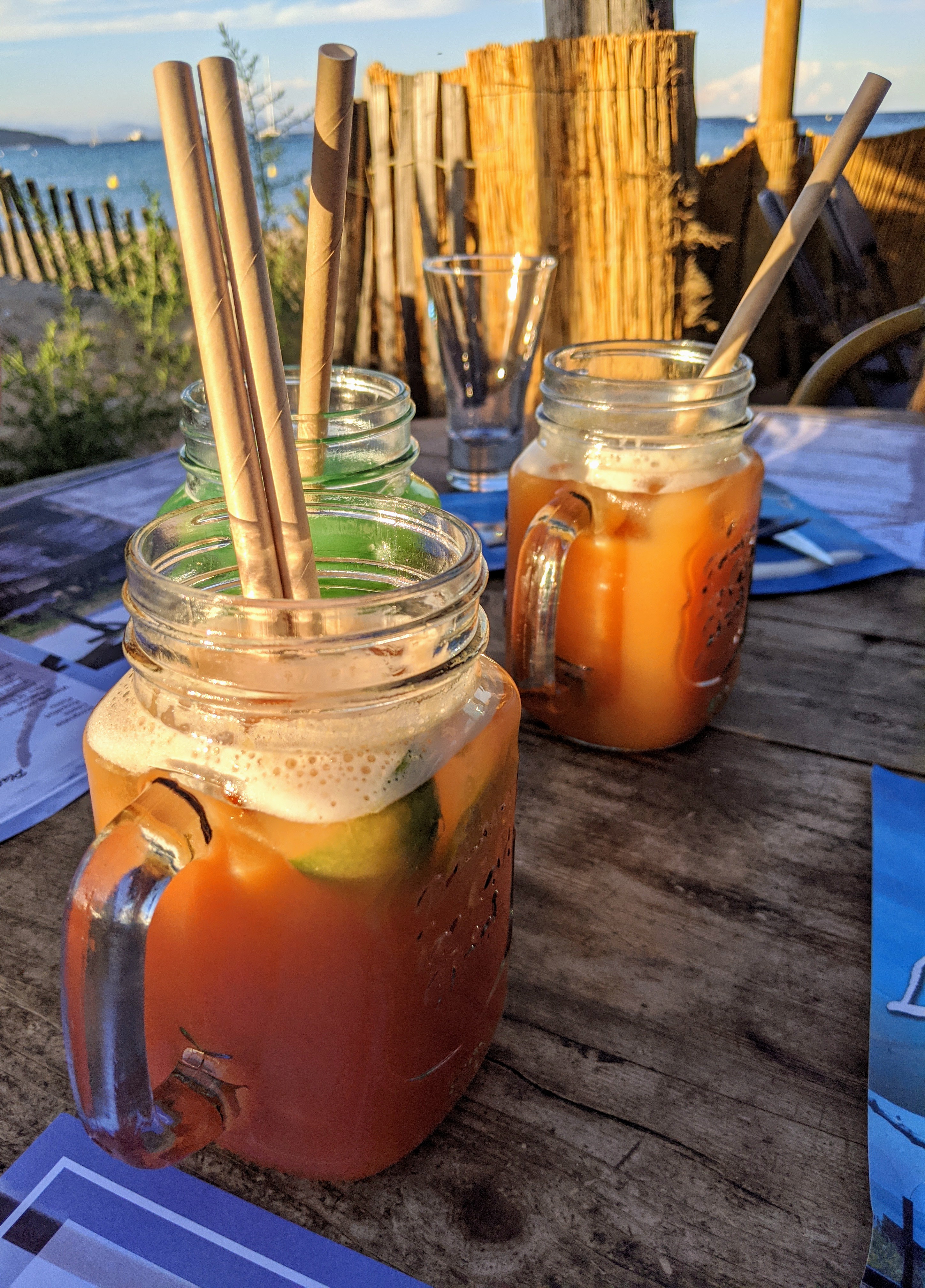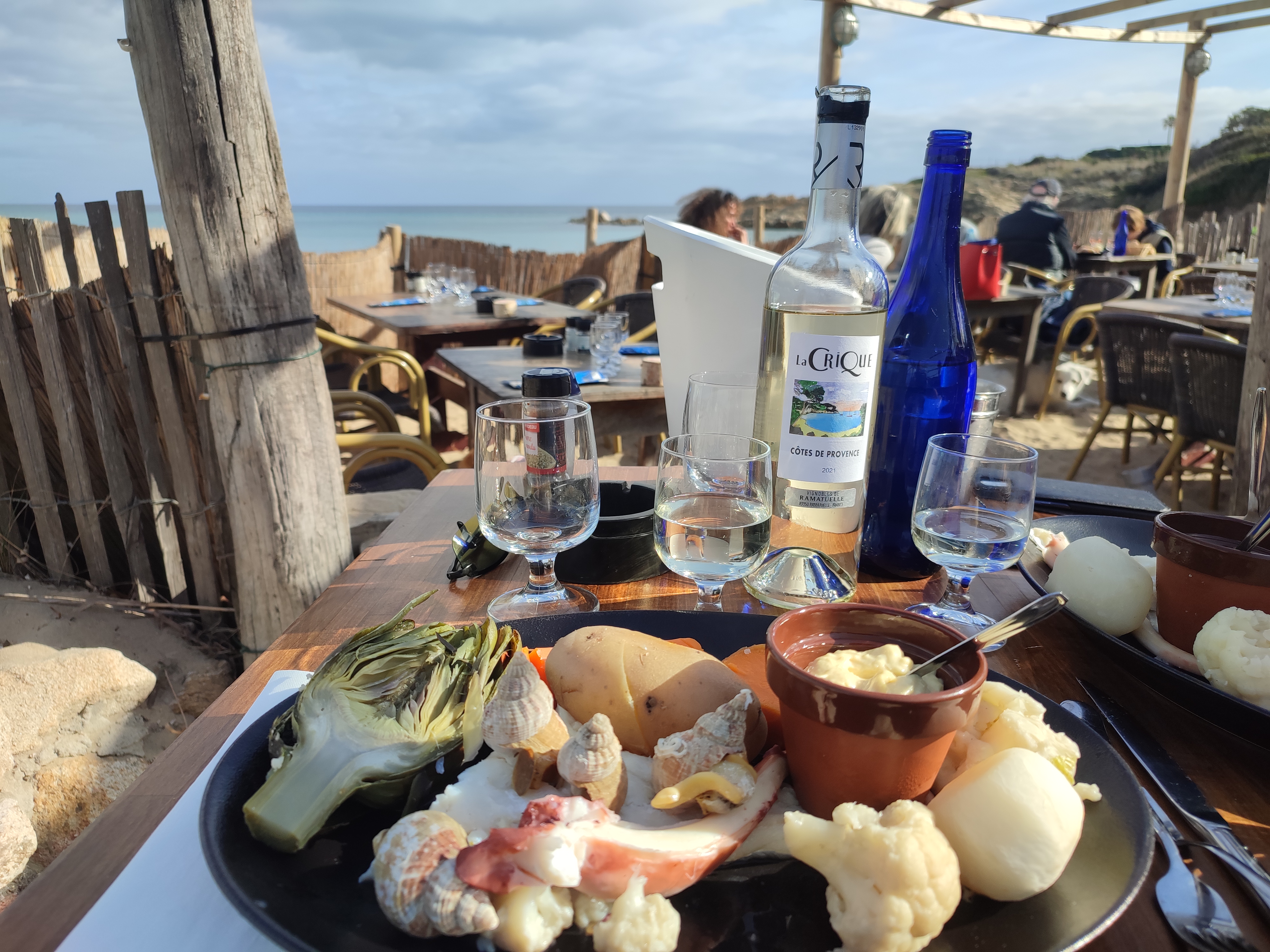 Belle pause déjeuner dans la paillote...calme et aéré...super en plus avec la méditerranée à nos pieds ...à faire....