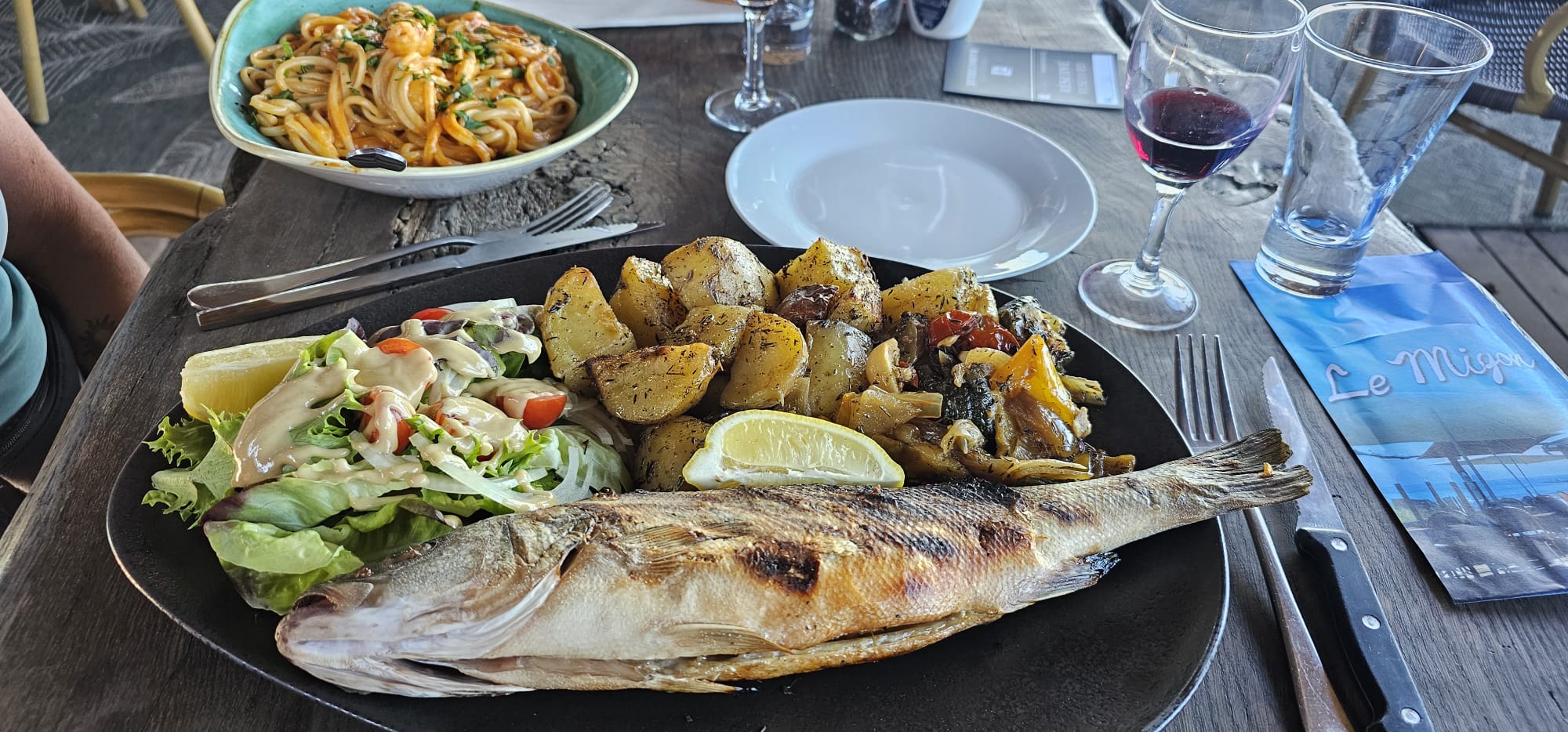 Des plats copieux, des produits de qualités, un service irréprochable. A découvrir. Vue sur mer avec au loin la vue sur le Migon