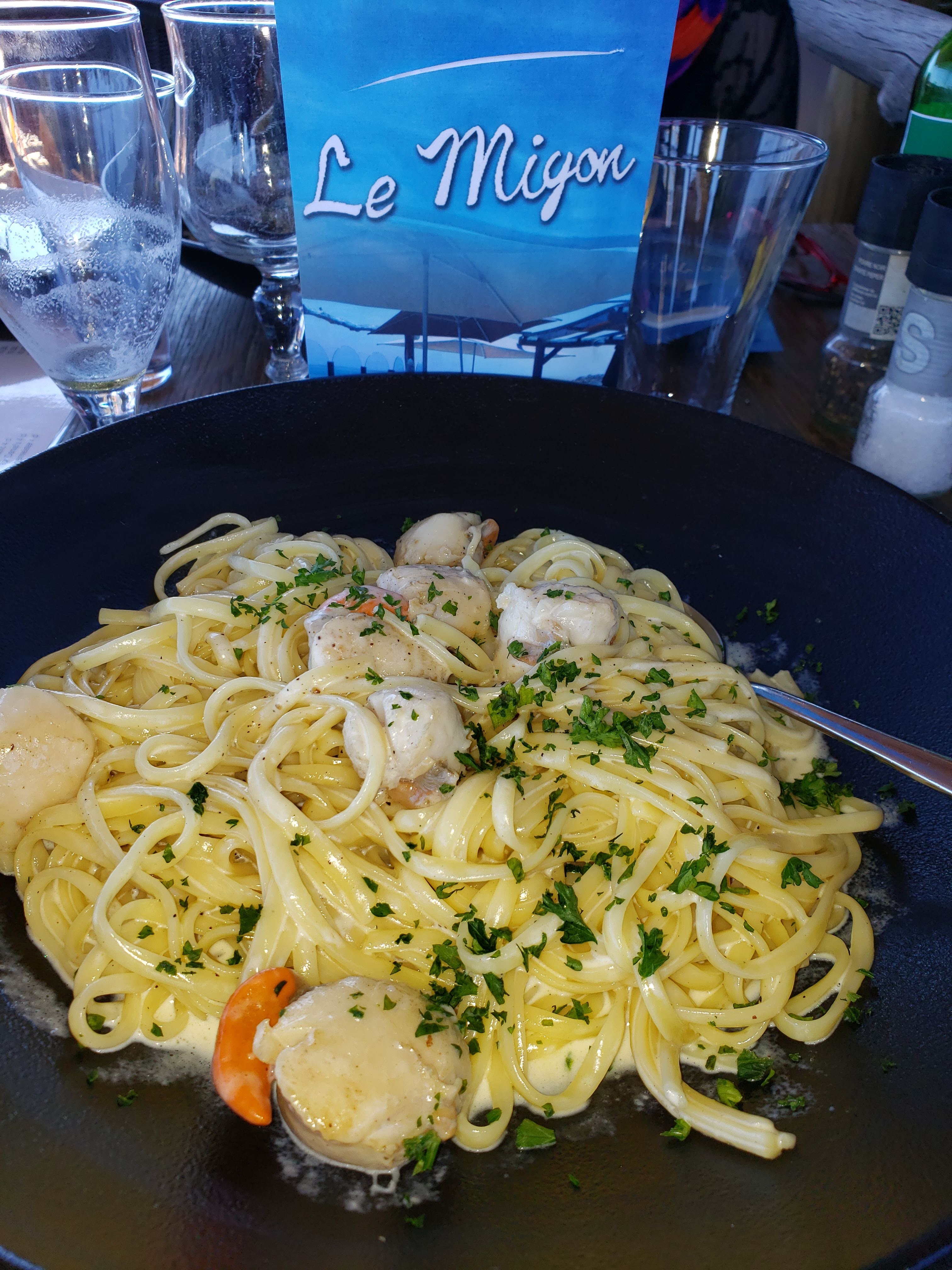 Je m’excuse auprès de l’équipe, puisque nous avons beaucoup hésité avant de venir, et nous avons eu raison de tenter l’expérience Migon ! Les plats étaient EXCELLENTS, je recommande vivement les linguines aux langoustes et aux morilles ☺️ Le cadre est idéal pour passer une super soirée, les pieds dans les sables. Pensez à prendre une veste le temps se refroidi rapidement, même si les plats vous réchaufferont sans mal. Merci encore à l’équipe, et surtout à la cuisine que nous n’avons pas remercier directement 😊
