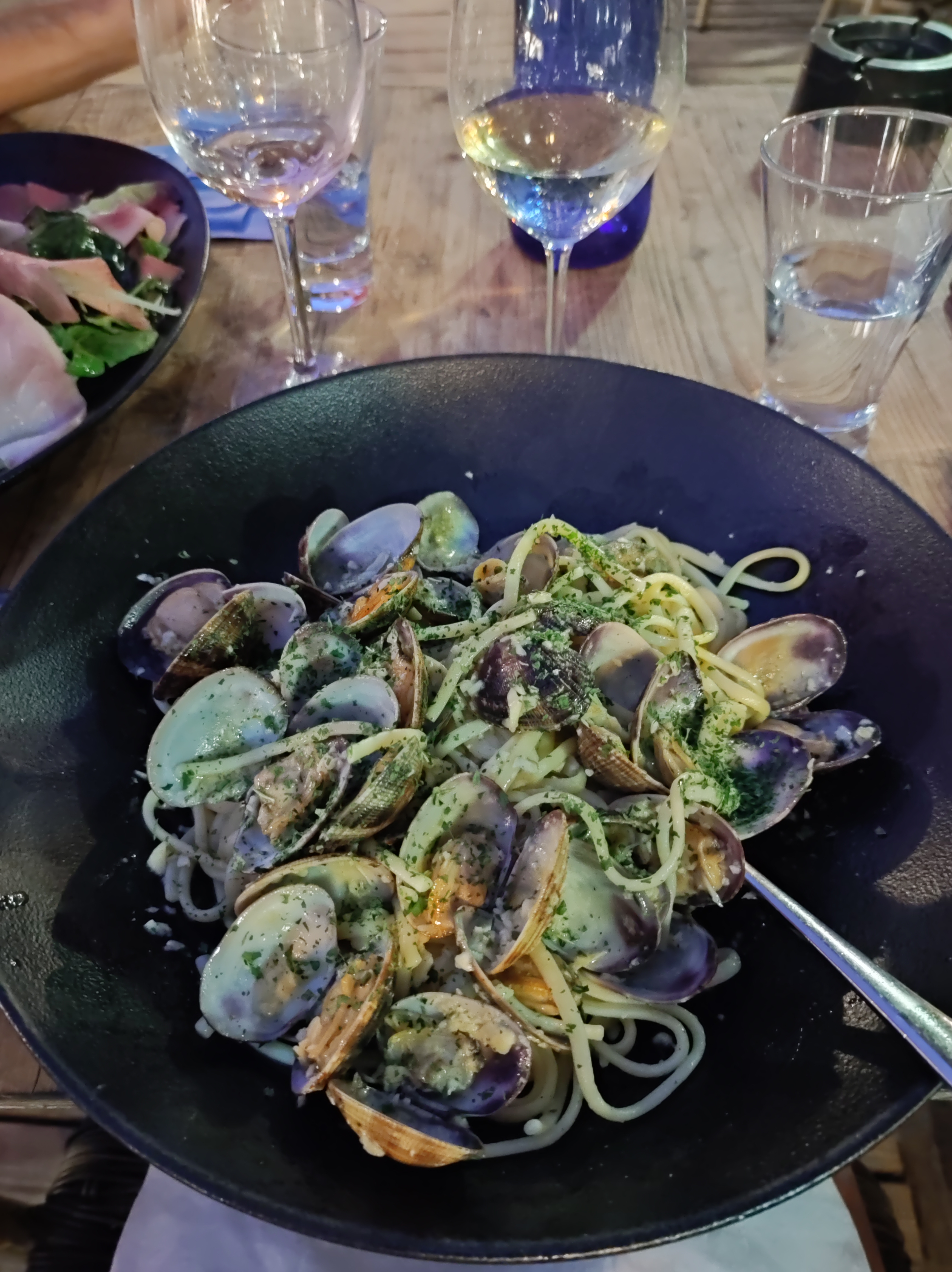Comme nous en avons fait part aux serveurs et au cuisiner, les plats (Pâtes aux palourdes à 28€) servis étaient insipides, sans saveurs avec des palourdes pleines de sables, des pâtes blanches bien trop cuites,... Pour se rattraper le restaurant a voulu nous offrir des desserts à 10€, ce qui n'a fait que confirmer notre avis de cet endroit : Pavlova avec des fruits moisis et un Tiramisu des plus ratés jamais goutés. Ce n'est pas parce que la quantité est dans l'assiette que la qualité est au rendez-vous. Un conseil, abstenez-vous d'y manger si vous voulez bien manger. Encore un Piège à Touriste !