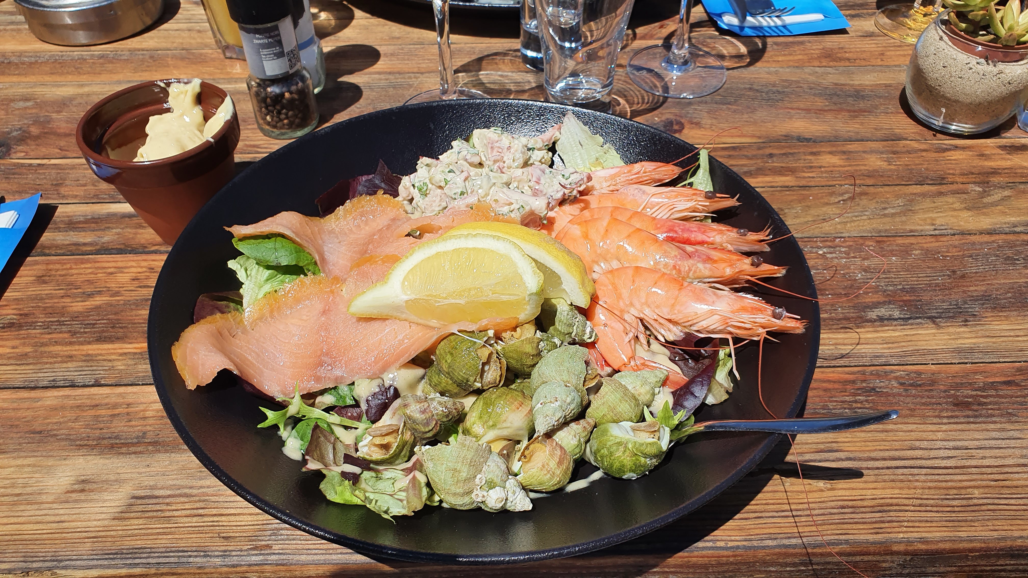 Tourteau vide, crevettes pas fraîches, dommage car le lieu est top mais ne servez pas de tourteau si vous savez qu’il n’y pas de chair dedans 🤷🏻♀️