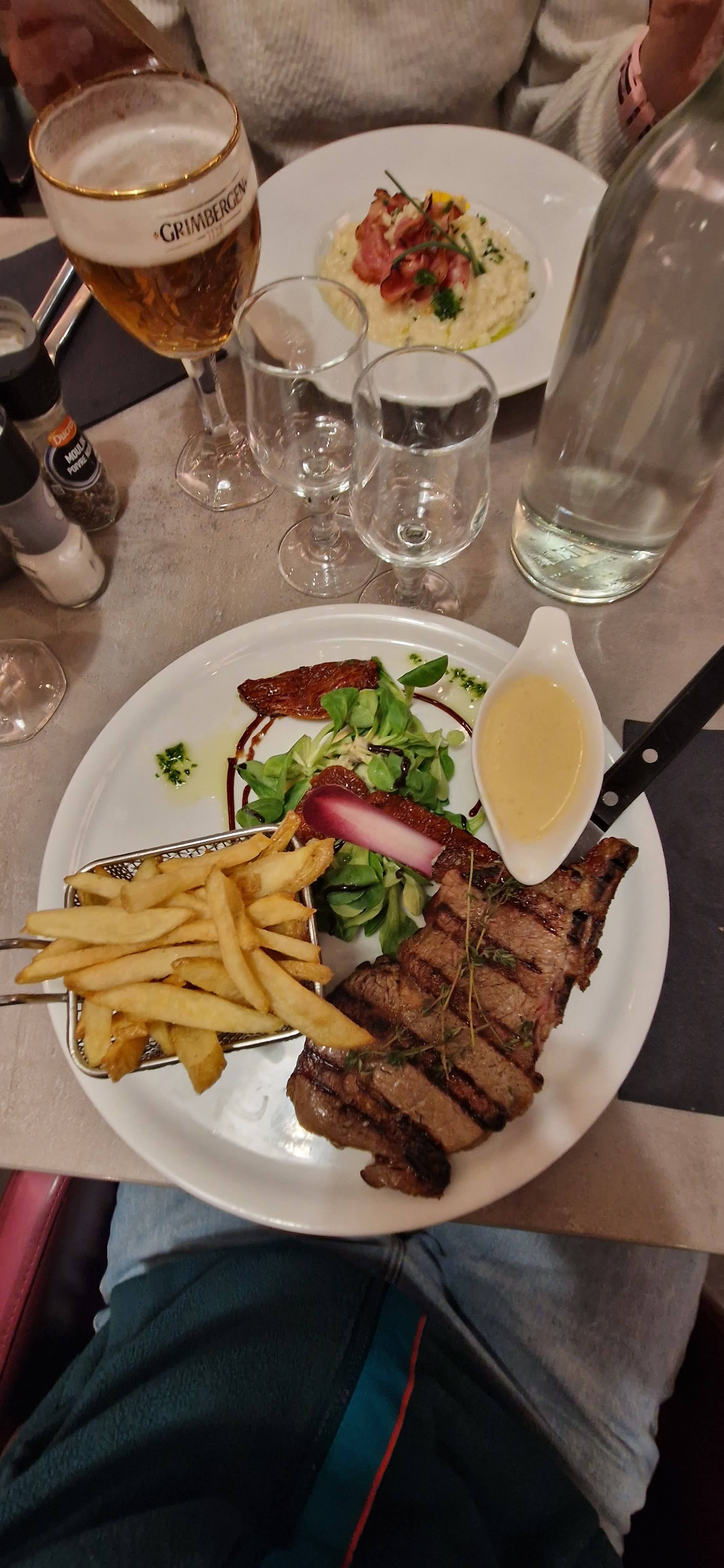 Très belle découverte ! Arrêt impératif Accueil chaleureux et souriant et quelle réactivité du serveur ! Plats goûteux bravo chef :) une souris d agneau à tomber avec un écrasé de pommes de terre truffée et une entrecôte copieuse et délicieuse accompagnée d une sauce champignons truffée une tuerie ! Très bonne pause déjeuner. Le tout à un prix plus que correct. Nous y retournerons dès que possible.