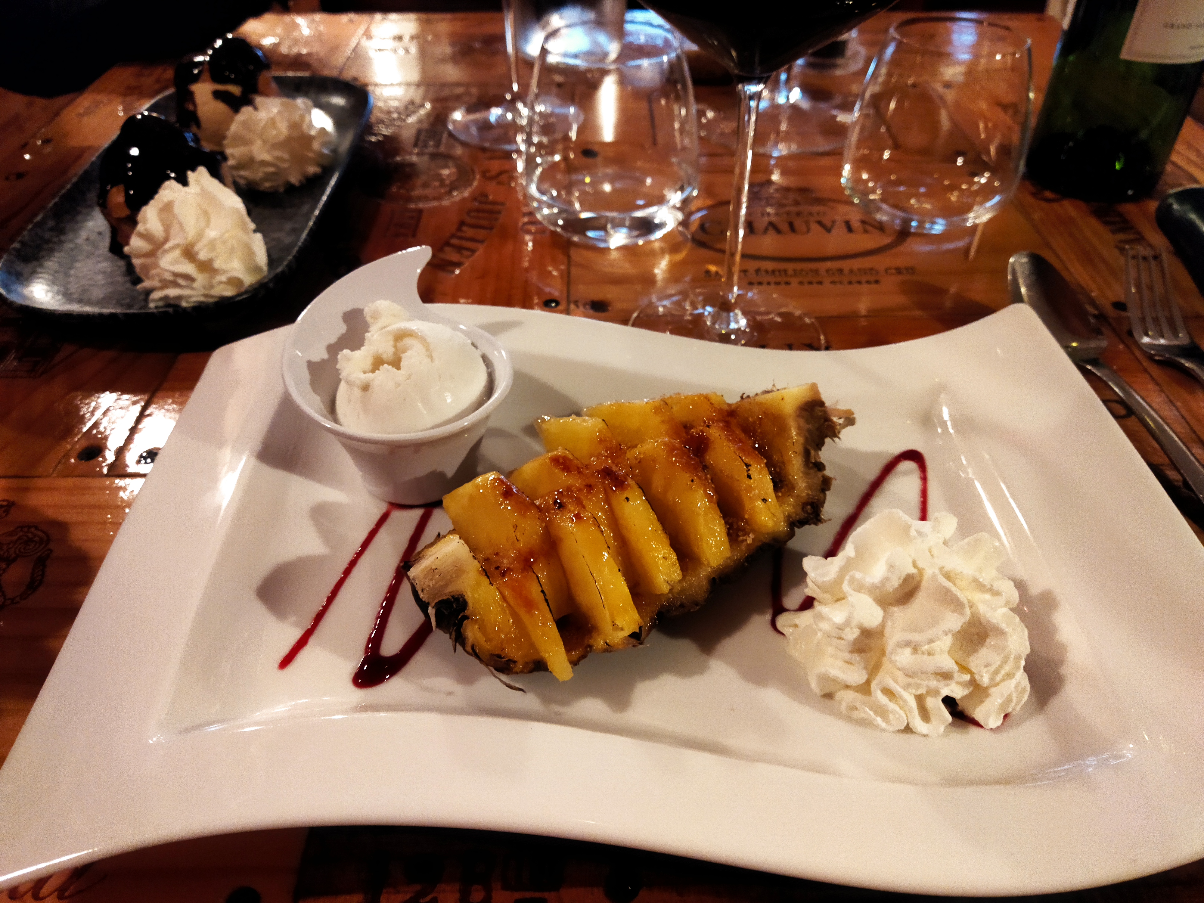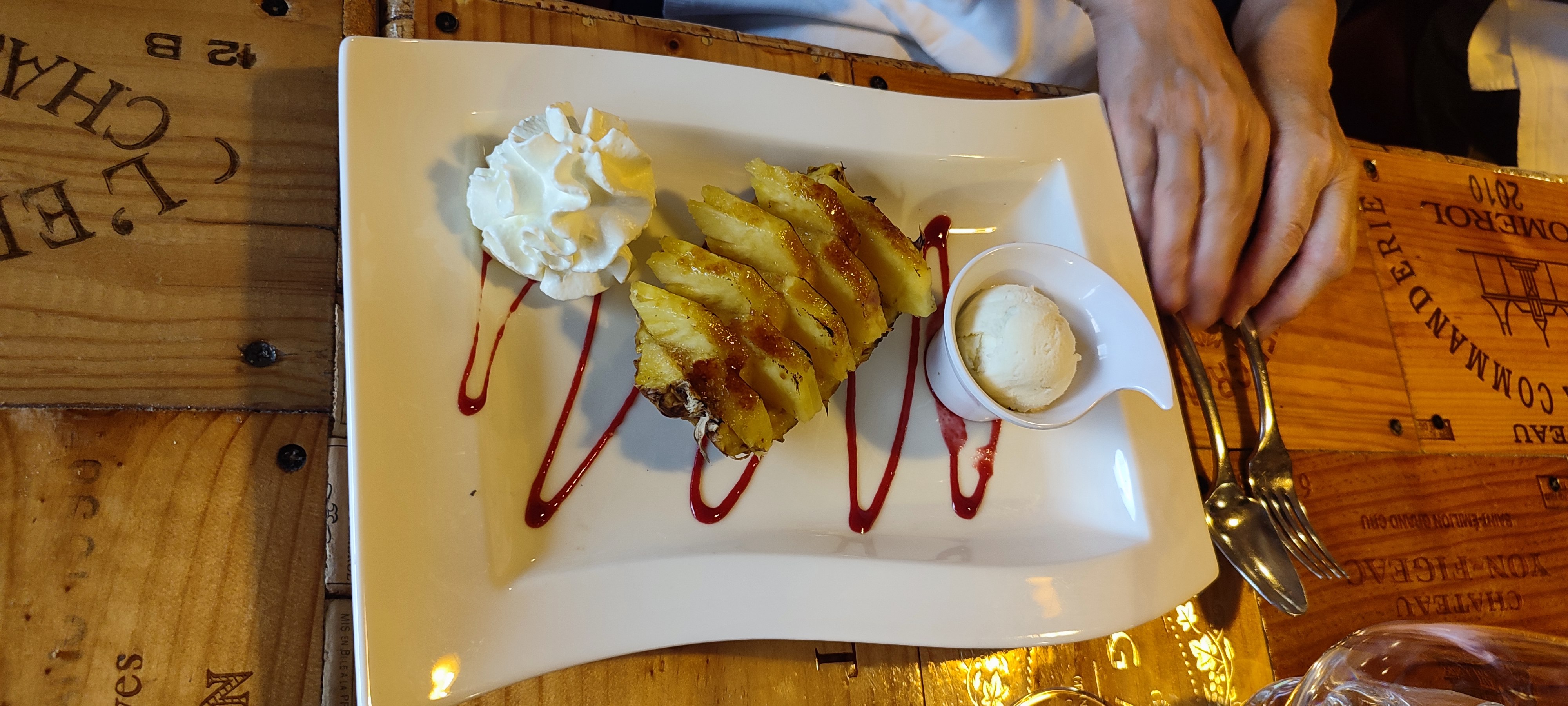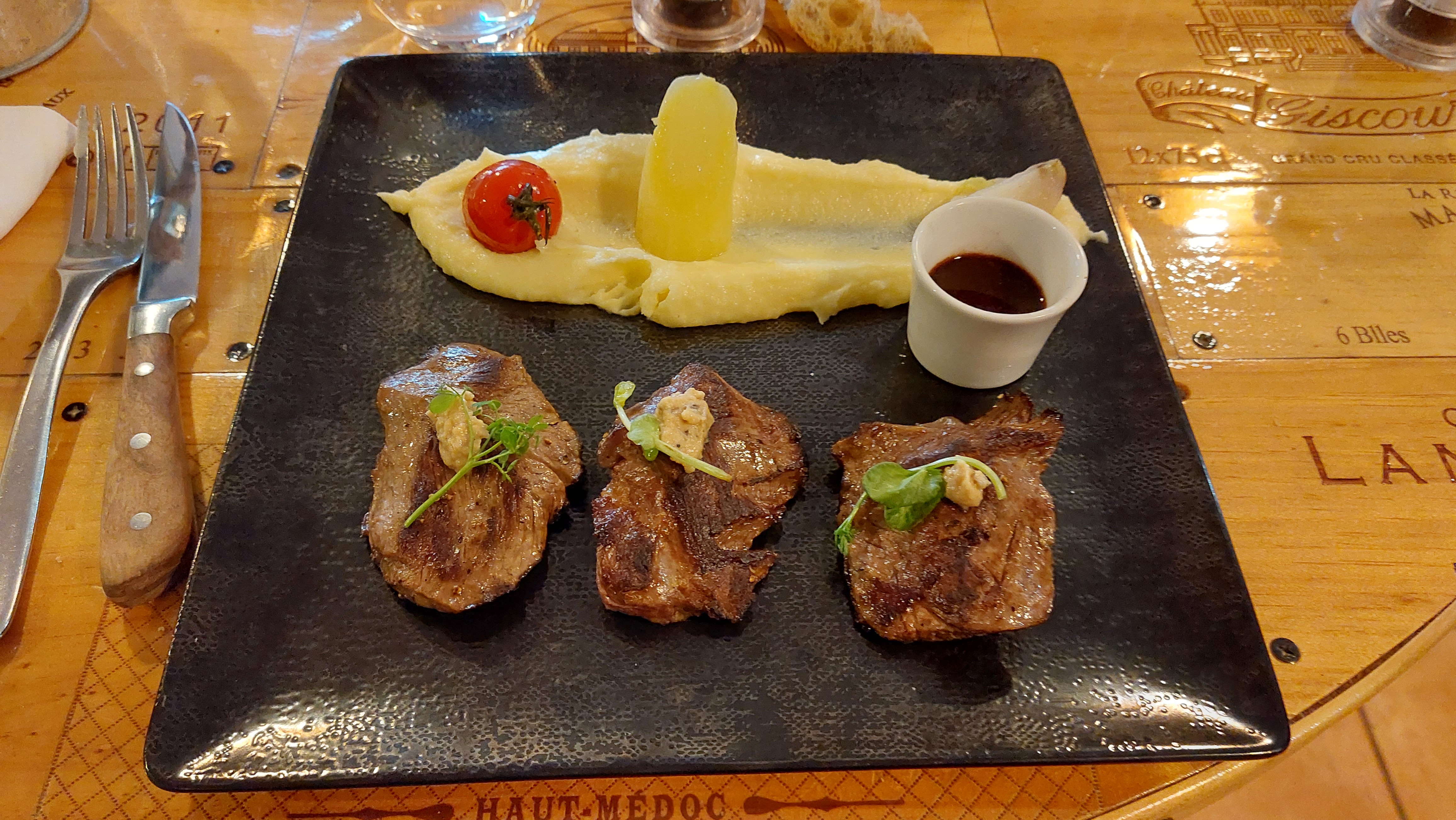 Très bon accueil, cadre sympathique, entrée oeuf et foie gras bon mélange. Les T-Bone manquaient un peu de cuisson, desserts riz au lait, fraises et glace très bons, vin de Pessac de qualité.