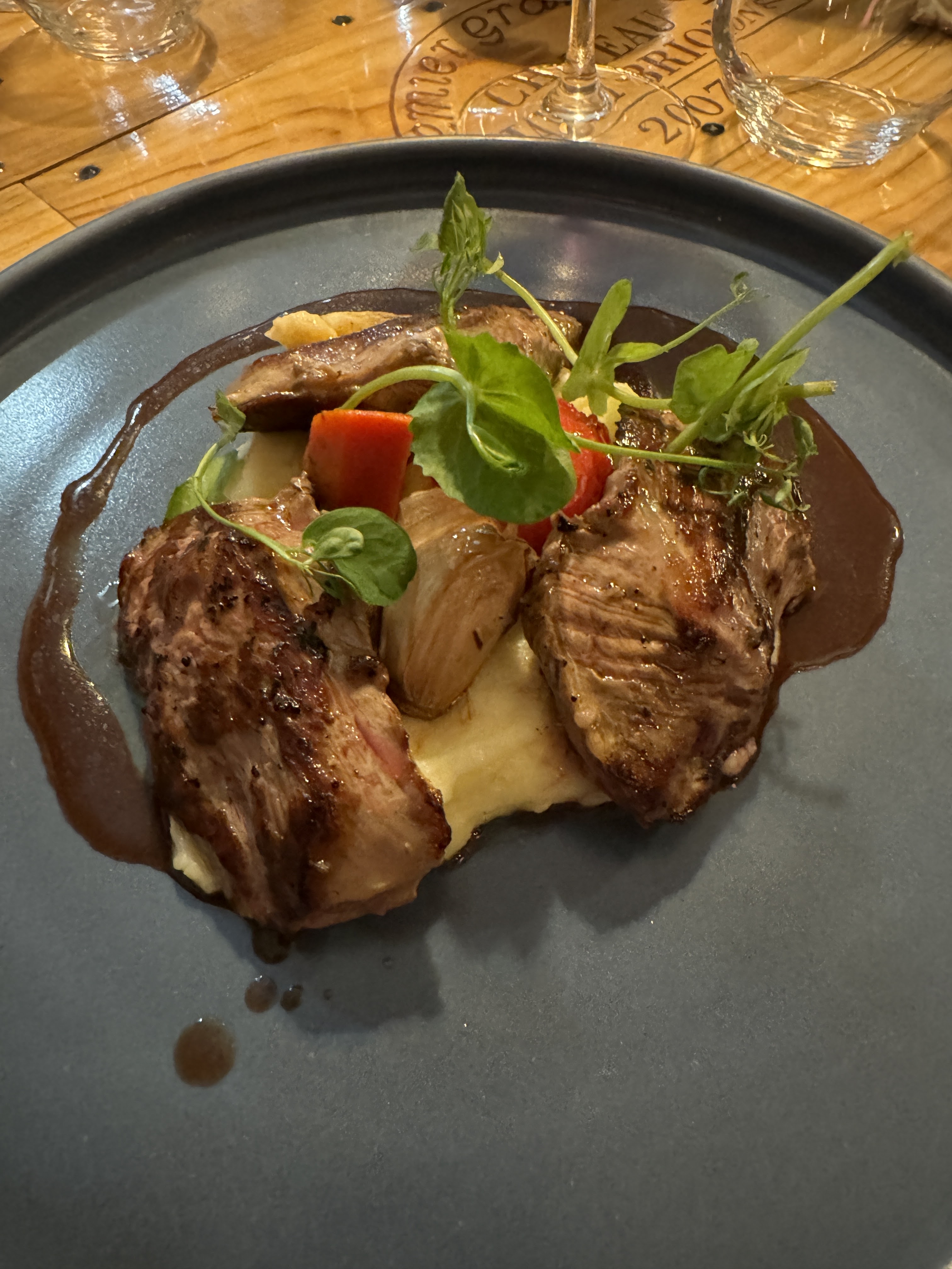 Très belle découverte que ce restaurant. La salle est agréable dans un style fut de chene et bouchons de liege. La patronne est très sympa , souriante avec un accent du sud même si elle n'est pas du sud :) En entrée le foie gras mi-cuit et foie gras poelé est une tuerie c'était divin ! le vin était un peu jeune mais excellent. L'onglet de veau très bien cuit et savoureux. Une remarque qui expliqué ma note de 4 étoiles. La table arrivée après nous n'a pas pu prendre du veau car il n'y en avait plus. C'est donc moi qui ait pris le dernier et comme c'était le dernier je suis tombé sur des morceaux avec pas mal de nerfs. Dommage car la viande était excellente mais j'ai eu l'impression d'avoir le fond du paquet quoi. Un peu decu aussi car pas de creme d ail et truffe comme indiqué sur la carte. Bref on est arrivé trop tard mais c'est comme ça. A part cette remarque, rien à redire