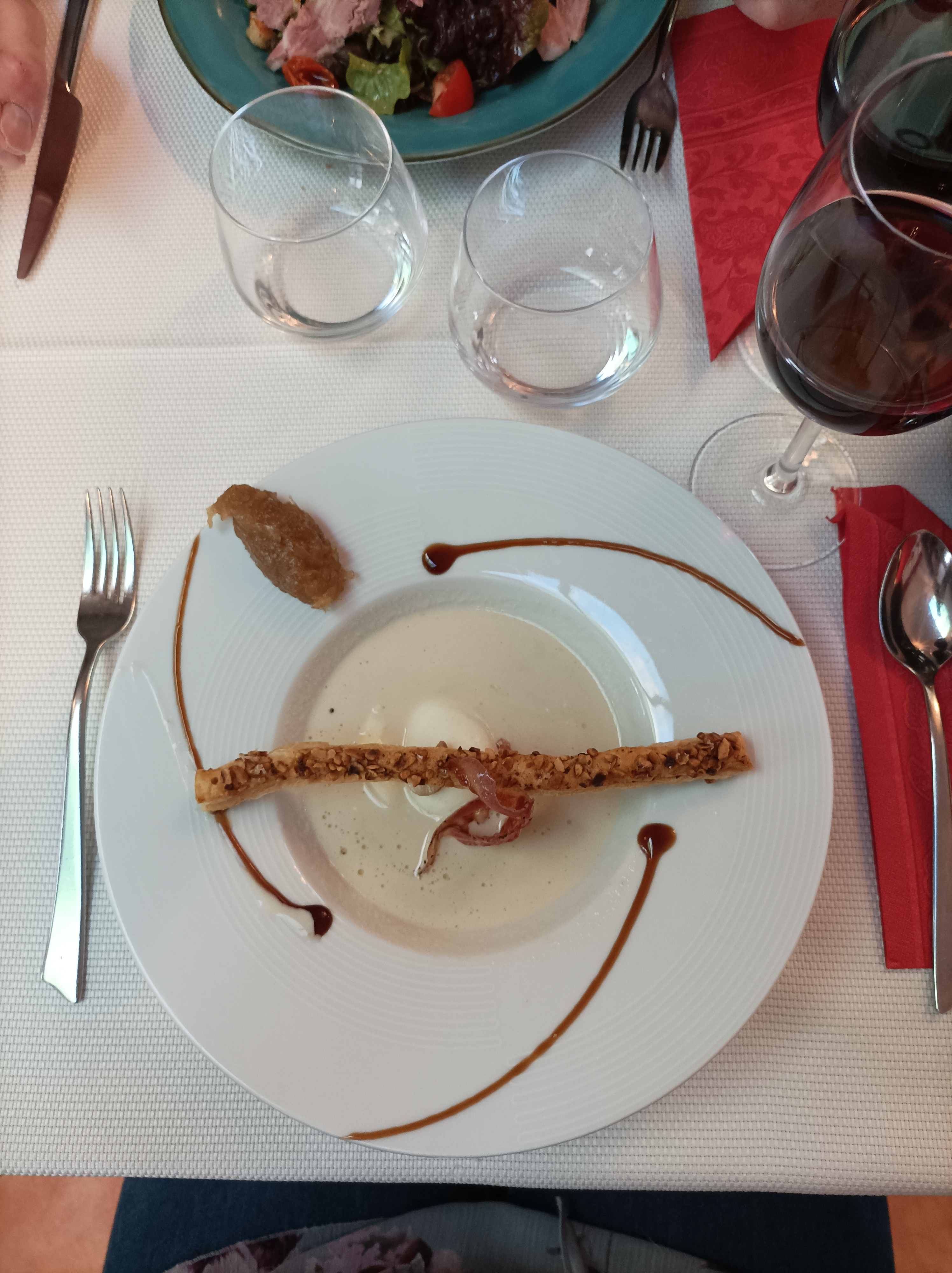 Première fois que je vais dans ce restaurant, et j'en suis ressorti enchanté, je pense que l'endroit est tenu par une famille, au service ,la femme et visiblement son fils, en cuisine je pense le mari, la clientèle est très correcte, une terrasse, un bel intérieur, nourriture très bonne, de bons vins 🍷, au verre ou à la bouteille, étant sur la route, un vin blanc en apéritif, un rosé pour l'ensemble du repas, un repas du jour, un repas à la carte, le tout pour le bonheur des papilles... j'ai noté l'endroit dans mon agenda personnel, Je recommande.