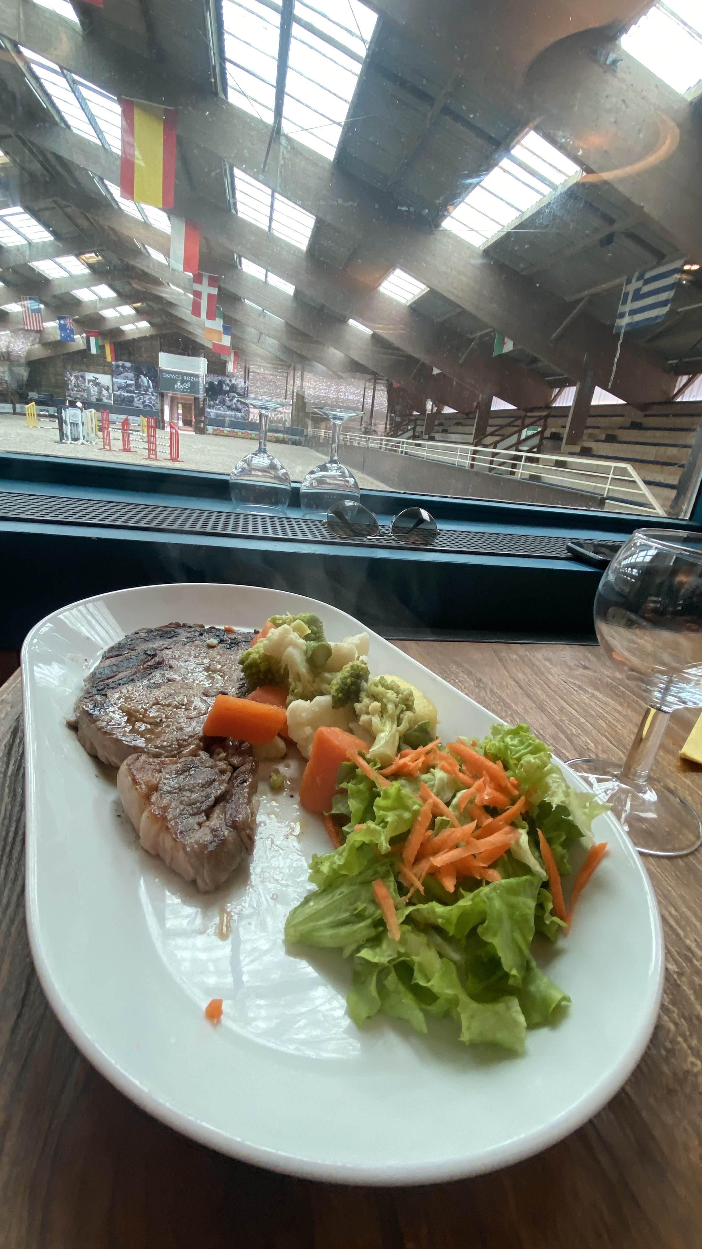 Cuisine correct et cadre originale avec cette vue sur ce somptueux cirque équestre. C'est plutôt agréable.
