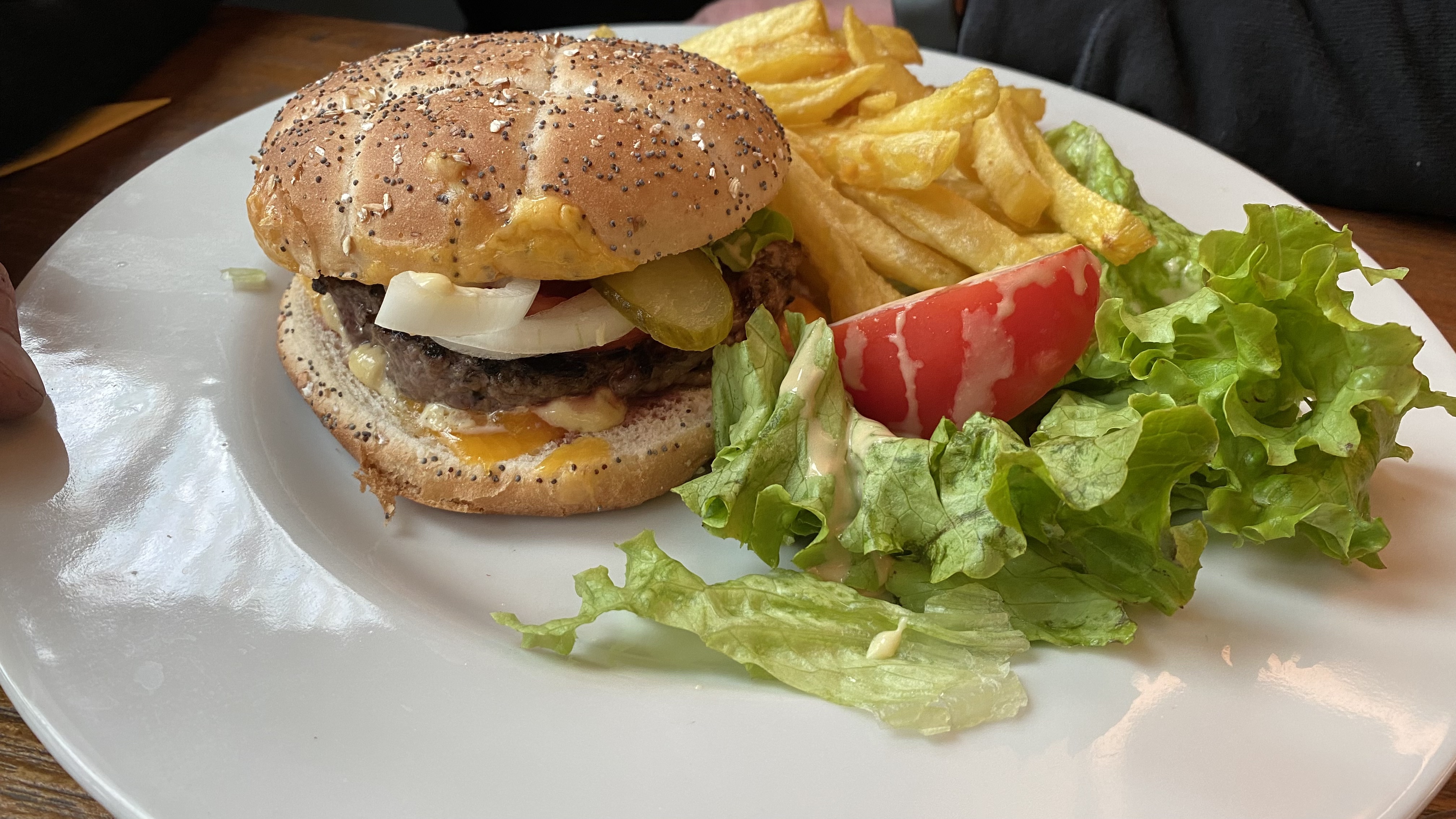 hamberger vraiment pas bon, c’est du pain Harris avec 2 tranches de camembert + 1 steack, 15,50€ Ca vous revient moins cher de le faire a maison... et c’est meilleur. On avait annulé le gateau d’anniversaire par telephone, au final ils nous l’on quand meme imposé a table sans rien nous dire 80€ pour un gateau acheter chez Picard ou Thiriet, une chose est sure c’est qu on ne reviendra pas, pour un etablissement qui fut réputer il y a quelques années c’est bien dommage, on mange limite mieux au Buffalo....