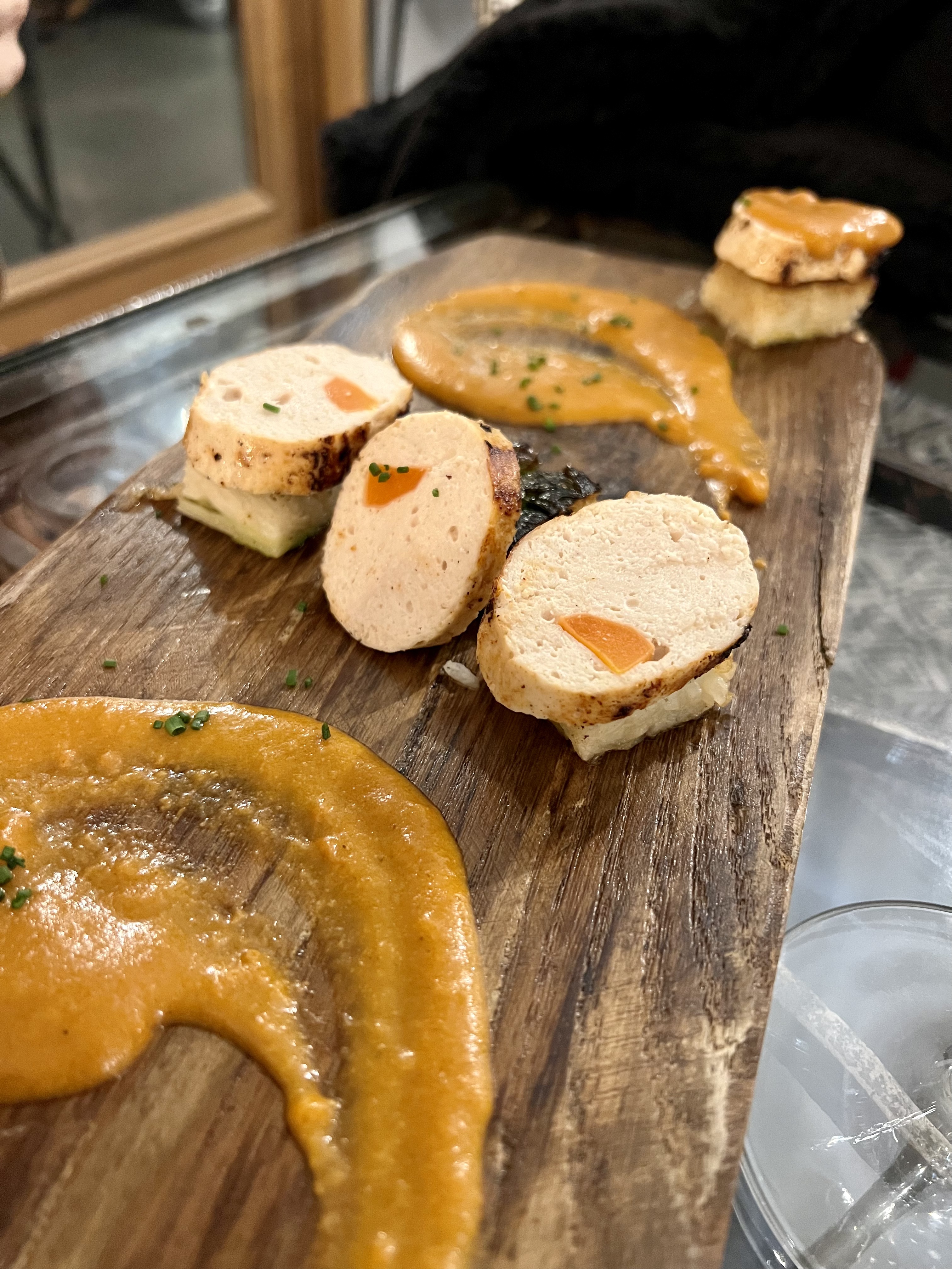 Le service était vraiment excellent du début à la fin. La serveuse était vraiment gentille et attentionnée. Mais ce qui était vraiment super lors de ma visite, c'était la cuisine. Le chef était vraiment compétent et on pouvait sentir sa passion pour les plats qu'il prépare. Chaque assiette était magnifique, avec des saveurs parfaitement équilibrées et des ingrédients de très bonne qualité. On pouvait vraiment ressentir la passion du chef dans chaque bouchée. Les plats étaient préparés de façon créative et audacieuse, et les mélanges de saveurs étaient tout simplement incroyables. C'était clair que le chef mettait tout son cœur et son âme dans chaque plat. Je tiens à souligner à quel point la serveuse était gentille et à quel point le chef était talentueux. Ils étaient vraiment dévoués à offrir une expérience culinaire exceptionnelle, et cela se ressentait vraiment. Continuez ainsi !
