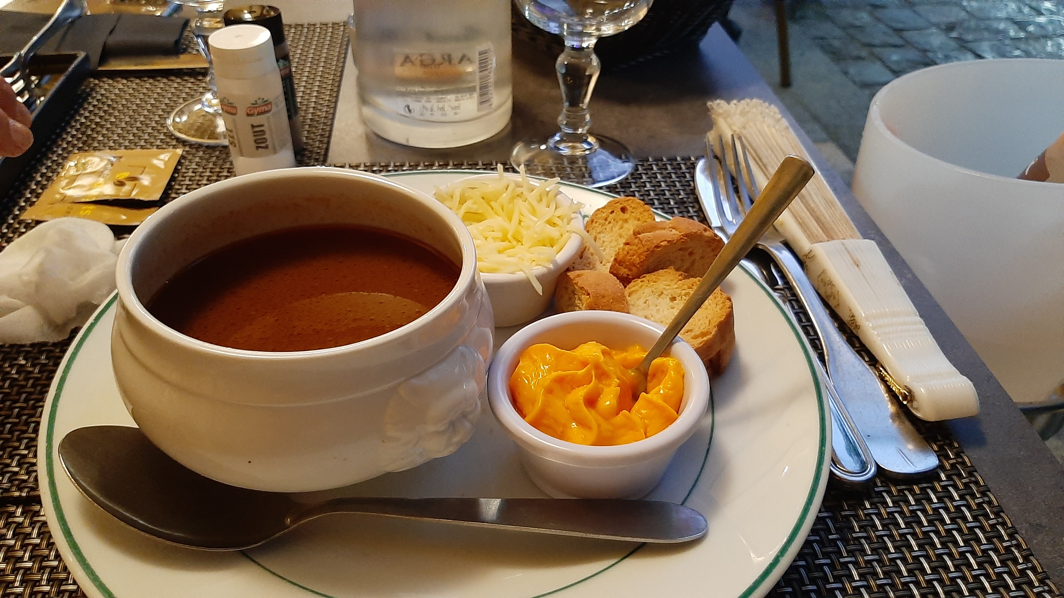 Repas honnête sur la place Saint Louis : menu correct et assez copieux ( rien de très original cependant mais vu l'afflux de touristes au moment du déjeuner....) gâché par un service déplorable lent et peu gracieux : notre serveur, l'air contrarié, a débarrassé si brutalement que s'en était gênant...nous avons évité les taches de très peu. Être en situation de quasi monopole sur la place ne dispense pas de la plus élémentaire politesse.