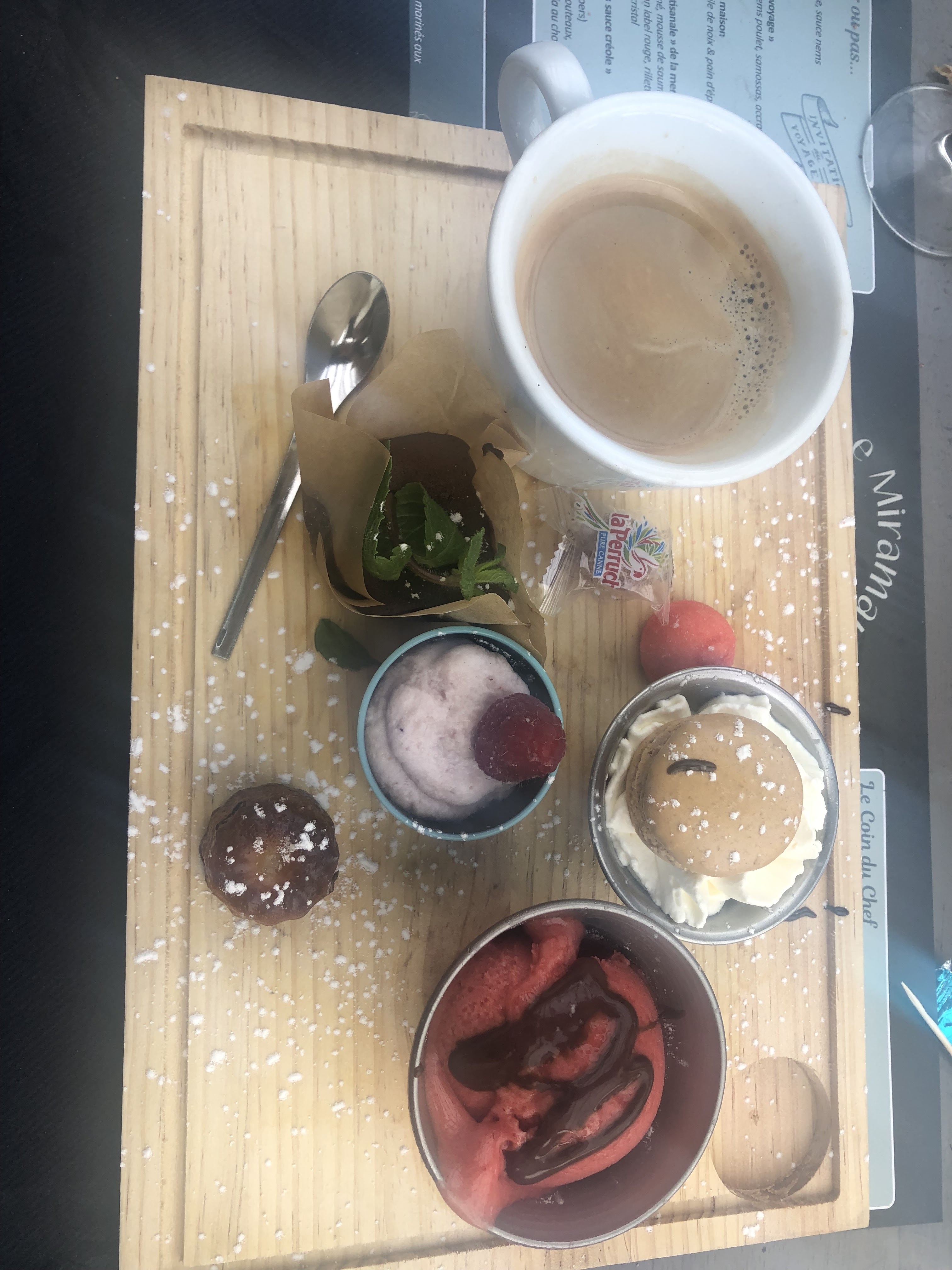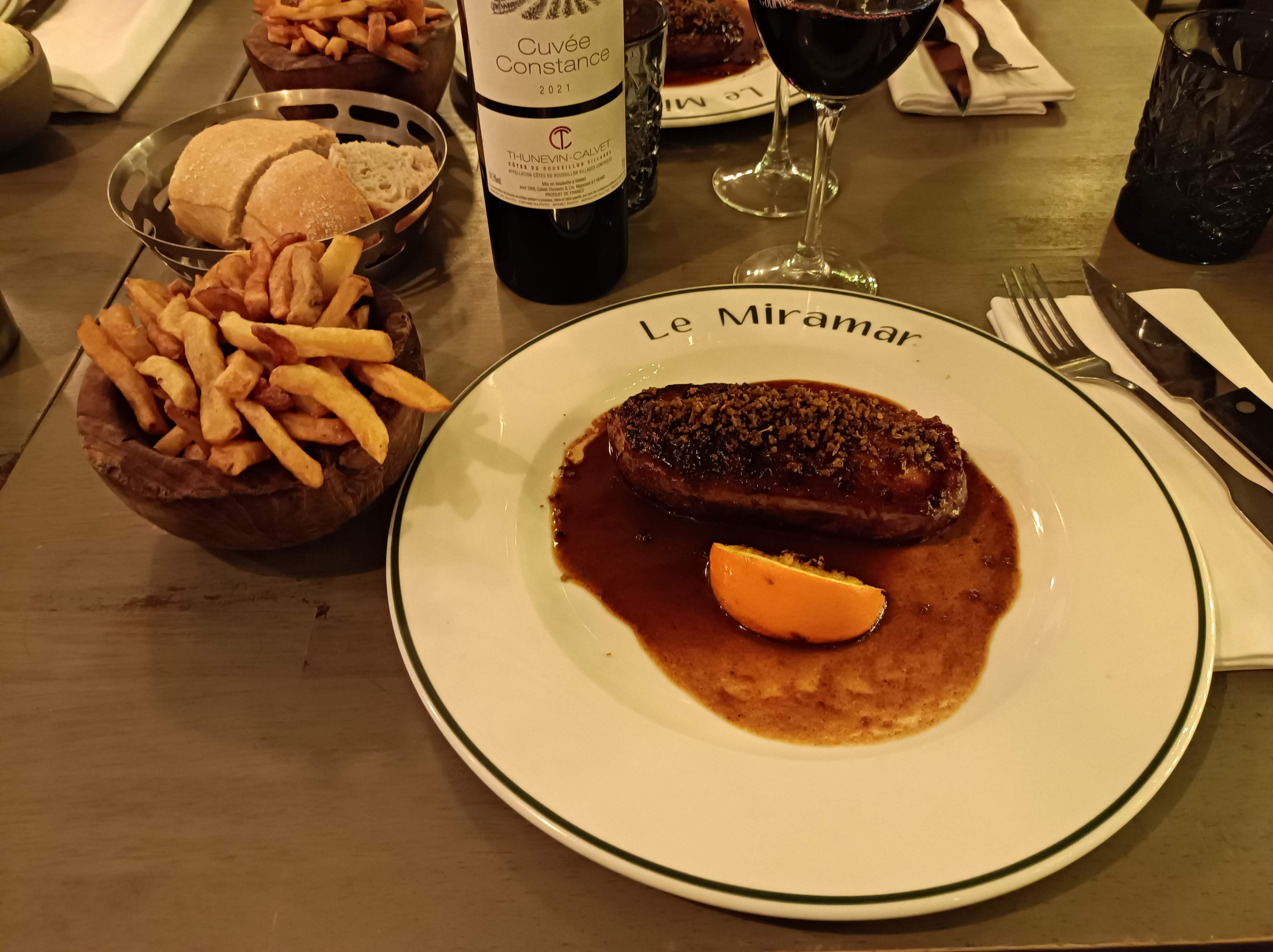 Accueil et service irréprochable Dîner excellent, généreusement servi et rapport qualité prix top Filet boeuf rossini pour Mr et planxa miramar pour moi puis crêpe miramar et profiteroles xxl Que dire c'était divin, dans un cadre superbe (le petit patio tables hautes) et mention spéciale à notre serveuse merciii