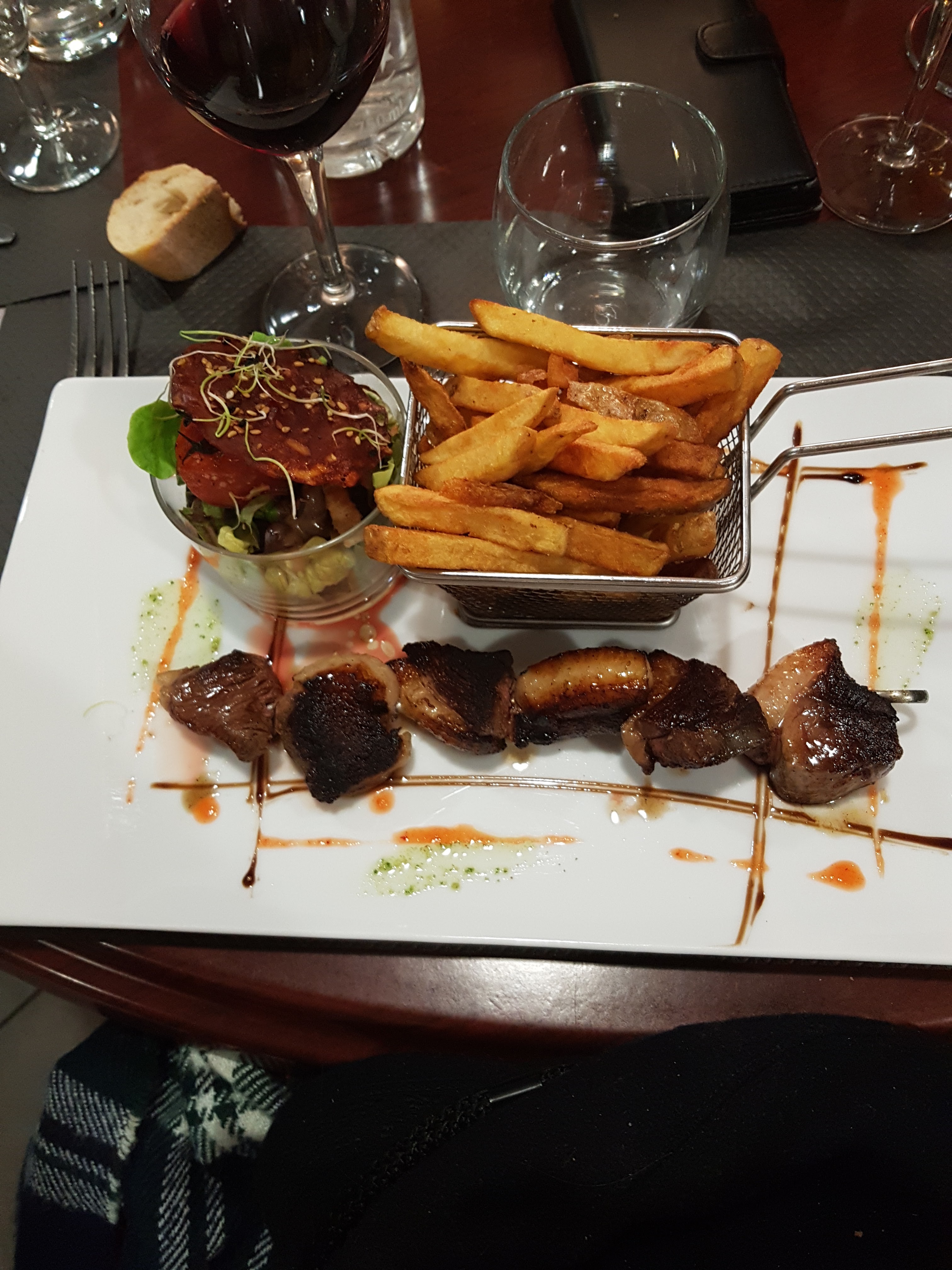 Je devrais venir plus souvent. Délicieux entremets passion coco, très léger. J'ai aimé le clafoutis d'asperges vertes et tomates séchées. Cuisson brochettes boeuf comme commandé. Menu du jour 14€. Bravo et à bientôt !