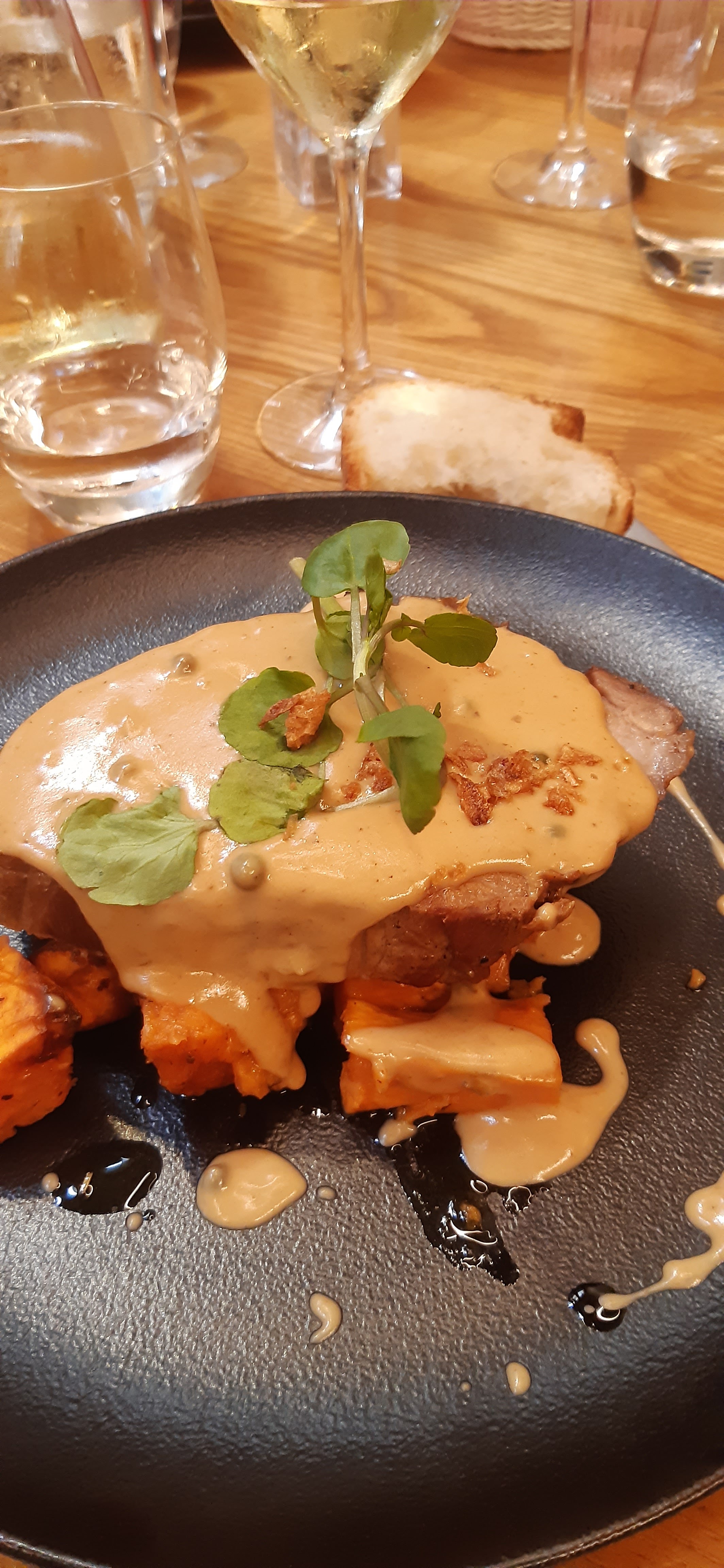 J’aurais aimé dire que ce n’était qu’une excellente soirée, j’aurais gagné 10minutes de rédaction. Hélas l’amour appelle l’amour et me voila. Commençons par la cuisine. Enfin, je parle de cuisine mais on m’aurait bandé les yeux j’aurais cru a une galerie d’art. Un rapport qualité prix absolument lunaire. J’ai l’impression que Bocuse m’a fait une bonne bouffe entre copain pour le prix d’un bouillon. Je pourrais passer des heures a vous parler de mon oeuf parfait inqualifiable, de mon faux filet a la limite du réel ou de mon dessert… subjuguant. Mais a quoi bon, venez voir par vous même. Il y a un point que je tiens a souligné particulièrement, ou plutôt 3 : Emma, Maxime et Kadafi. Que dire si ce n’est merci. En toute franchise cher lecteur, j’ai du mal a choisir le mot juste pour définir cette équipe absolument monstrueuse. Un professionnalisme, une patience a toute épreuve mais surtout… surtout un cadeau. Le cadeau d’un moment exceptionnel, inoubliable… juste comme vous. Mes amis, si vous vous interrogez sur ce restaurant, interrogez vous plutôt sur vos choix.