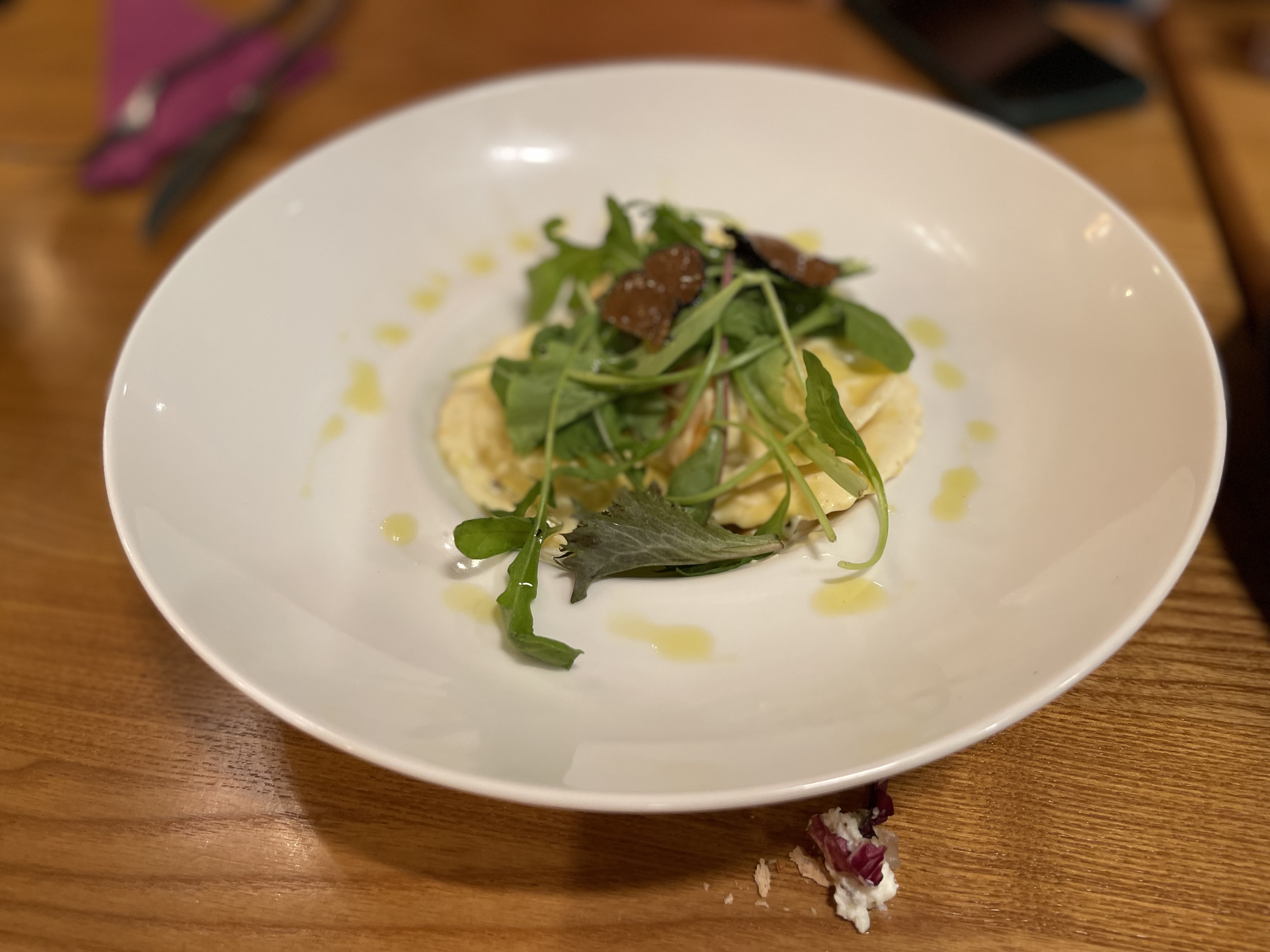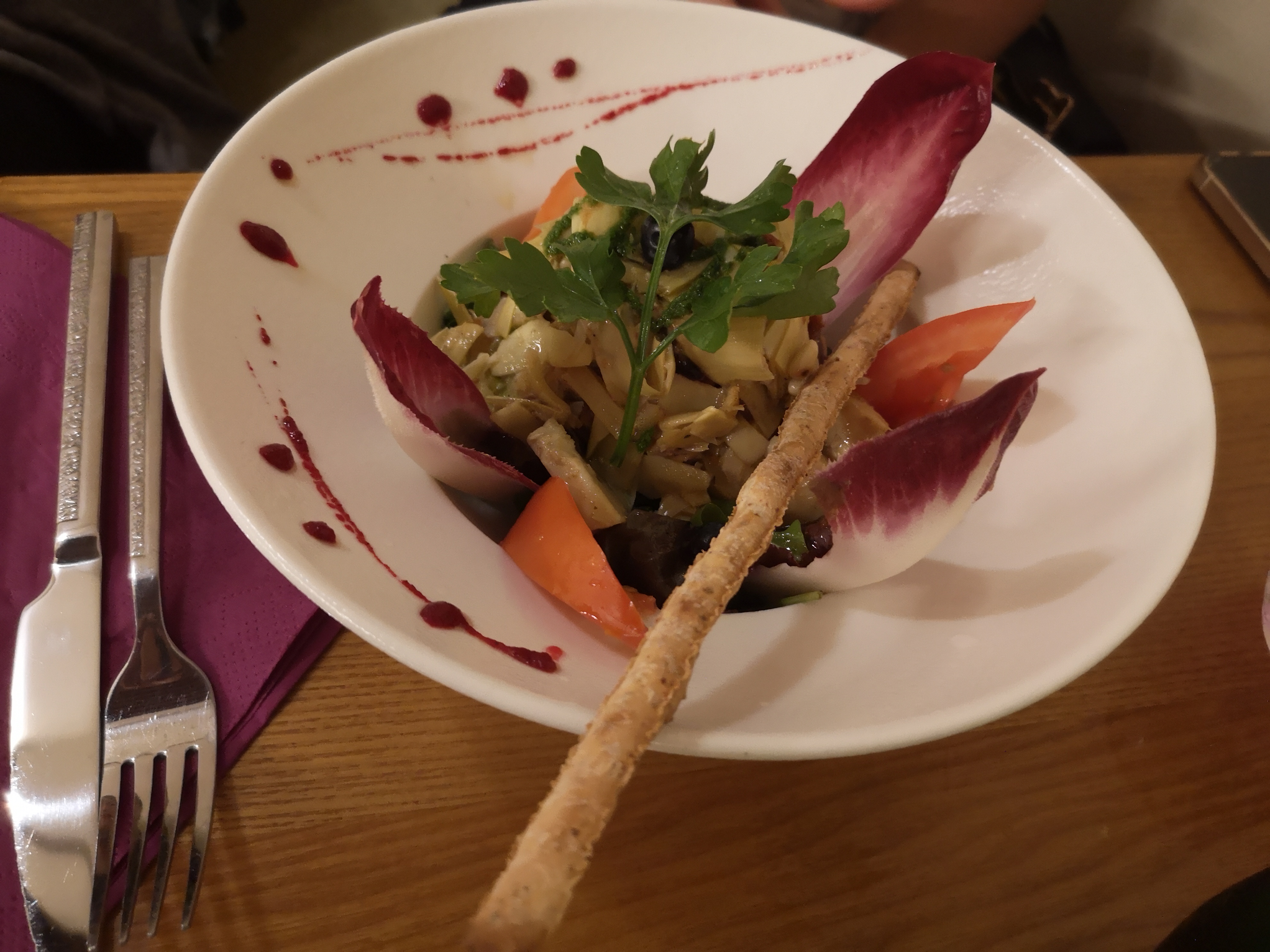 Un risotto excellent préparé avec de la vraie truffe. Repas accompagné d’un très bon verre de rosé , une magnifique salade de fruit et bien entendu un verre de limoncello pour la digestion. Bref , un bon moment, installé en terrasse dans la fameuse rue des Marronniers.