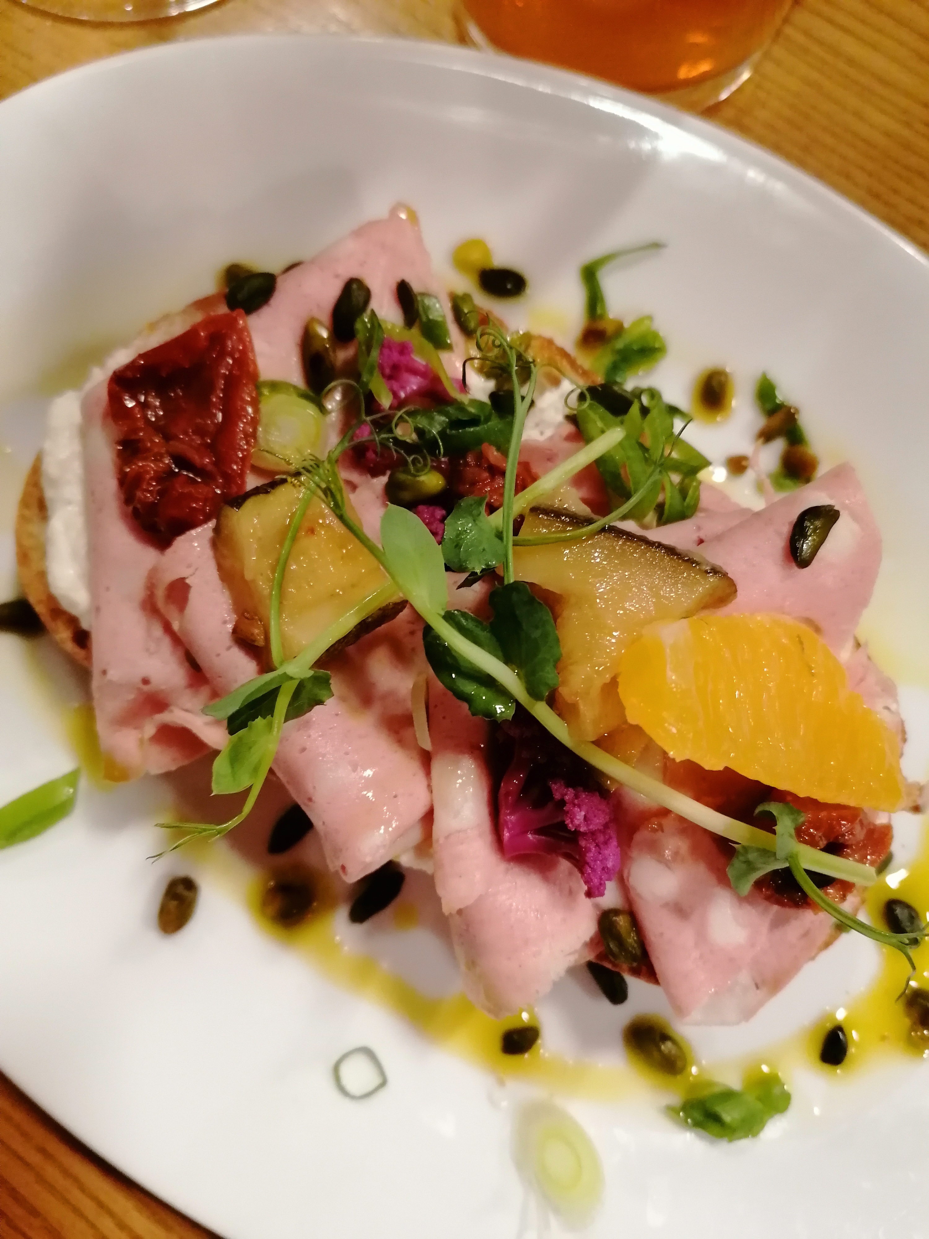 Nous avons très bien été accueillis par le personnel du restaurant. Ces derniers nous signalent immédiatement un changement dans l’accompagnement ce qui est fort agréable pour éviter toute déconvenue. Je suis allé au restaurant un soir de semaine avec ma copine. On se laisse tenter par la planche à 28€ à partager ( pour 4 personnes). Puis nous avons enchainé sur un risotto et un veau cuit en 7h. Les plats étaient très bons, très jolis esthétiquement. Une quantité très suffisante pour le risotto. Concernant le veau un peut déçu par le manque de générosité entre le veau en lui même ou l’accompagnement ( je suis un gros mangeur). Mais sinon rien a re dire. La grosse déception a été sur la planche. Nous avions pris celle ci pour sa diversité. Après réception de cette dernière nous remarquons qu’il n’y a pas le tartare de veau n’y les chips de légumes. Sur le moment nous ne faisons aucune remarque puisque étant deux pour une planche de 4 on se dit que c’est normal. Et que le restaurant adapte un peut ses planches en fonction du nombre de personne. Au moment de payer je regarde donc sur la note si la planche a été compté à 28€ ou à un tarif inférieur. Je fais donc remarquer à la serveuse que sur notre planche nous n’avions pas tous les ingrédients ( et pour ma part le plus important ce que je préfère le tartare 😍). Cette dernière nous répond qu’il se peut qu’en cuisine ils n’avaient plus les ingrédients … ( sachant qu’il y a du tartare à la carte pas possible, mais bref.) Elle répond qu’il y a eu sûrement d’autre produits pour remplacer les deux manquants. J’énumère donc ce que nous avons eu, et le résultat est qu’il n’y a pas eu de surplus. J’attends potentiellement un petit geste commercial de la part du restaurant. Mais aucun geste n’est pratiqué. Bilan, nous avons été frustré du restaurant qui aurait pu avoir une meilleure note de notre part dans ce désagrément…