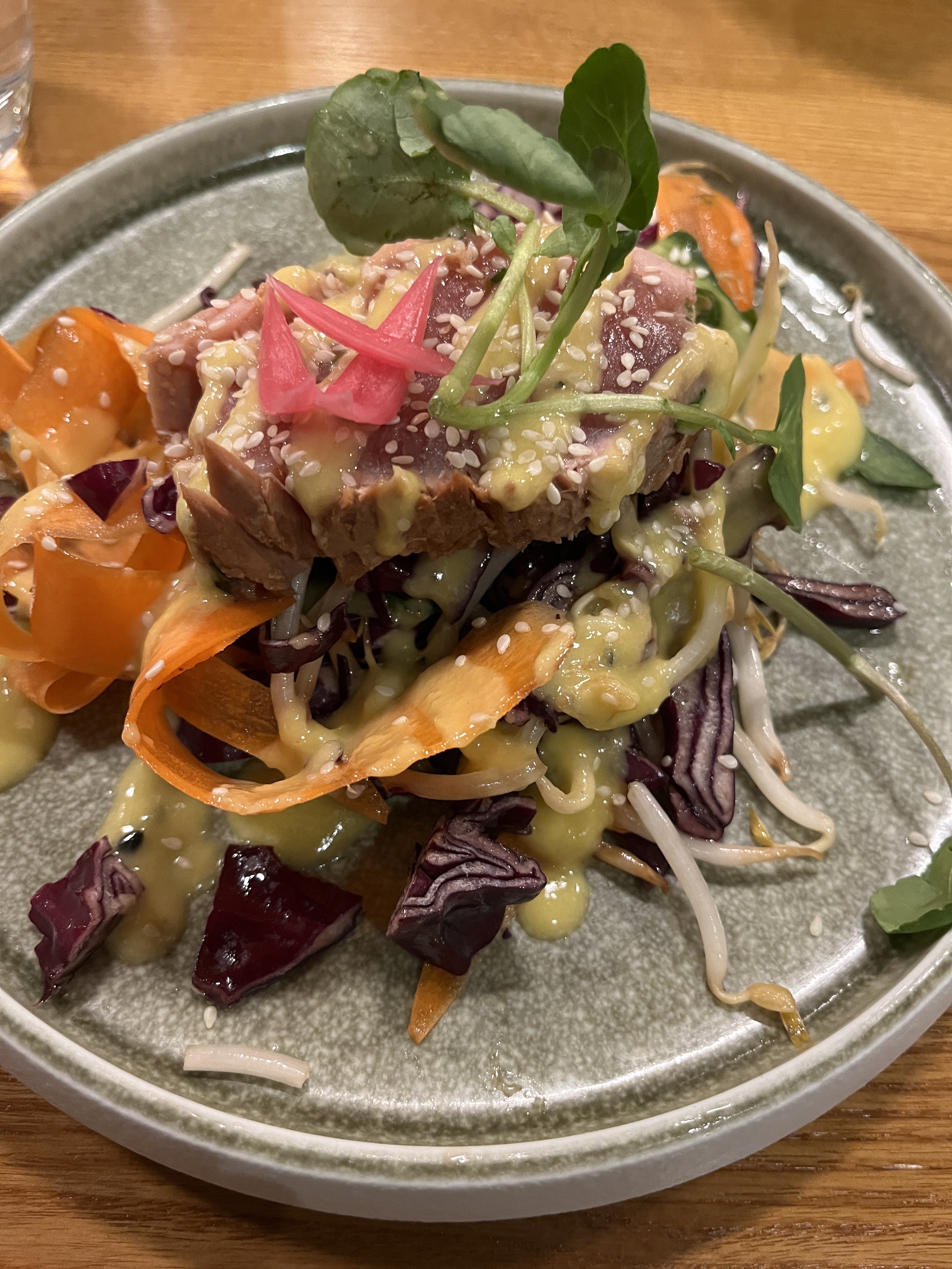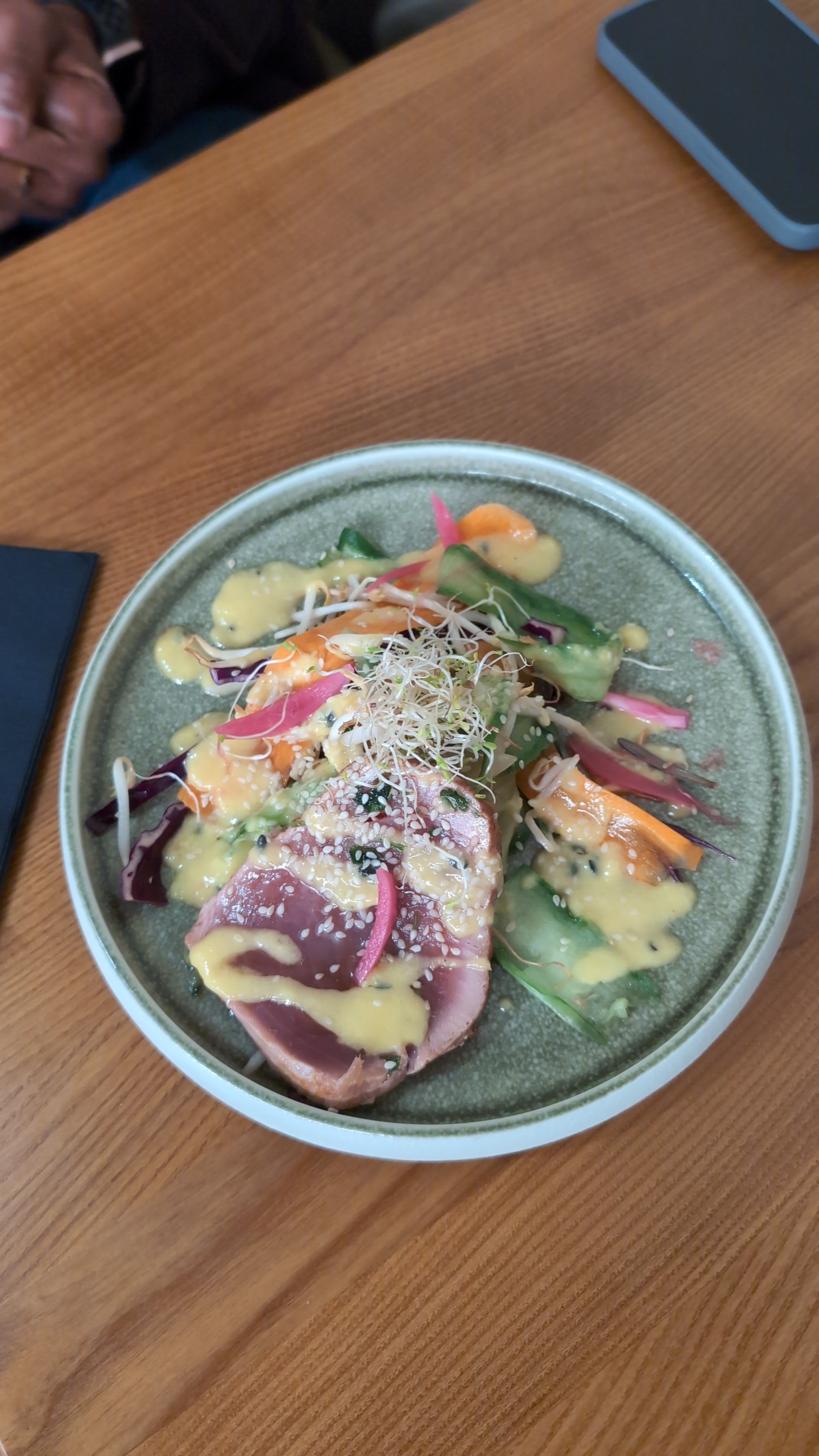 Excellente expérience. Super service. Personnel souriant et agréable. Décoration raffinée. Plats extrêmement colorés et savoureux. Les quantités sont parfaites. Deux bémols importants. Service extrêmement lent et tous nos plats étaient tièdes malgré nos remarques répétées.