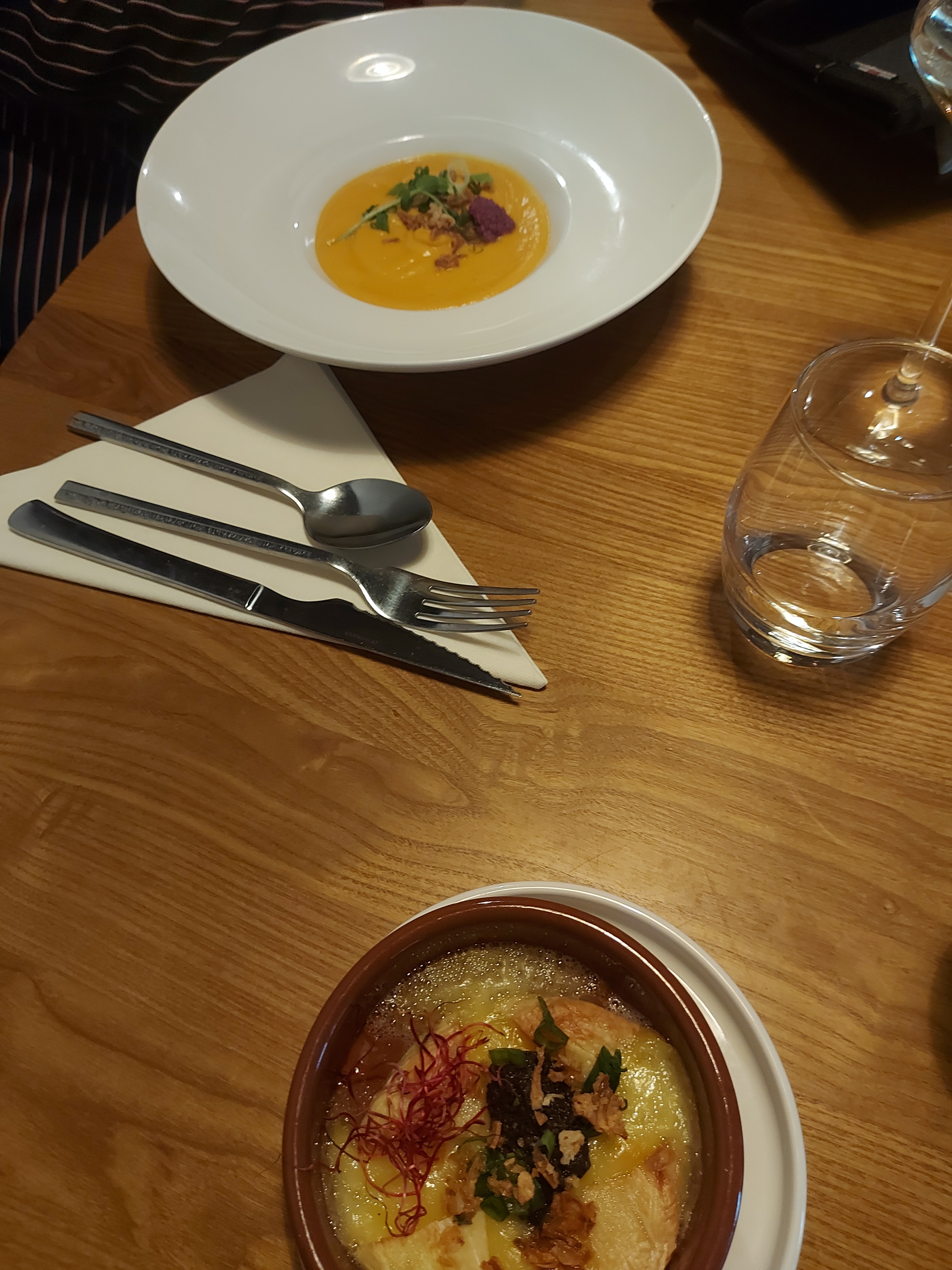 Restaurant pas cosy du tout - très clair, pas de musique - tout le monde mange en silence en s'écoutant, quand les tables restent très rapprochées. Le restaurant était presque vide, mais l'hôtesse proposait des sièges à l'entrée, très proches des autres clients. La nourriture est plutôt simple, pas du tout à la hauteur. Ils ont mélangé le plat d'accompagnement, nous avons également demandé de la viande mi-saignante, mais ils ont fait du bien, c'était très sec et il était à peine possible de mâcher, je ne peux pas imaginer comment ils vont se débrouiller quand le restaurant est plein.