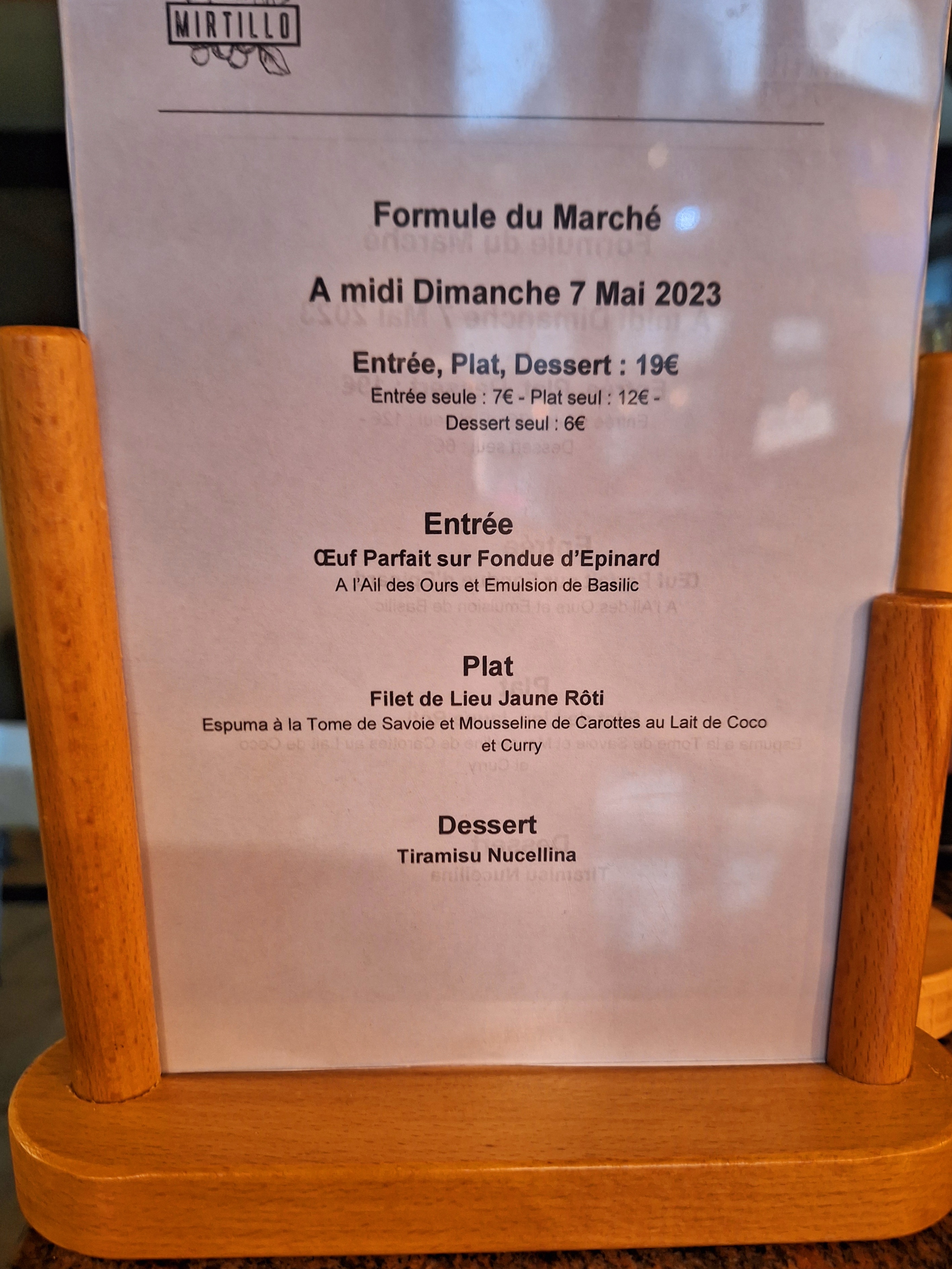 Menu à 18 euros midi soir et week-end. Nous l avons testé un dimanche midi et sincèrement c'était très bon et surtout généreux. C'est est assez rare de trouver des menus aussi peu cher le week-end pour le souligner.