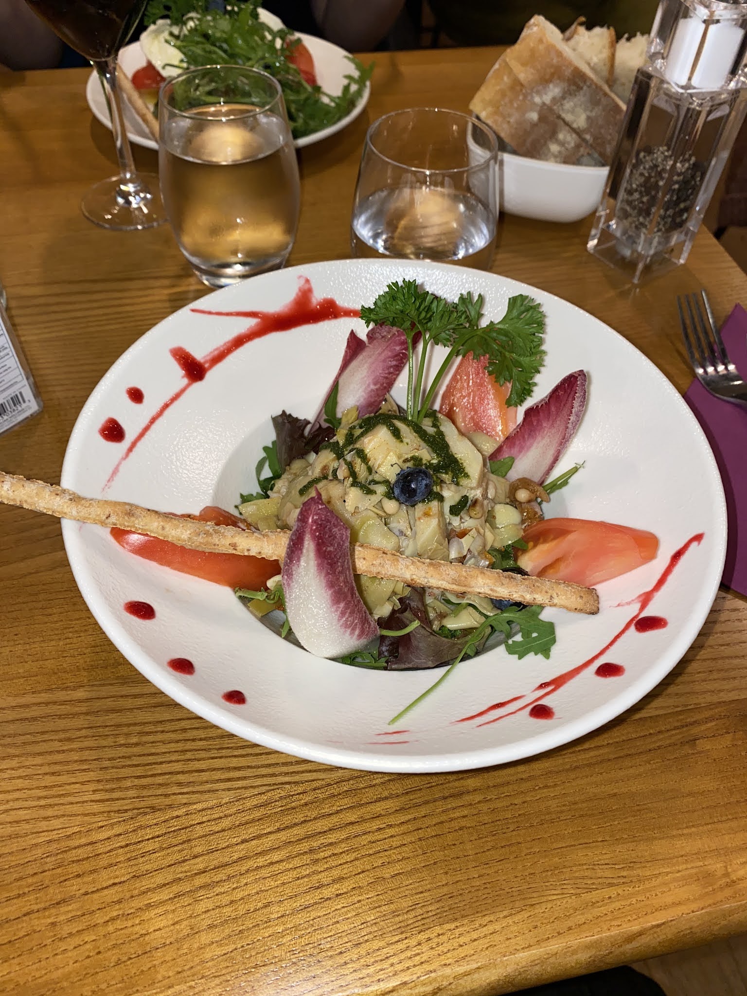 Je suis allé dîner avec ma mère ici et j’étais tellement excité parce que dans les 6 mois que j’ai vécu à Lyon, je n’ai eu qu’une autre expérience culinaire, en raison de la COVID-19. L’expérience culinaire était un peu nulle. L’entrée que j’ai choisie était artichaut et figue. J’ai remarqué que les portions de tout ici étaient assez généreuses mais ironiquement il y avait trois petits morceaux de figue séchée dans mon plat. Puisque l’artichaut était aigre, il n’y avait rien pour contrer cette aigreur. Cela fait 1 heure et 21 minutes que nous sommes arrivés quand nous avons reçu notre plat principal et c’était un lundi et le restaurant n’était même pas si occupé. Le risotto aux champignons que j’ai choisi pour mon plat principal était vraiment sans goût. Ma mère et moi pouvons certainement faire un meilleur risotto aux champignons à la maison. Les plats principaux ont une décoration bizarre de bâtonnets de pâtes rôti, mais j’ai eu recours à manger ceux-ci parce que je n’étais vraiment pas dans le risotto insipide. Curieusement, il n’y avait que du poivre sur les tables, pas de sel. Le dessert était bon, rien de spécial. Et c’est pour un restaurant qui a 223 commentaires avec une moyenne totale de 4,9. Je ne pouvais pas m’y attendre. Le directeur / propriétaire était vraiment gentil et s'est excusé pour l'attente, mais je pense qu'il est important que les restaurants reçoivent des critiques honnêtes afin qu'ils puissent s'améliorer.