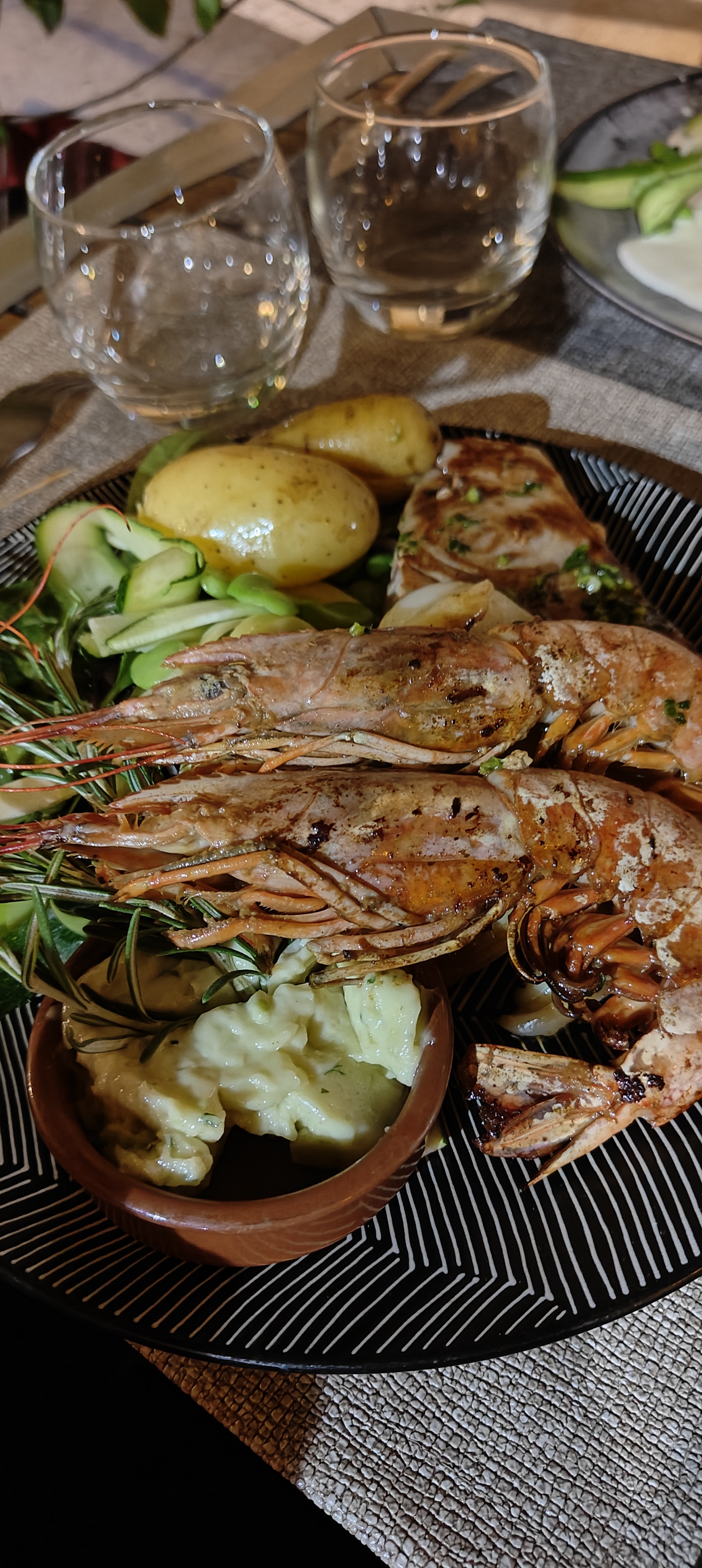 Pas mal de bonne chose à manger, tout dabord la spécialité c'est les gambas et les huitres qui sont vraiment bonne. Les tarifs des plats varie entre 18€ et 24€ vous avez aussi des entrées avec de grosses huitres, avec des chevrettes ou sinon des chipironnes. Il est préférable de réserver à l'avance car le restaurant est vite complet, ce qui fait qu'ils sont parfois d'éborder et que le temps d'attente est long pour le service.